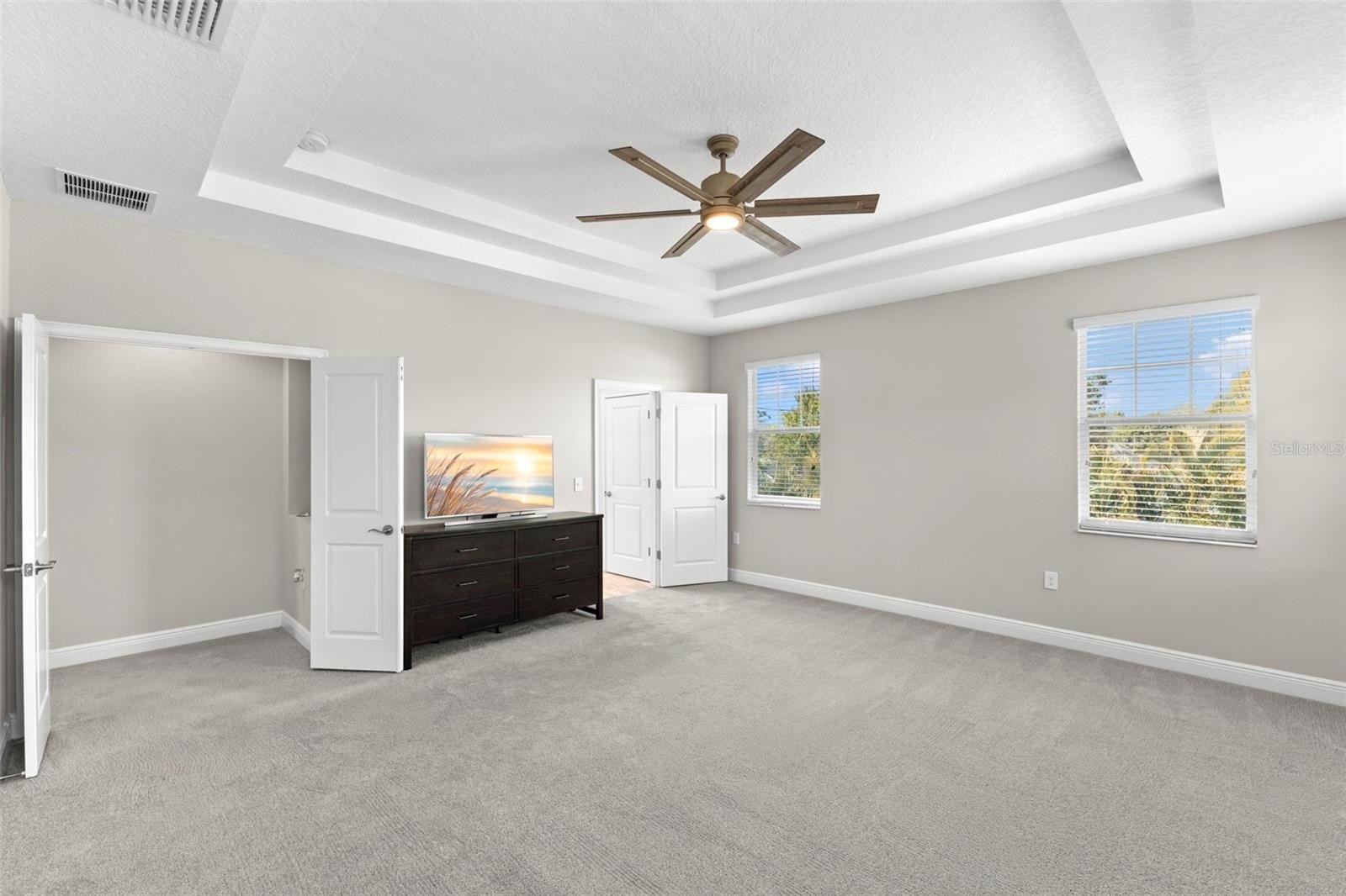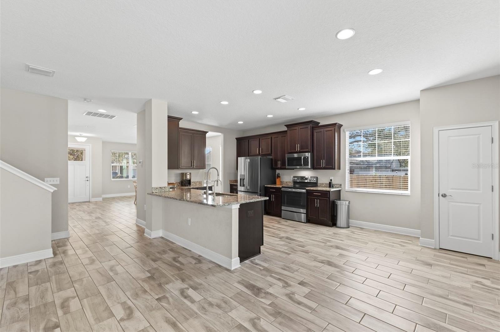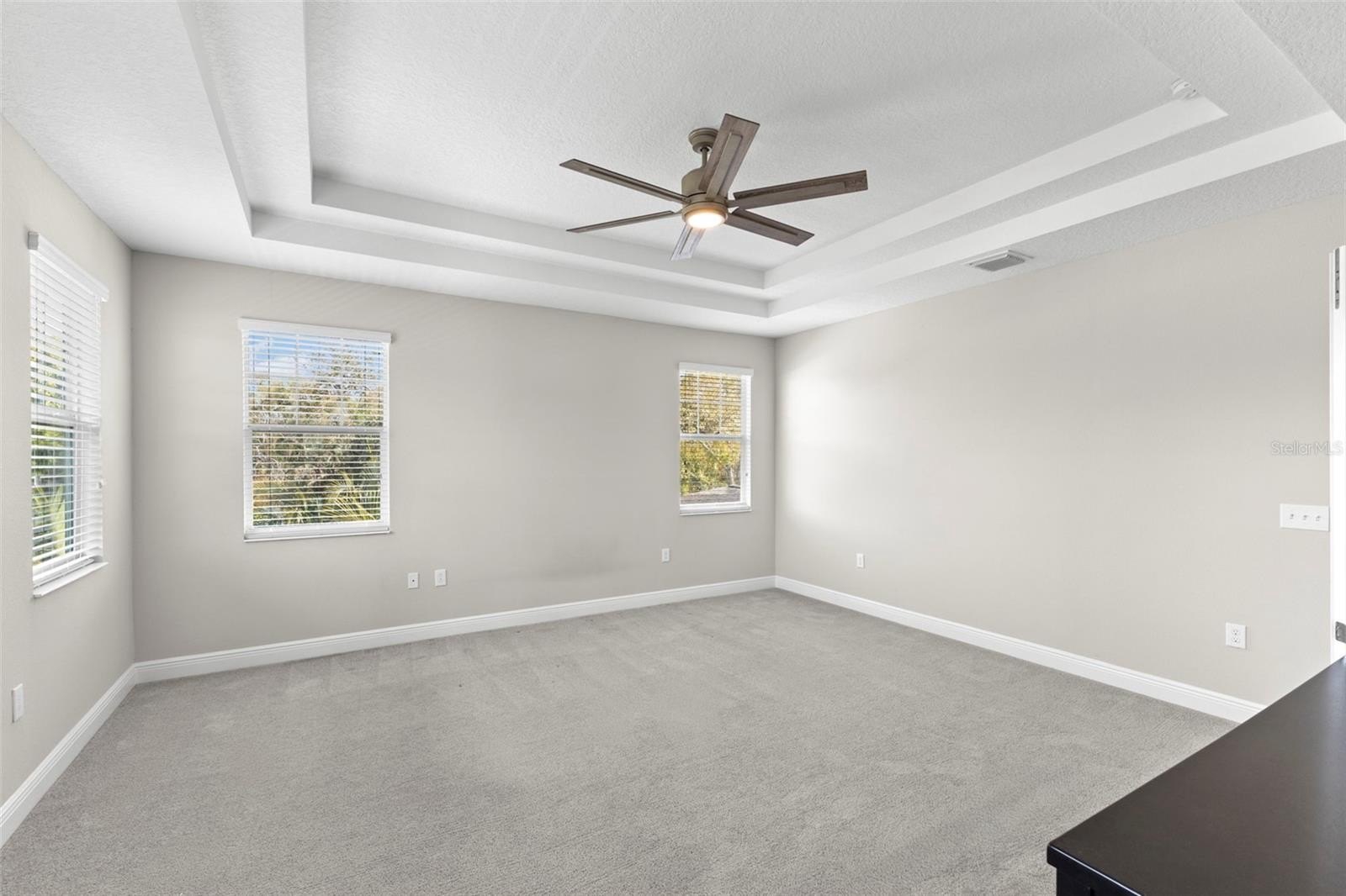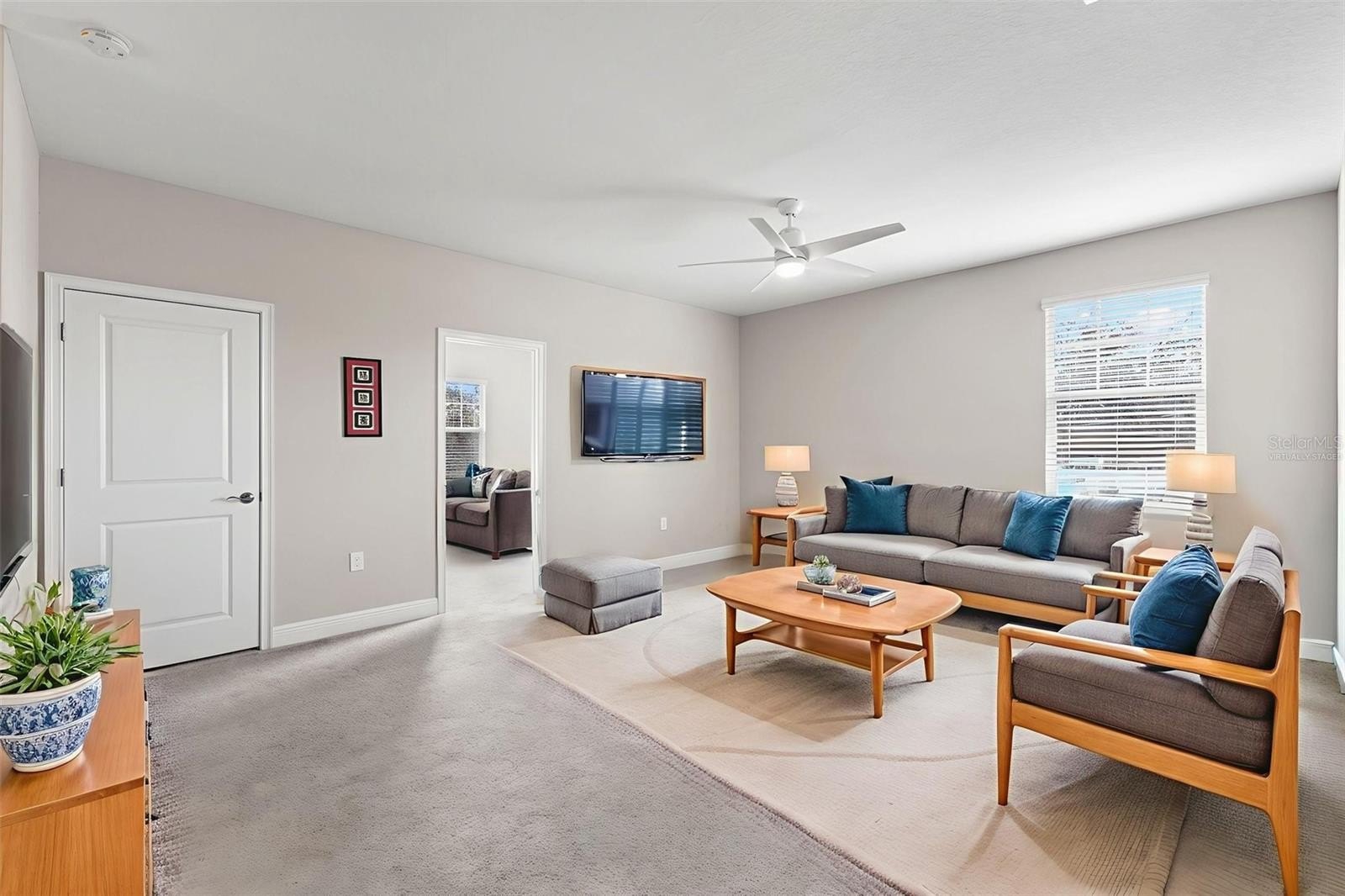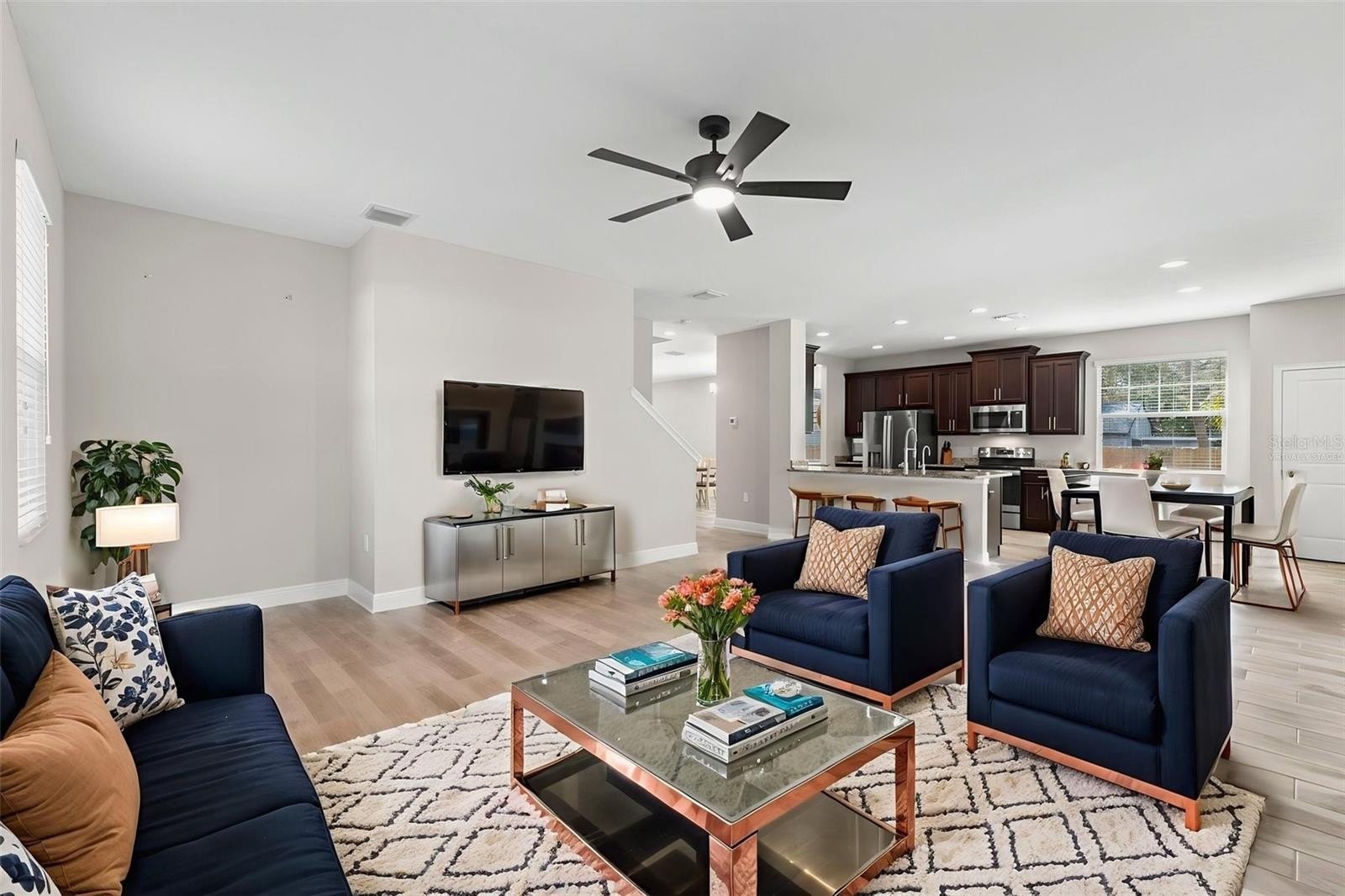 One or more photo(s) has been virtually staged. This stunning newer construction home is a true masterpiece located just a stone's throw from Walter Fuller Park with its expansive pool, recreation center, sports complex, tennis/pickleball courts, fields, and more. Curb appeal shines with a brick paver driveway, elegant stone-finished exterior, mature tropical landscaping/majestic oak tree, and a welcoming covered front porch. Step inside to an open, light-filled layout boasting high ceilings, recessed lighting, wood blinds throughout, ceiling fans with decorative lighting, and beautiful wood-look tile floors in living areas. The oversized formal dining room offers ample space for an additional seating area with views of the front yard. The gourmet kitchen features granite countertops, breakfast bar, double undermount sink, stainless-steel appliances, closet pantry, and an eat-in space overlooking the Great Room and pool with sliding doors to the covered lanai. A guest suite on the first floor provides convenience with easy access to a hall bathroom. Upstairs, enjoy a split bedroom floor plan plus a versatile BONUS room/flex space ideal for a playroom, den, or office. The resort-style owner's suite is a true retreat complete with double entry doors, tray ceilings, dual vanities, garden tub, stand-up shower, separate water closet, linen closet, and an oversized walk-in closet with custom built-in organizers. An inside utility room on the second floor includes cabinets for extra storage and an ironing station. Entertain effortlessly in the incredible backyard tropical oasis with a covered lanai with an outdoor kitchen equipped with refrigerator, gas grill, and side burners, plus a gas fireplace that spills over to the sparkling pool with sun shelf. Enjoy privacy with the Areca Palm hedges, and your favorite game or movie on the flatscreen TV. Additional highlights include a wood privacy fence, hurricane shutters for peace of mind, security cameras, two-car garage with Tesla charging station including PowerShare capability, attic pull-down access, decorative wall cut-outs for artwork and so much more. This exceptional home blends modern luxury, tropical vibes, thoughtful details, and prime location central to beaches and all that St. Pete has to offer. Start Living Today!