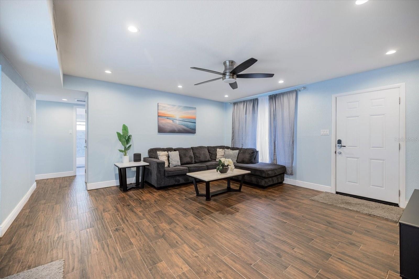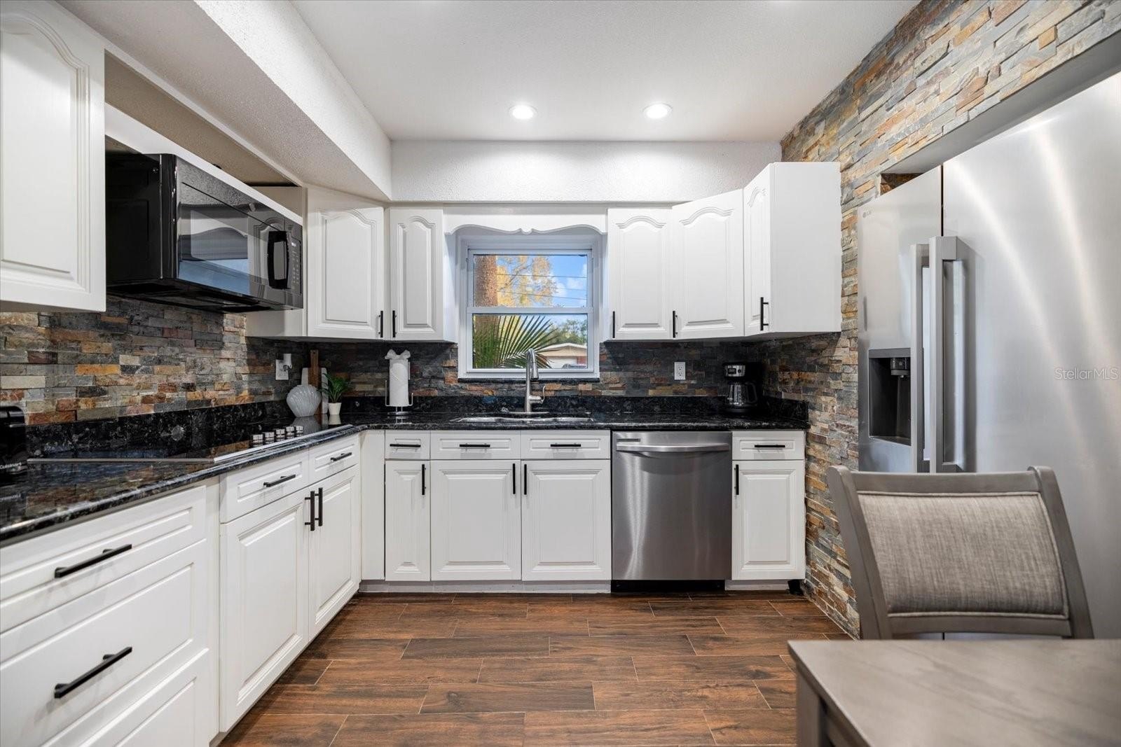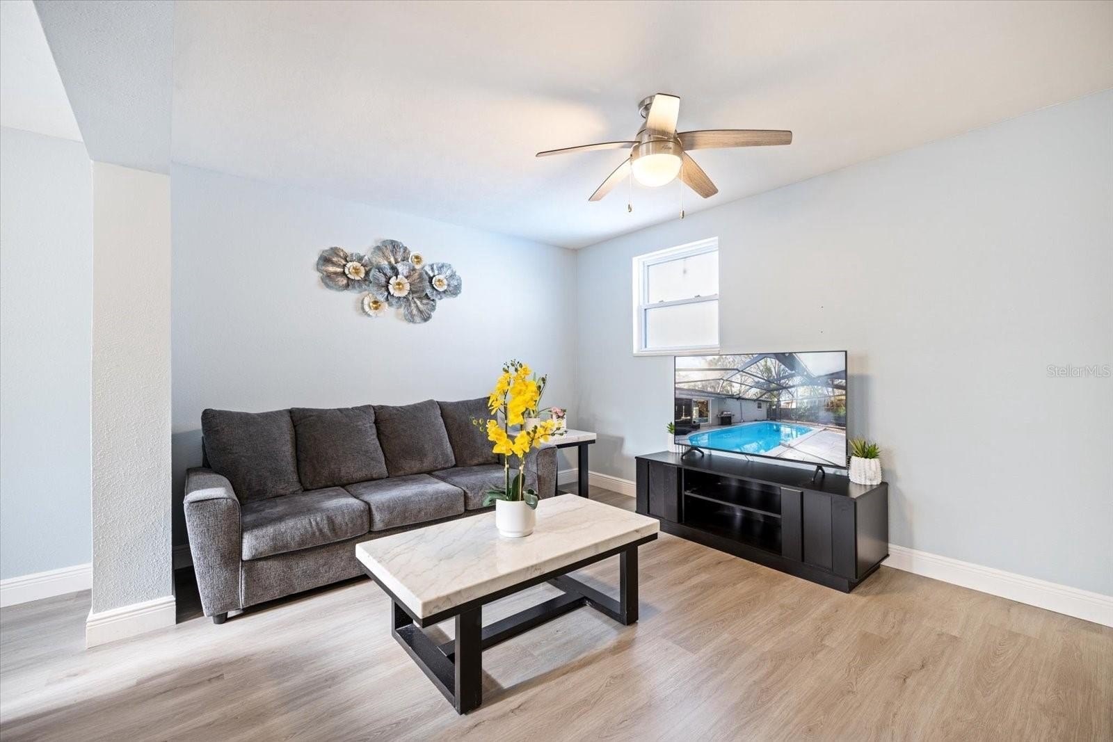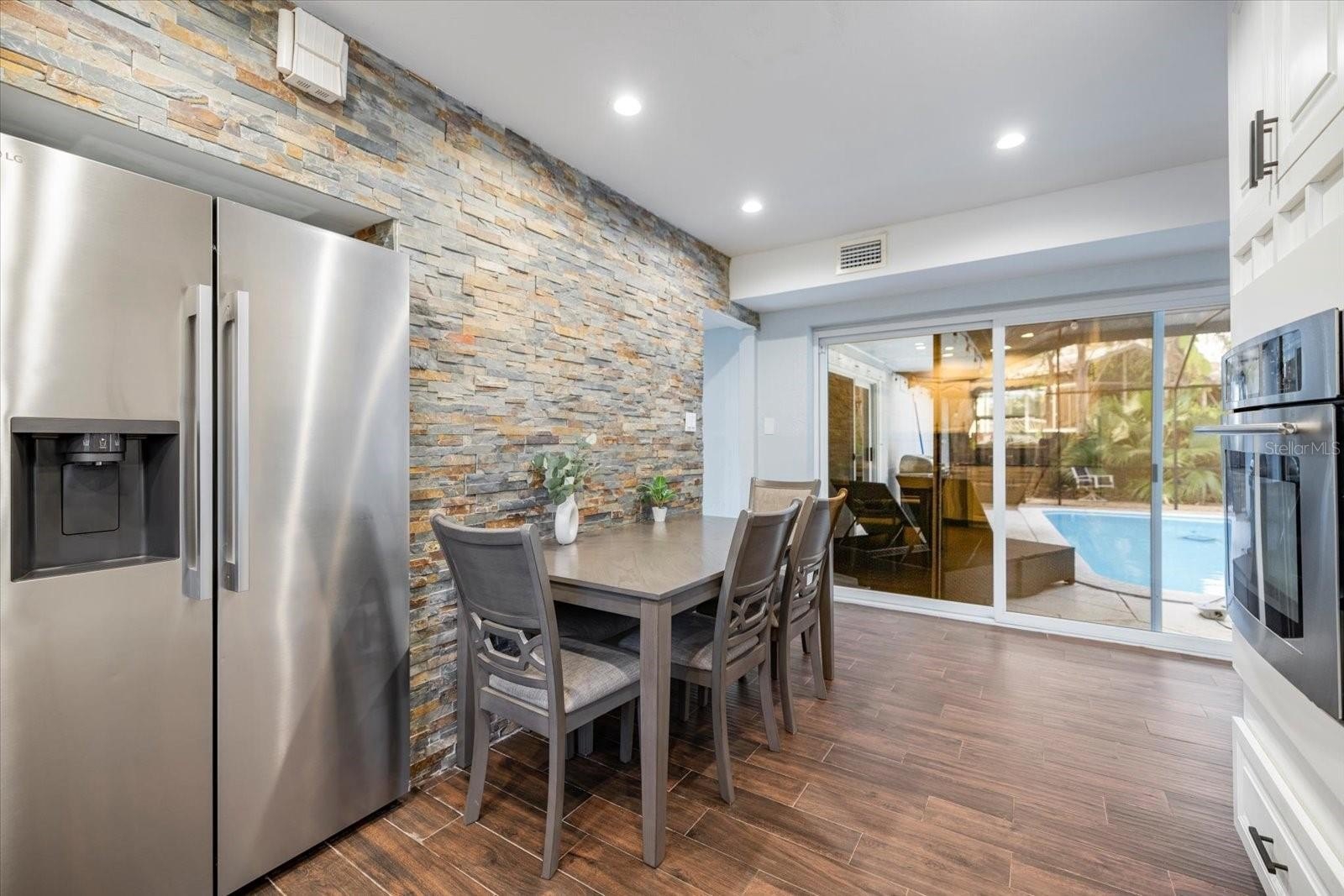 The house is completely renovated with granite counter tops and stainless -steel appliances, slider doors, and a new pool heater, new pool cage.