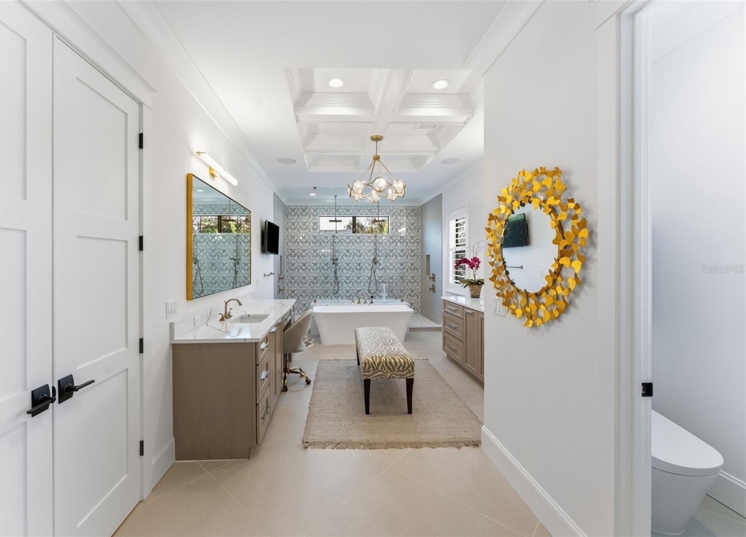 Stunning Taralon Homes “Georgetown” model in Palm Park featuring countless designer upgrades. This exceptional 5-bedroom, 5.5-bath floor plan includes a first-floor guest suite and four private suites upstairs, including a luxurious primary retreat with a spa-inspired soaking tub, pass-through shower, TOTO Smart Toilet, and custom closet by California Closets connecting to the upstairs laundry room.