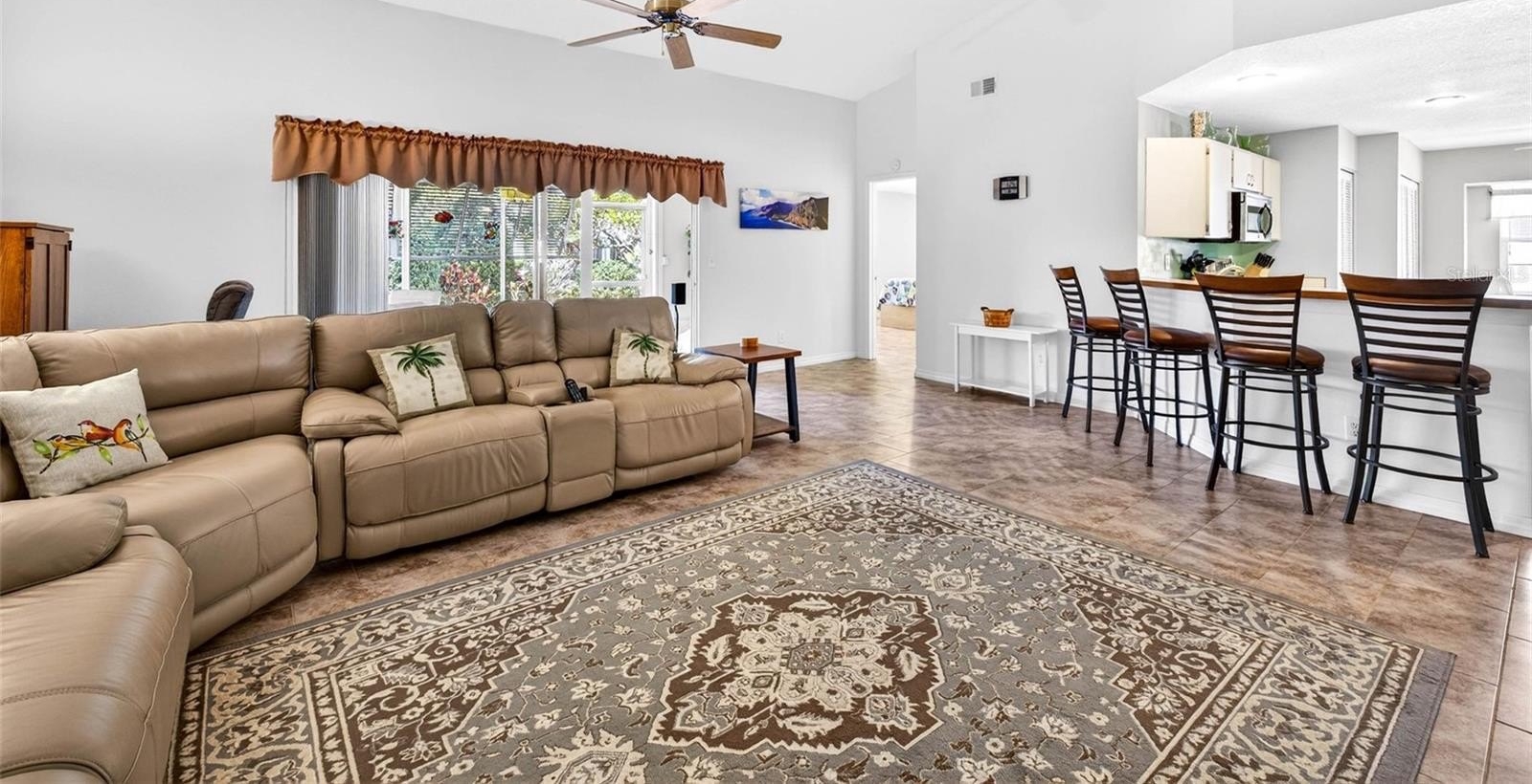 The oversized family room and generously sized primary bedroom offer exceptional living space rarely found in condos of this size. The kitchen is equipped with newer stainless steel appliances, including a washer and dryer, and features an additional refrigerator in the garage. Furniture is optional, making this an easy move-in opportunity.