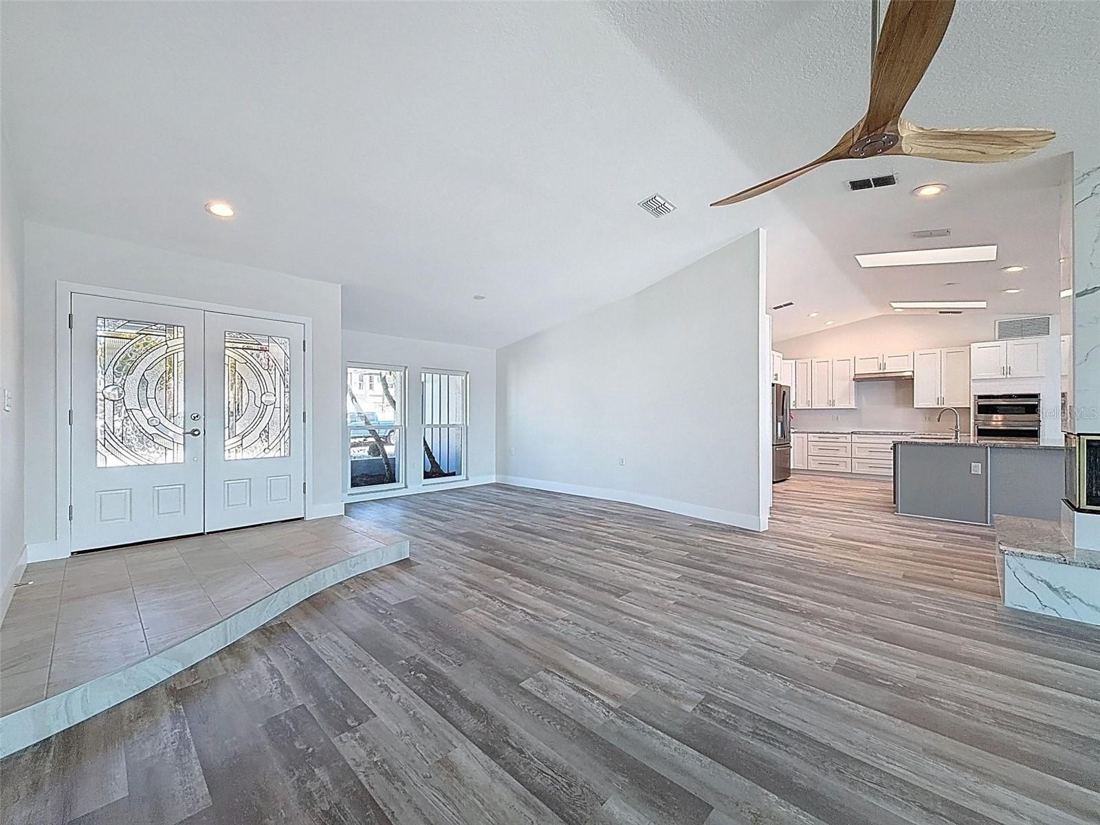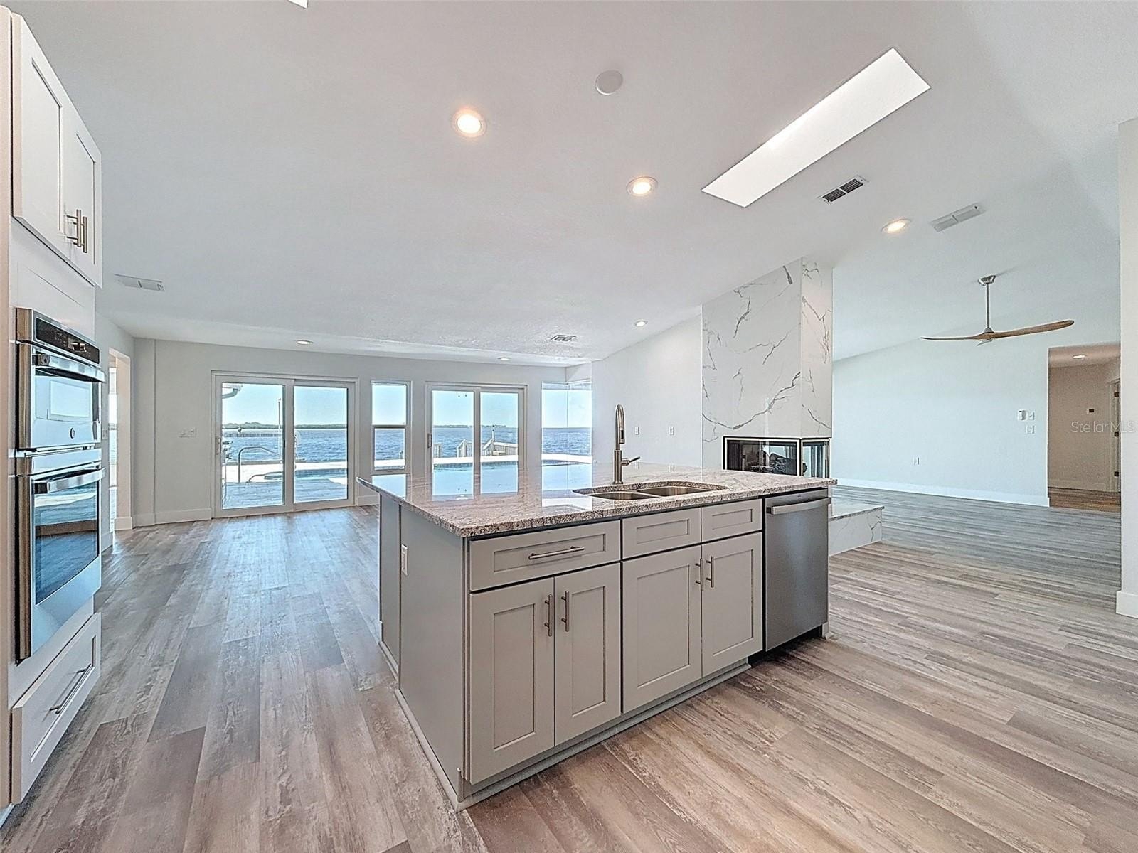 Completely remodeled 4 bedroom, 3 full bath Gulf-front home designed around the view and built for true Florida coastal living. Luxury vinyl flooring flows throughout the open floor plan, leading to a stunning new kitchen featuring granite countertops, custom cabinetry, and a massive island overlooking the Gulf. Enjoy breathtaking water views from all main living areas, centered around a dramatic double-sided gas fireplace.