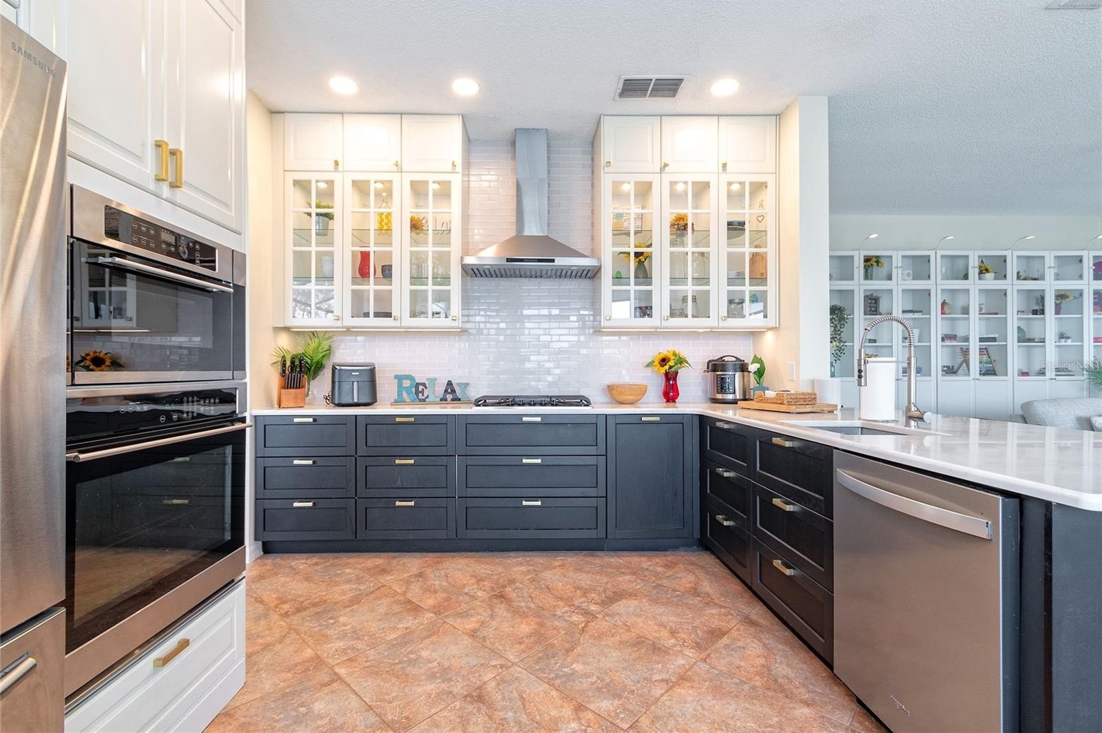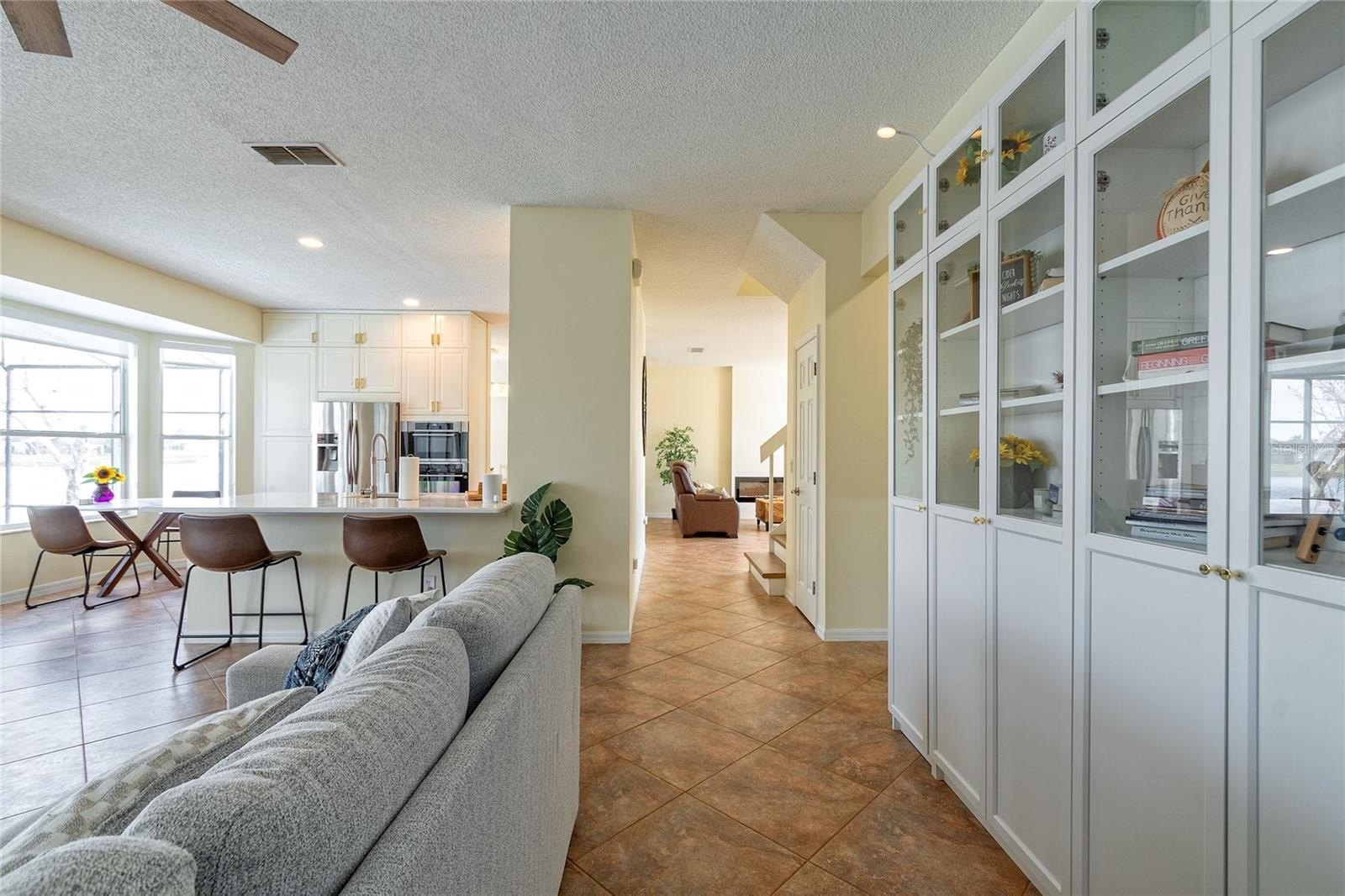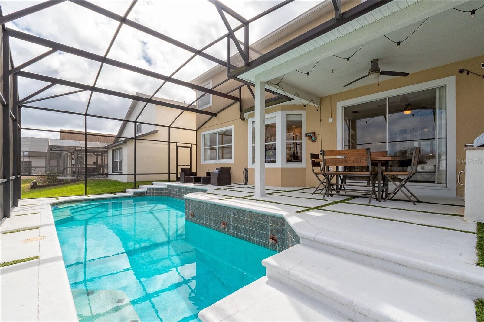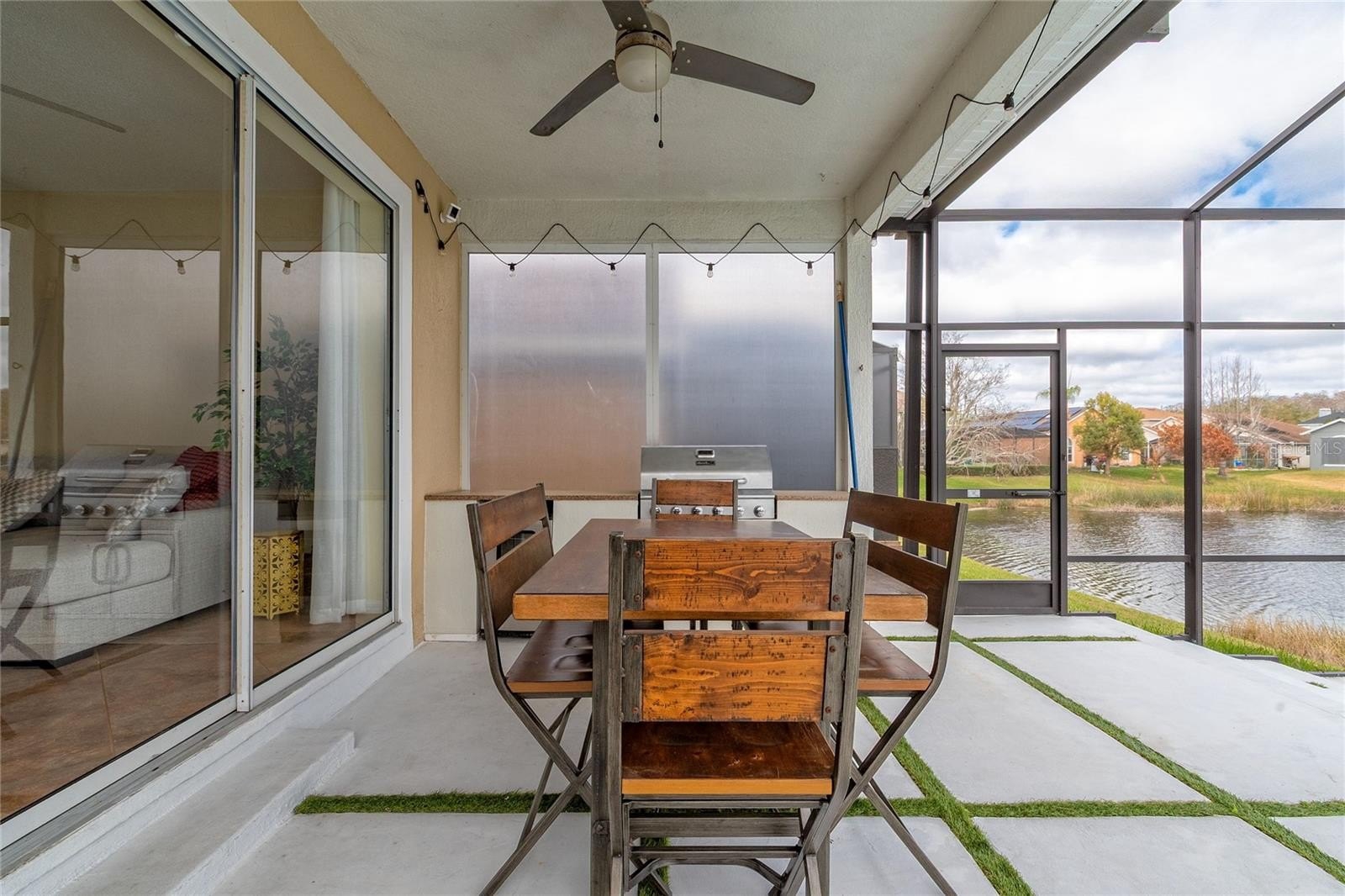 Welcome to 13731 Waterhouse Way! A Stunning Waterfront Pool Residence in Eastwood. Located in the highly sought-after Eastwood community in East Orlando, this exceptional waterfront pool home offers four bedrooms, two and a half bathrooms, and over 2,500 square feet of well-designed living space. The property is ideally situated just minutes from Waterford Lakes Town Center, shopping, dining, entertainment, and Orlando International Airport. From the moment you arrive, you are welcomed by serene panoramic views of an expansive pond with a fountain, visible from both inside the home and throughout the outdoor living areas. The oversized screened-in pool enclosure creates a private retreat, perfect for enjoying morning coffee or relaxing evenings while overlooking the peaceful waterfront setting. The outdoor living space is thoughtfully designed for both comfort and entertaining, featuring a covered patio with a ceiling fan and a summer kitchen with a built-in gas grill, marble countertop, and custom cabinetry. Beautiful landscaping enhances the home’s curb appeal and overall ambiance. Inside, the kitchen combines functionality and elegance, offering a gas cooktop, built-in oven, stainless steel appliances, quartz countertops, and floor-to-ceiling cabinetry that provides abundant storage. The main living areas showcase oversized ceramic tile flooring, while the second floor features luxury vinyl plank, creating a cohesive and modern aesthetic throughout the home. An electric fireplace in the living room adds warmth and charm during cooler evenings. Upstairs, the spacious primary suite includes a walk-in closet with custom built-ins and a well-appointed en-suite bathroom featuring dual vanities with quartz countertops, ample cabinetry, a frameless glass shower, and a relaxing soaking tub. Additional features include a large-capacity washer and dryer with custom laundry cabinetry, a whole-house water filtration system, a salt-free water softener, and a pool heater to extend the swimming season year-round. Large windows throughout the home allow for abundant natural light, enhancing the open and inviting atmosphere. This remarkable property seamlessly blends modern elegance, comfort, and a functional floor plan in one of East Orlando’s most desirable communities. Schedule your private showing today. Property is being sold As-Is.