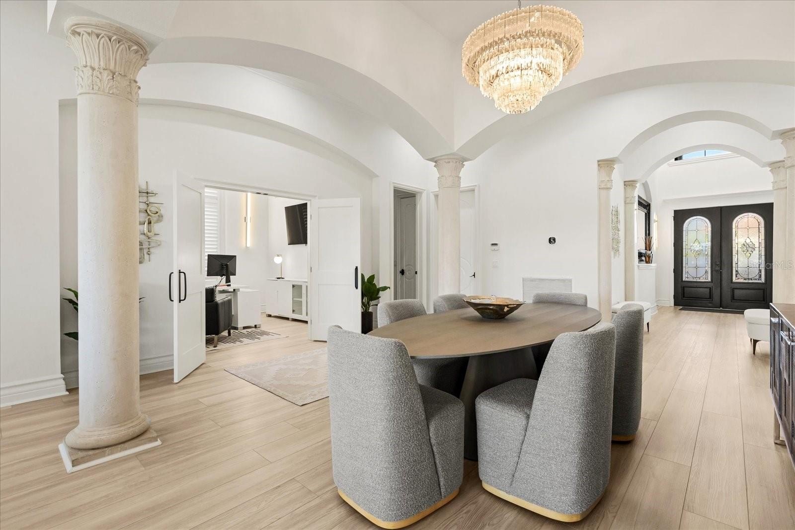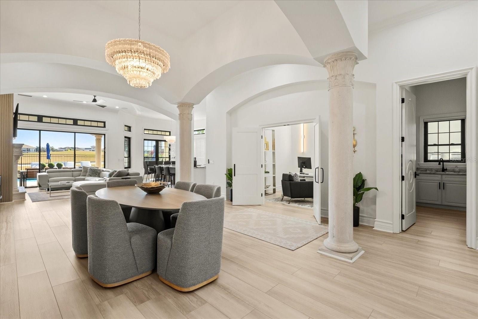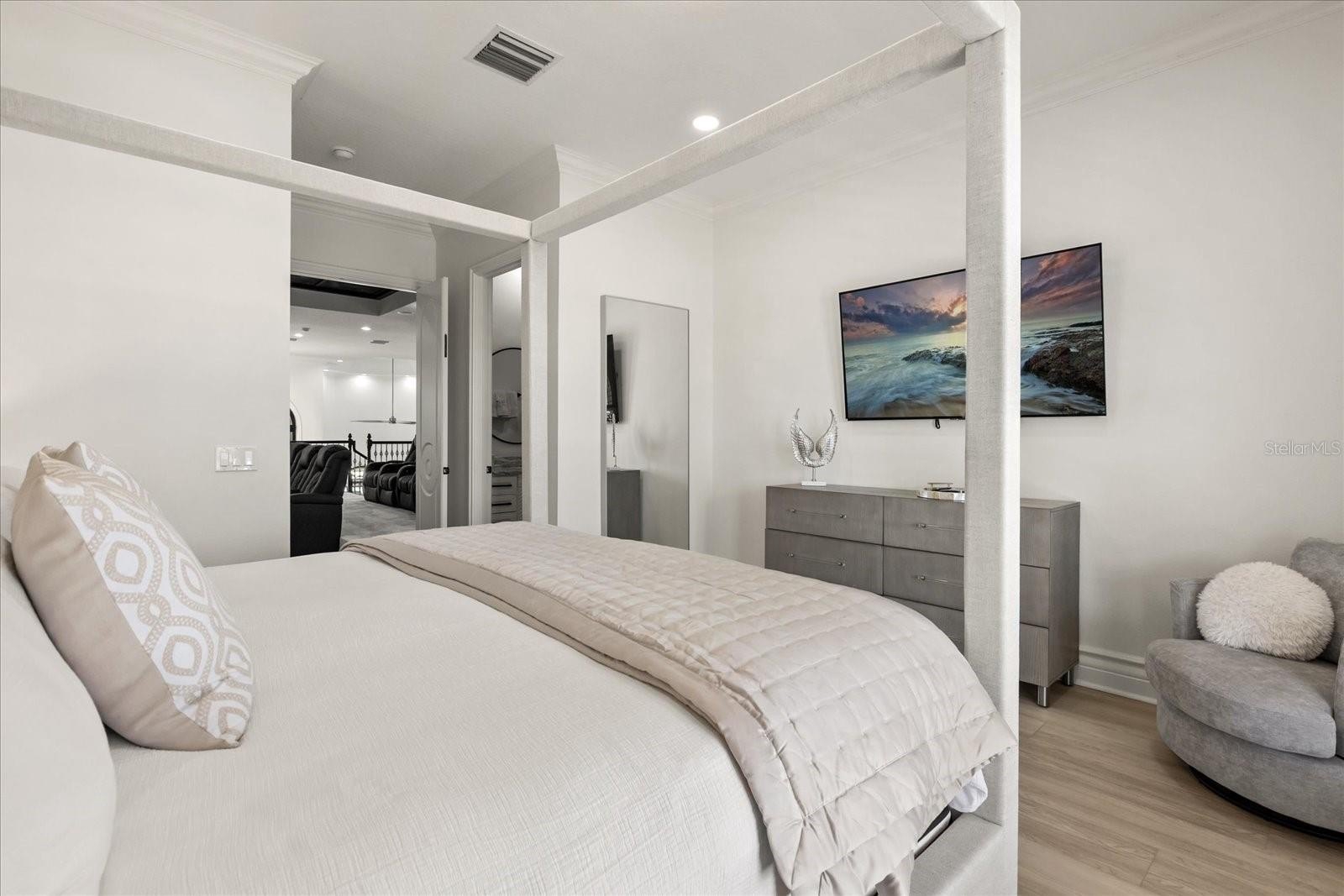 EASY TO SHOW Find the Hidden Mickey! Luxury, lifestyle and legacy is what you will find at Central Florida’s Premier Lifestyle Community, Reunion Resort. Nestled inside the rolling hills of the Nicklaus Golf course you will find a stunning display of character and comfort at 7862 Palmilla Court a Reunion Membership Home. This FULLY FURNISHED golf course view home is located in the ultra-exclusive Legends Corner, which is one of the most highly desirable portions of the community. The property radiates curb appeal and stands out from others with recent exterior paint, a freshly pressure washed roof and backyard space that makes you envy of the neighborhood. Once inside you are greeted with views, design and massive ceiling heights that are hard to miss. The entire house has been re-imagined from flooring, to paint, and from furniture to fun, and no area has been left behind. Outdoor space includes new pavers, patio furniture, completely resurfaced pool and spa, including the newly installed Mickey putting green! With this unique floor plan, you will find an expansive first floor open concept that creates multiple gathering spaces. The front room has oversized windows that let in a ton of natural light and invite you to play a friendly game of billiards. Continuing through the foyer, you will find an area set aside specifically for organized storage. The property also has a unique home office feature for those who need a quiet space to take care of the business of the day or to steal a little computer time. The lure of the golf course and patio view pull you through the home into the living space and dining area. You will find a bright and airy kitchen with a private wine closet and pantry with new updated modern appliances, fresh cabinets and new countertops. The home has all new flooring and specially designed lighting. The first-floor oversized master includes a double vanity, soaking tub and large private closet. Once upstairs you are greeted by a gathering space that is perfect for entertaining. Watching the big game, your favorite family movie or catching up on the weather report at home is easy to do in this property because you will have your very own private in-home theater and multi-purpose media space. You will also find three additionally professionally designed bedrooms that include all new furniture and flooring. One of them doubling as a second master with a private balcony perch. Each of the rooms has closet space and a private restroom for occupants. This home just feels different. There is also a very special room set aside that transports little ones to a magical space that makes them feel like they are amongst the friendly faces of royalty. The large second floor balcony space spans the width of the home and includes lounging furniture along with a SAUNA and expansive breath-taking views of the 11th hole of the Nicklaus golf course. It has been called the "perfect spot to hideaway." From floor to ceiling and from the front door to the first putting green this home awaits! Home is being sold FURNISHED, garage is finished and includes game room and golf cart parking. Reunion has everything you want in a community including 3 signature golf courses, world class dining, waterparks, lazy river, water slides, firework viewing areas, tree lined streets, dog park, playground, driving range, golf simulator, member events, in-resort shuttle service, and event space. Live the resort lifestyle like a VIP. REUNION
