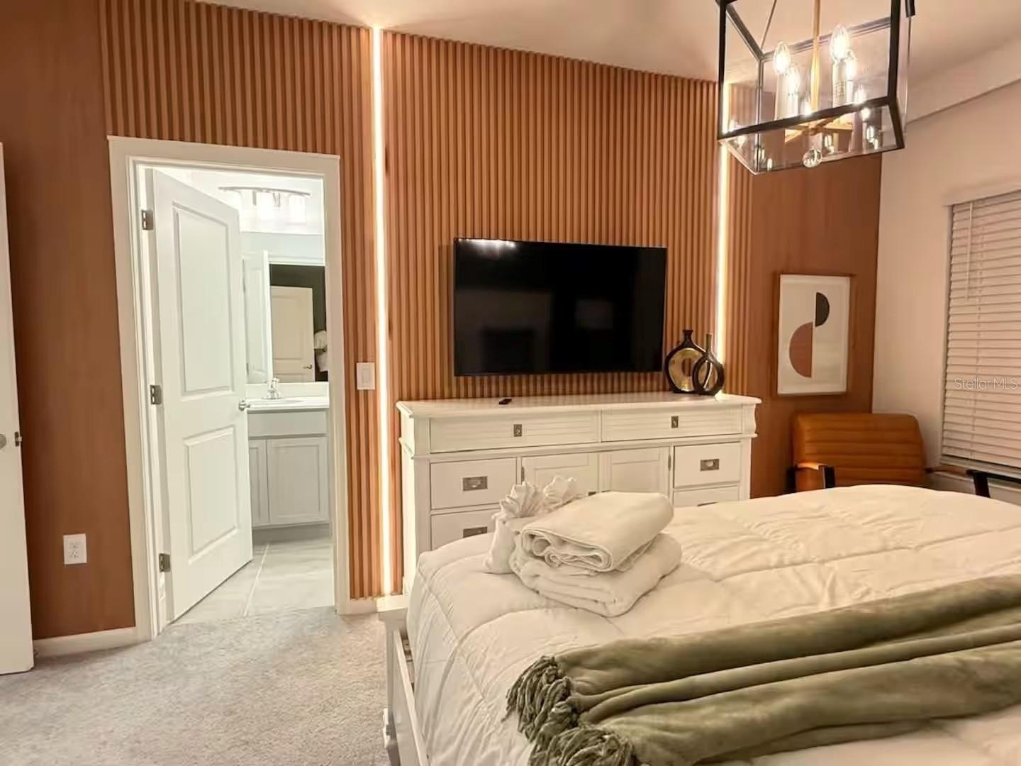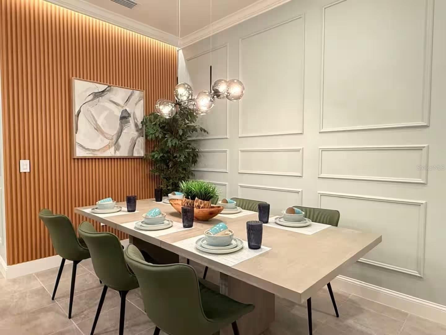The expansive living room and dining room provide an inviting setting for entertaining family and guests. The stunning kitchen is both elegant and practical, showcasing solid wood cabinets, gorgeous stone countertops, and included appliances. Every detail of this home has been thoughtfully curated with professional decorating, delivering a sophisticated and turnkey experience from day one.