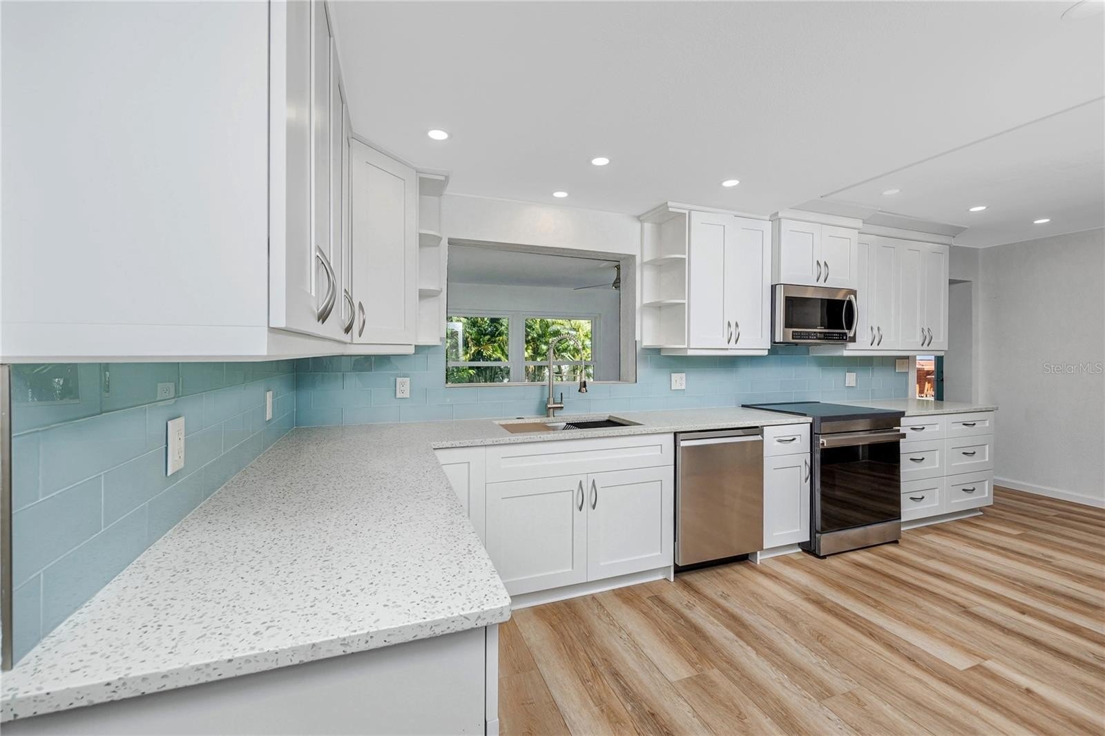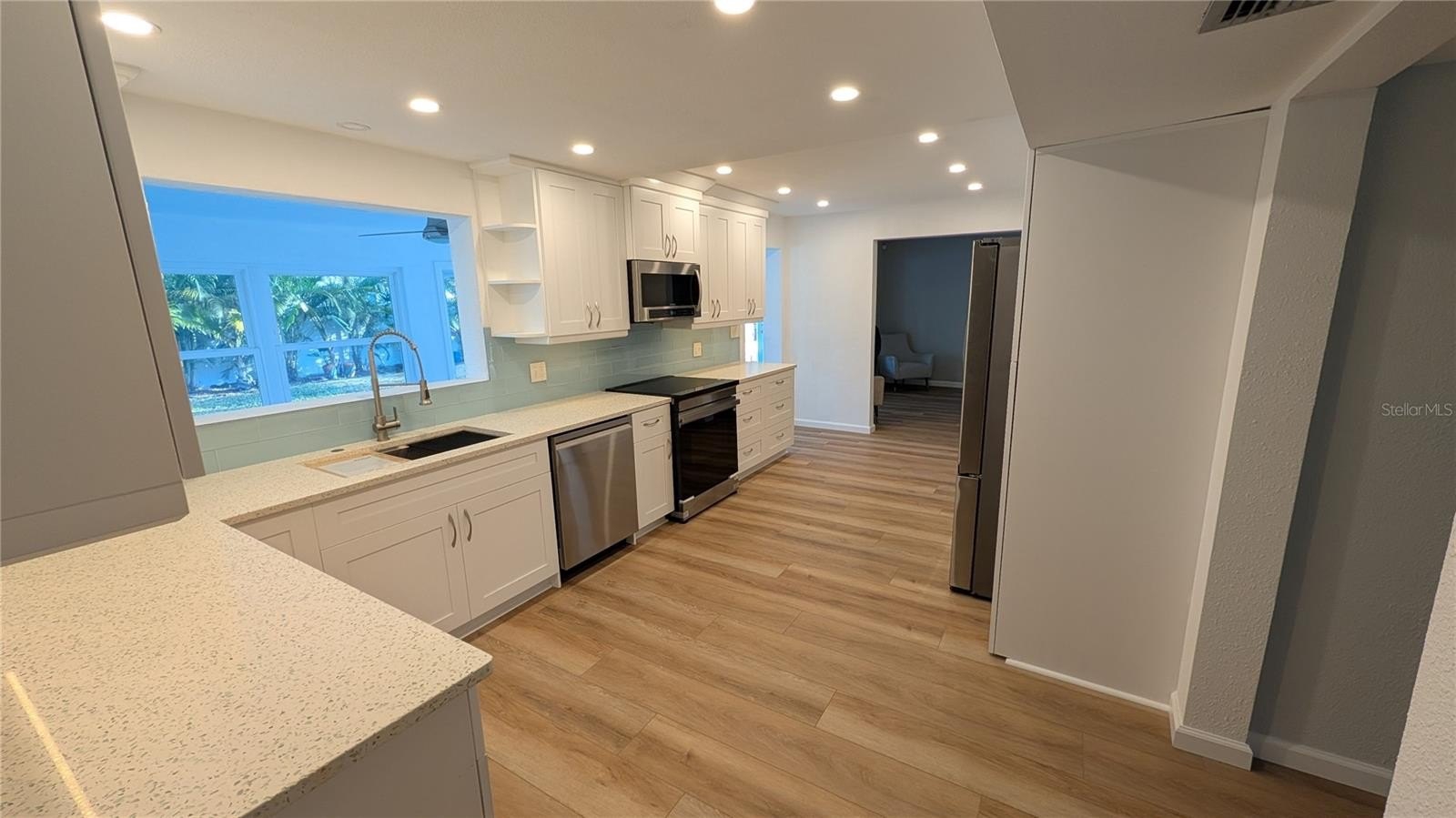 The property sits on nearly a quarter acre, an incredibly rare offering in St. Petersburg, providing exceptional space for activities, privacy, and flexible outdoor living. The flexible layout is ideal for both entertaining and everyday comfort, featuring multiple living spaces including a light filled living room, formal dining area, family room, Florida room, and a main level office or guest bedroom with full bath. The chef’s kitchen was refreshed in 2025 with all new appliances, a new sink, refined cabinetry, and a timeless glass subway tile backsplash, complemented by a pass through bar that connects seamlessly to the Florida room for easy indoor outdoor gatherings.