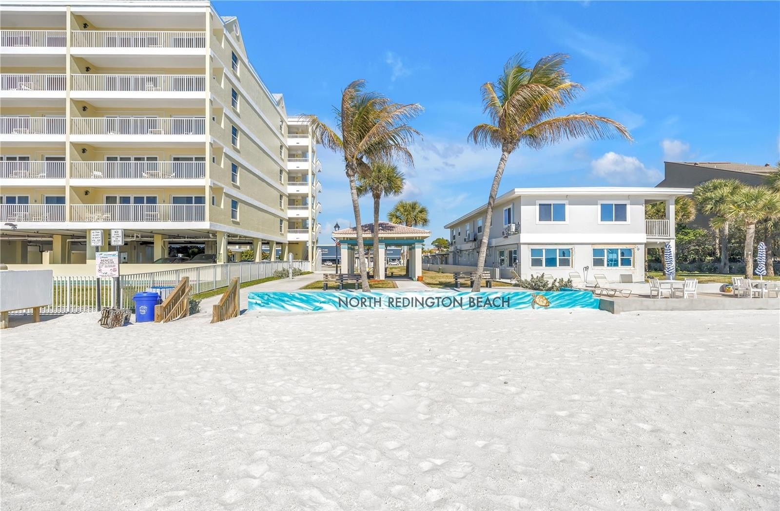 Located in desirable North Redington Beach just steps from the Gulf beaches, this UPDATED, ELEVATED townhome offers LOW-COST flood insurance (under $900/year transferable), CONCRETE BLOCK construction, a PRIVATE ELEVATOR, and Alexa-compatible ELECTRIC STORM SHUTTERS for all upper windows and doors — providing peace of mind for coastal living.