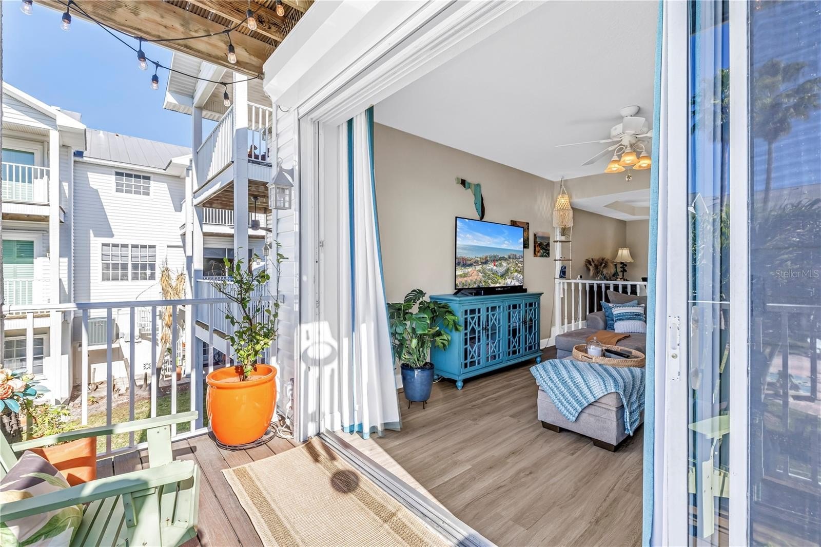 One of the most enjoyable features of this home is the abundance of outdoor space. There are FIVE outdoor areas including four updated composite deck balconies and a ground-level patio facing the pool and spa perfect for going back and forth and cookouts on grill, heated pool, and spa. The beautifully maintained lawn and landscaping are all taken care of for you through the LOW HOA fee of $500/month, which also includes exterior stucco maintenance and termite protection. Note- On ground patio there is gas connection installed for generator or grill by this patio and spiral staircase to the 2nd level.