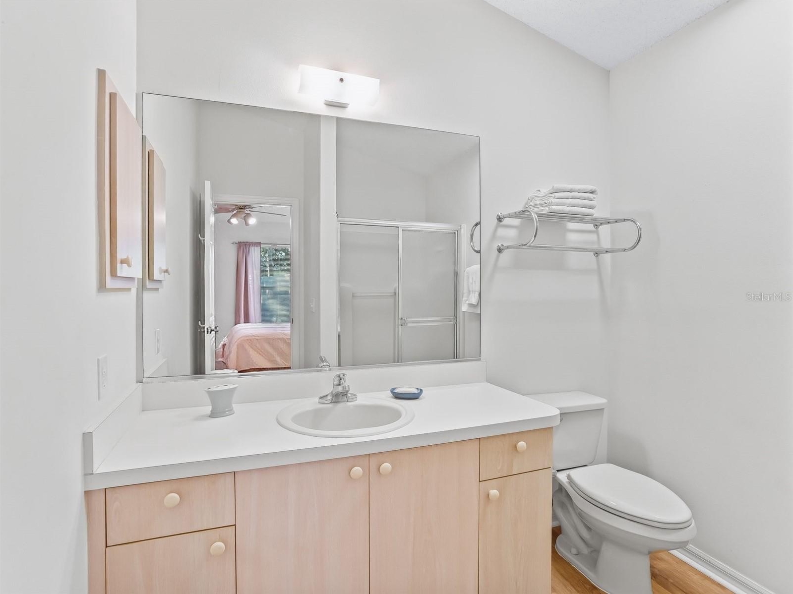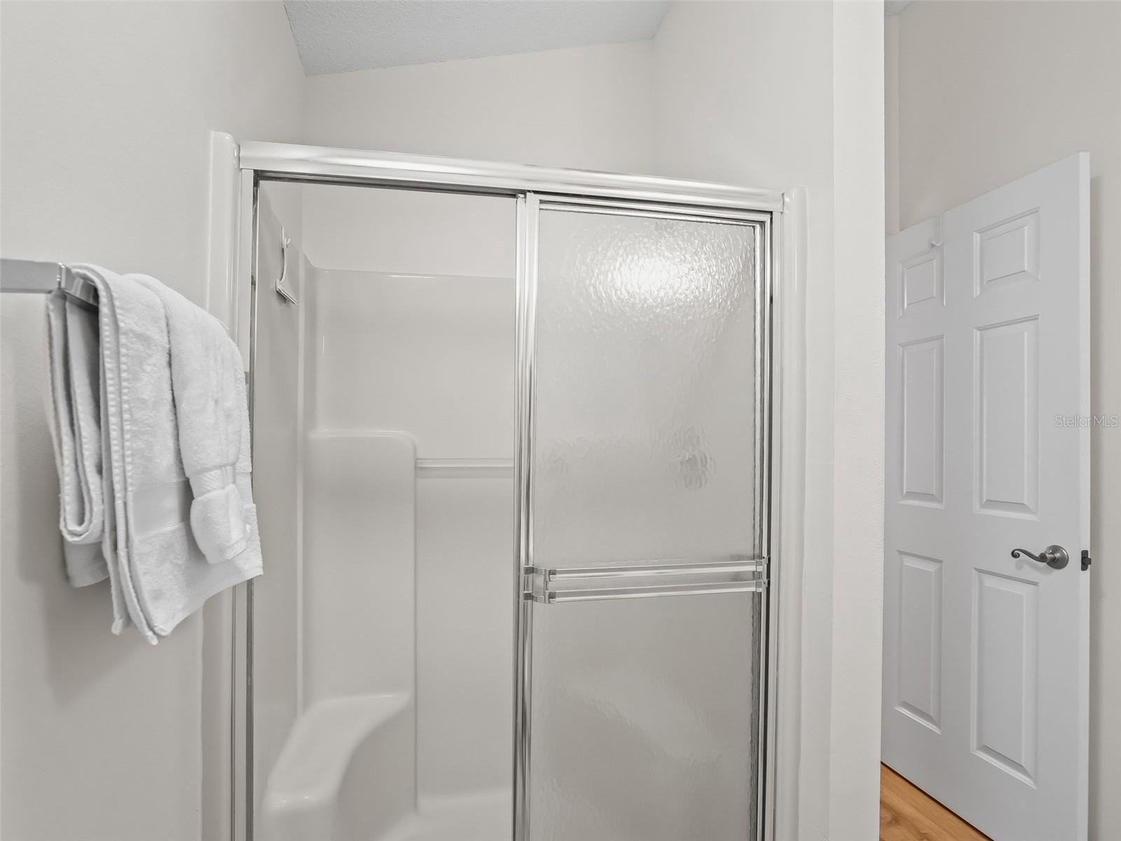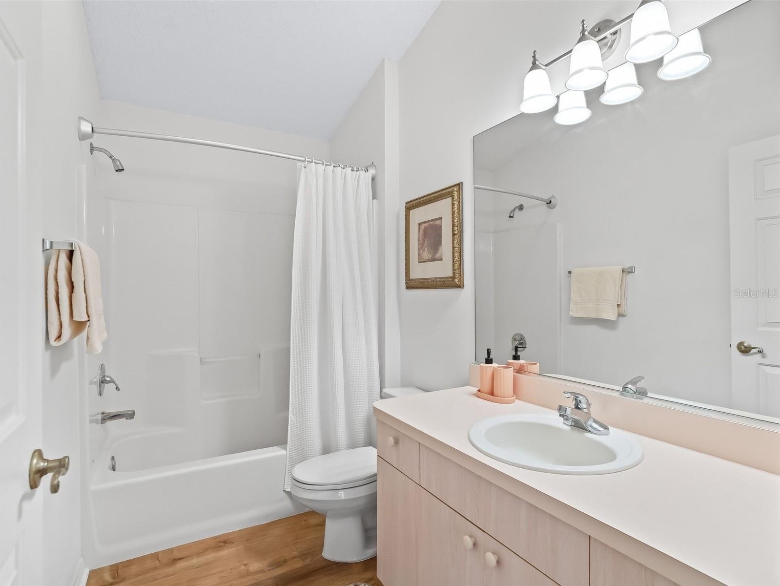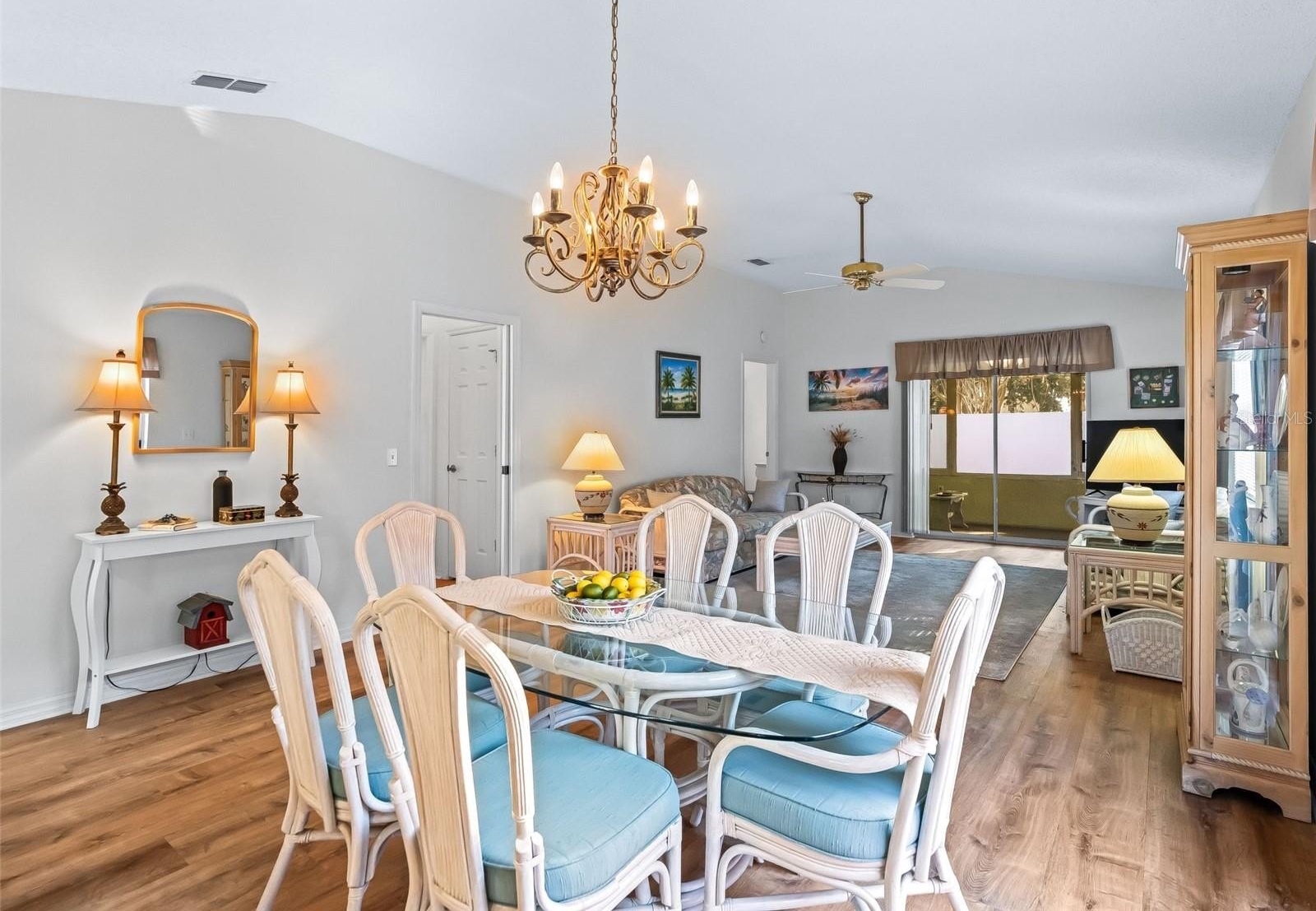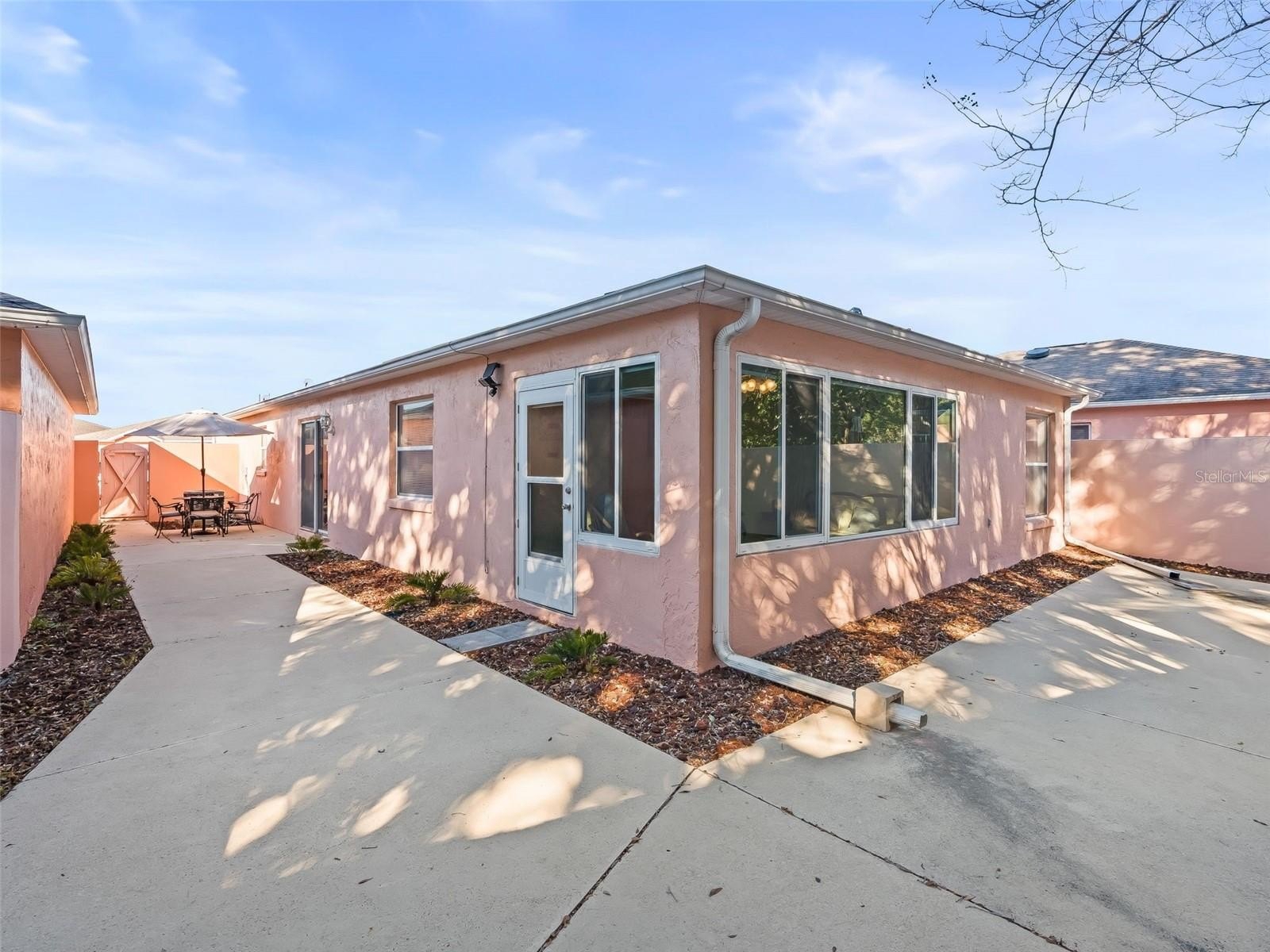 The primary suite includes a walk-in closet and a private en suite bath with a walk-in shower. A thoughtfully designed second bedroom features a pocket door that creates a private guest suite with convenient access to the second full bath. The enclosed Florida room provides year-round enjoyment and overlooks a private, low-maintenance landscaped courtyard, ideal for relaxing or entertaining.