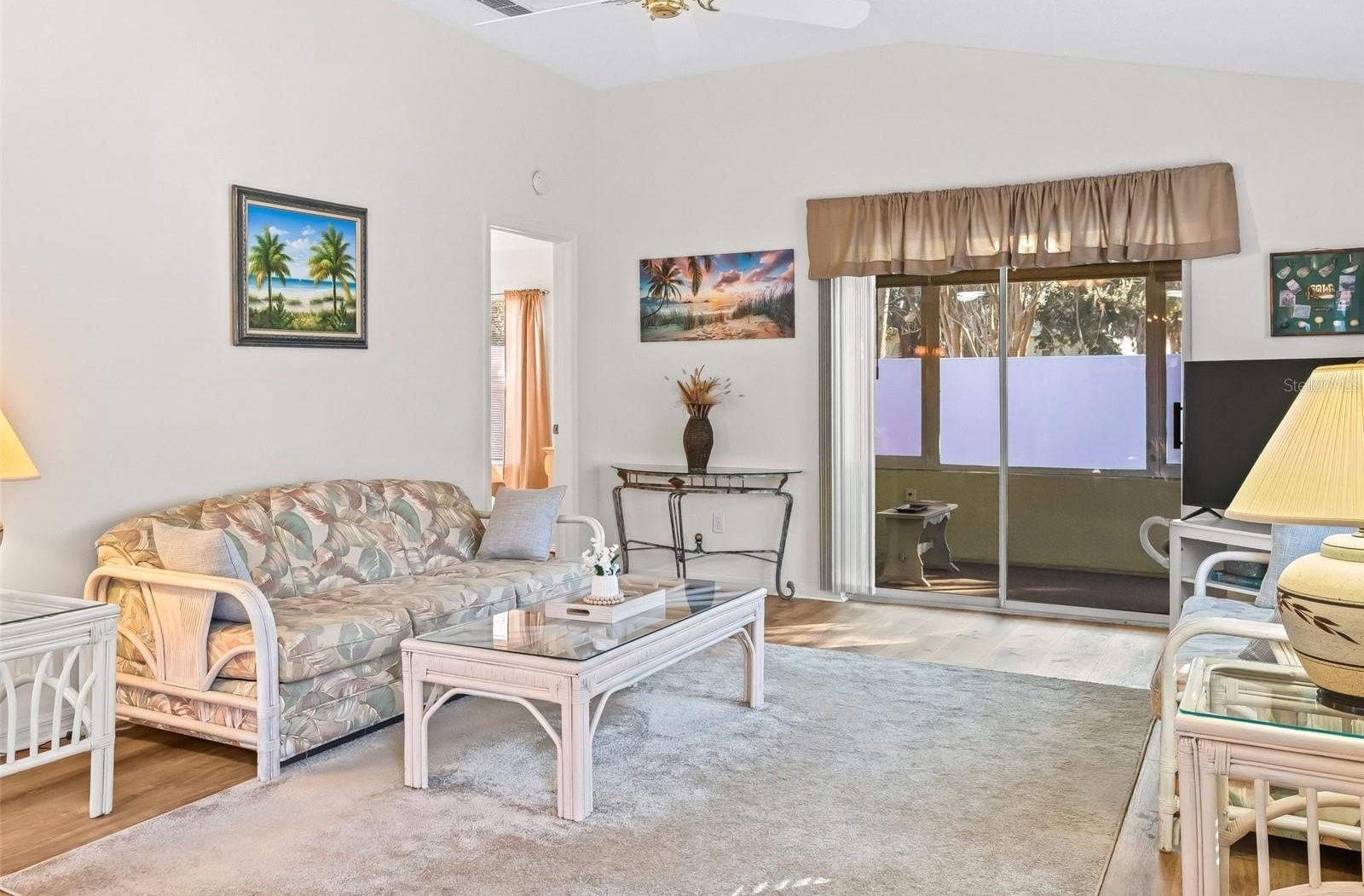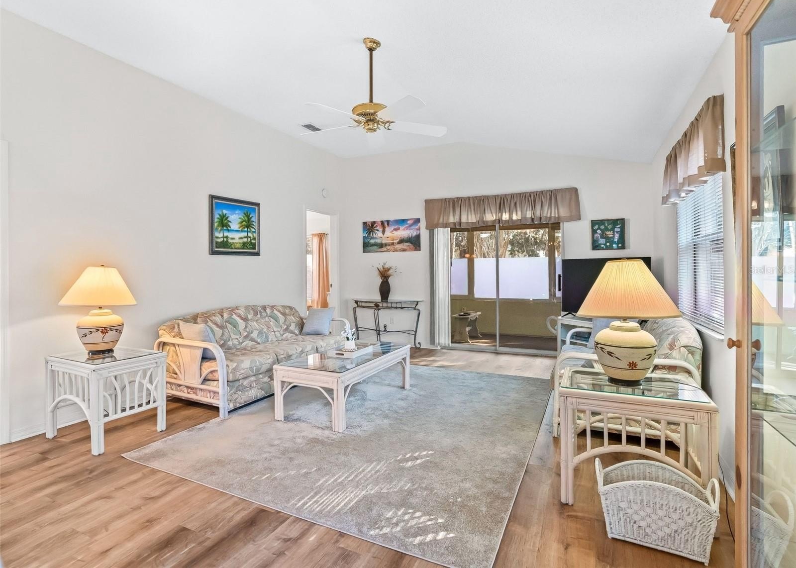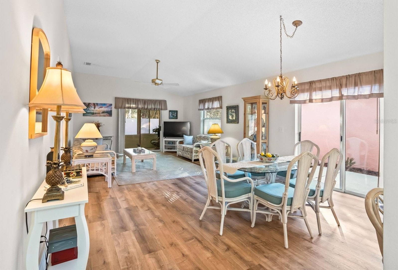 Designed with comfort and style in mind, the home features an open-concept floor plan enhanced by vaulted ceilings and abundant natural light. The spacious kitchen offers generous counter space, new stainless steel appliances (2024), and easy-care Luxury Vinyl Plank flooring (2024), creating a seamless space for entertaining and everyday living.