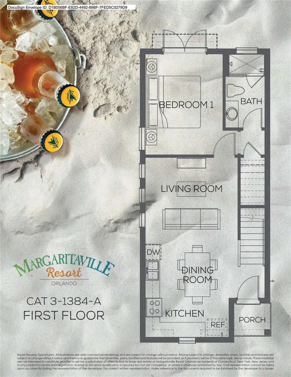 BEST DEAL FOR THIS MODEL IN THE ENTIRE RESORT! Stunning “CHILLVILLE” Cottage in Margaritaville Resort Orlando with HOT TUB! BRAND NEW COUCH JUST INSTALLED IN LIVING ROOM! Whether you're looking for a full-time residence, a second home, or vacation rental investment, this one checks every box. Situated on a desirable CORNER LOT, this popular 1384-A model features 3 bedrooms, 3 full bathrooms, plus a versatile bonus room. The primary suite is located on the first floor, complete with an en suite bathroom and elegant French doors that open to your private backyard retreat, featuring your very own MARGARITAVILLE HOT TUB surrounded by lush tropical foliage, swaying palm trees and shell pathways. Upstairs, you’ll find two additional bedrooms, including another primary suite with an en suite bath for added comfort and privacy. The bonus room includes a built-in twin bed, making it perfect for extra guests or added rental flexibility. Additional highlights include upgraded appliances, wood-look tile flooring throughout, ceiling fans in all rooms, a high-capacity washer and dryer. This home includes the MRO-approved “Caribbean Oasis” furniture and housewares package — INCLUDED in the list price. That means high-end furnishings, blinds, drapes, TVs, artwork, kitchen essentials, dishware, linens, and more. Enjoy access to a one-of-a-kind resort lifestyle with multiple pools, restaurants, bars, live music, fitness center, on-site water park, retail shops, and more. And the location? Just minutes from Walt Disney World and Central Florida’s world-famous attractions.