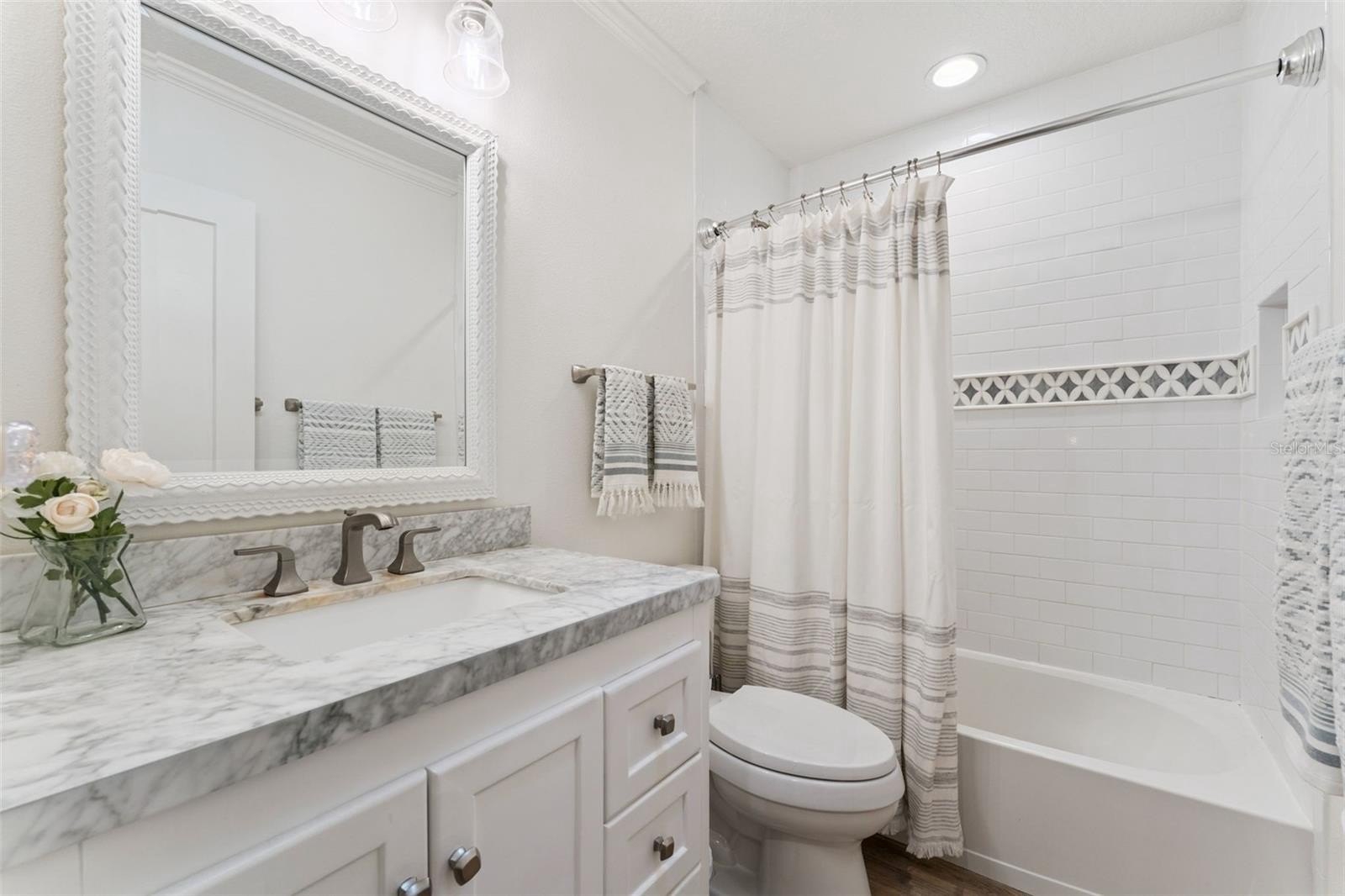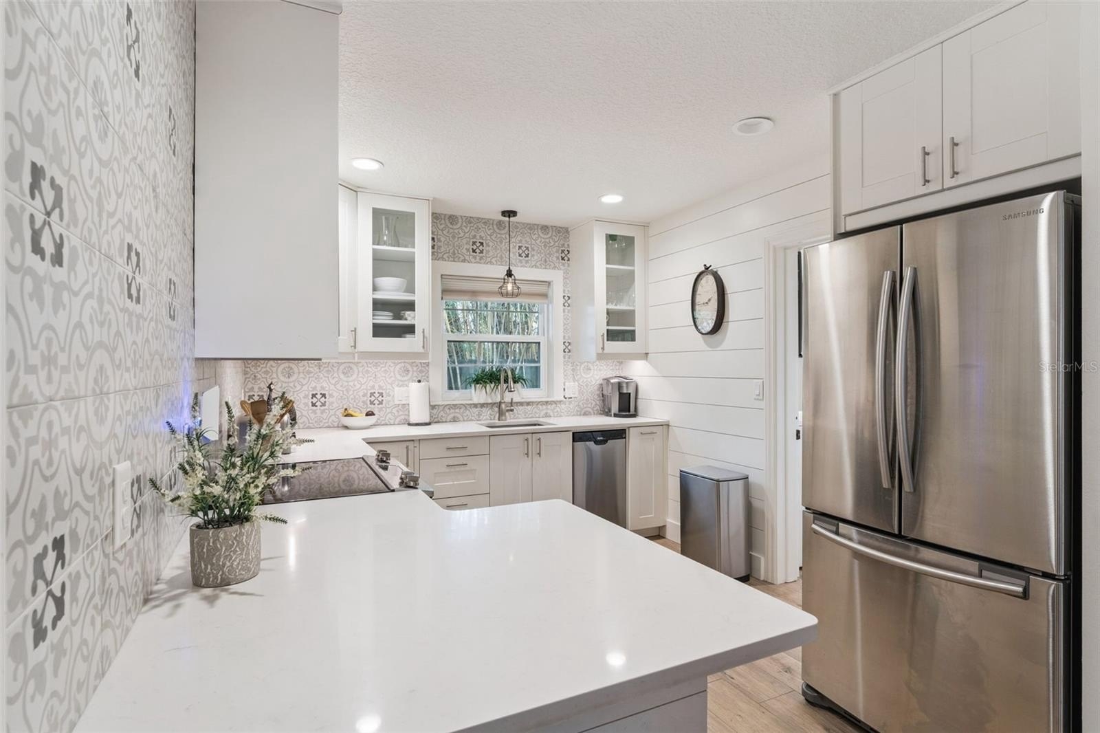 The fully renovated kitchen is a showstopper, boasting quartz countertops, a professional tile backsplash, newer appliances, and ample cabinetry—perfect for both everyday living and entertaining. The bathroom has also been completely renovated with modern finishes and fixtures for a fresh, spa-like feel. The laundry room features abundant storage to help maximize the space of the home!
