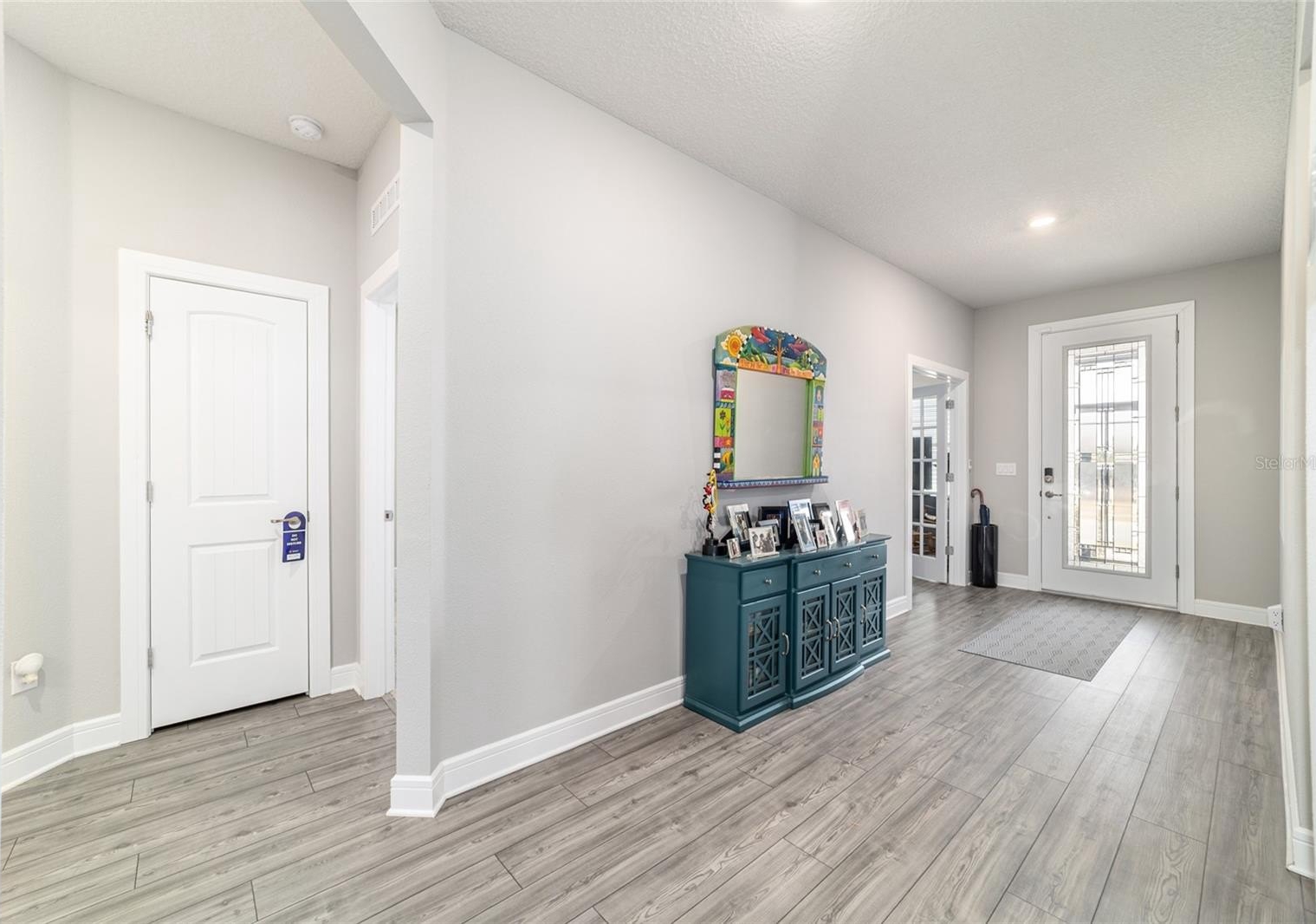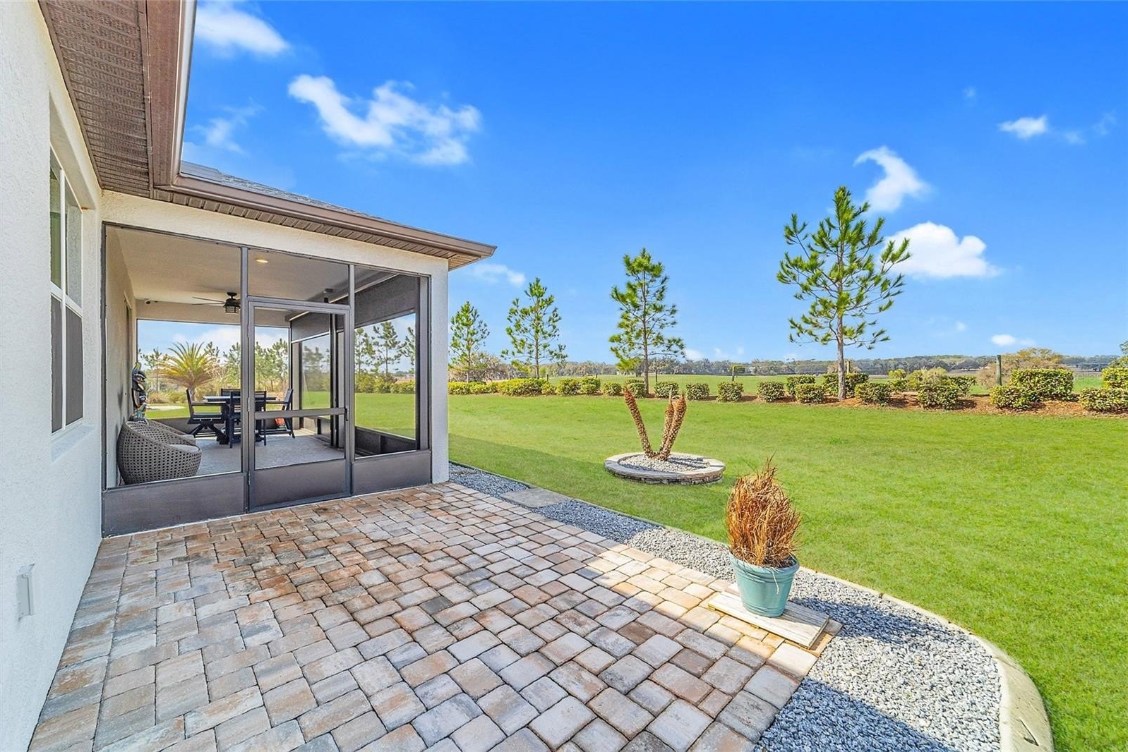 Don’t miss out on these rare, private Preservation Farm views, offering an elegant sweep of broad pasture and natural beauty, creating a polished and serene backdrop for luxury living. Tucked inside the gated 55+ Stone Creek Golf Course Community, celebrated for its resort-style amenities, this beautifully upgraded Spruce model blends modern sophistication with smart, functional design for an elevated and effortless lifestyle. With 3 bedrooms, 2 baths, a bonus room with a bay window, and a screened-in lanai with motorized sunshades, the home is crafted for privacy, versatility, and everyday comfort. Exceptional curb appeal greets you with stacked stone accents, striking privacy shutters, a custom-painted expanded driveway with paver detailing, mature landscaping with a graceful palm tree, and decorative concrete curbing with river rock ground cover wrapping the perimeter of the home. A screened front porch leads into the contemporary open-concept layout where lofty ceilings, recessed LED lighting, and staggered luxury vinyl plank flooring unify the gathering room, café, and kitchen. The spacious gathering room features a tray ceiling, upgraded fan, and a designer wood-plank accent wall. Expansive glass sliders open to the screened lanai and paver patio, showcasing sweeping farm views from every angle, creating an ideal backdrop for relaxing or outdoor entertaining. At the heart of the home, you will find the chef’s kitchen designed to impress. The kitchen centers around an oversized island with decorative wood accents, perfect for meal prep and casual dining. Additional highlights include crisp Shaker cabinetry with soft-close hardware, gleaming quartz countertops, a statement glass-tile backsplash, a walk-in pantry, and stainless steel appliances, including a recently upgraded refrigerator. Positioned at the rear of the home for maximum privacy, the Owner’s Suite showcases a tray ceiling and a custom outfitted California closet. The spa-inspired en suite bath features a quartz-topped double-sink vanity, a Roman-style walk-in shower with seating ledge, a private water closet, and a transom window that bathes the space in natural light. Two generously sized secondary bedrooms and a bonus flex room provide ideal options for guests, a home office, or a hobby room. A convenient mudroom with built-in full cabinets and shelving leads to the extended two-car garage offering durable epoxy finished flooring, overhead storage, an insulated garage door with automatic privacy screen, and over garage insulation. Additional thoughtful upgrades include Plantation shutters throughout, surround sound speakers, a dedicated interior laundry room, a whole-home water softener, and a Smart Home package featuring a video doorbell. Beyond this thoughtfully designed home lies a vibrant, amenity-filled community where each day feels like a retreat. With a 24/7 staffed gated entrance ensuring both security and peace of mind, you'll enjoy comfort, connection, and convenience at every turn. Luxury-inspired amenities include heated pools, a state-of-the-art fitness center, a spa, and relaxing hot tubs and saunas. Stay active with pickleball, bocce, tennis, and softball field, while a dedicated lifestyle staff curates entertainment, activities, and special events to foster connections. Just beyond the gates, enjoy a golf course, pro shop, and restaurant, perfect for socializing and unwinding. Make your move today and experience resort-style living at its finest!