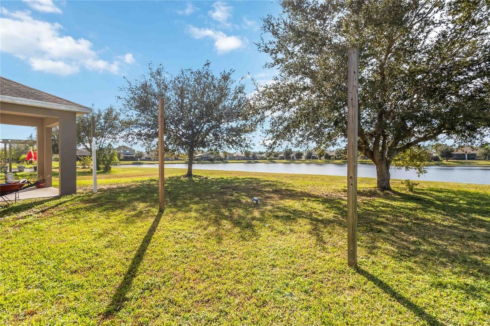Sliding glass doors open to a spacious backyard with serene pond views, creating a private outdoor retreat. Additional highlights include a large backyard, two-car garage, and abundant natural light throughout.