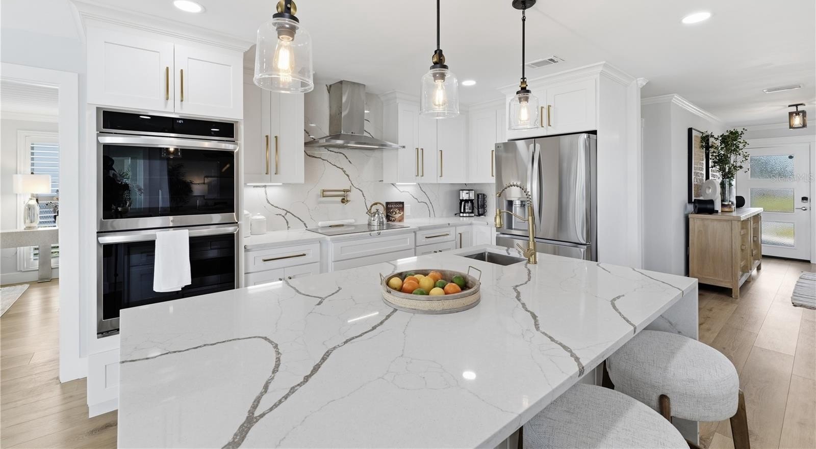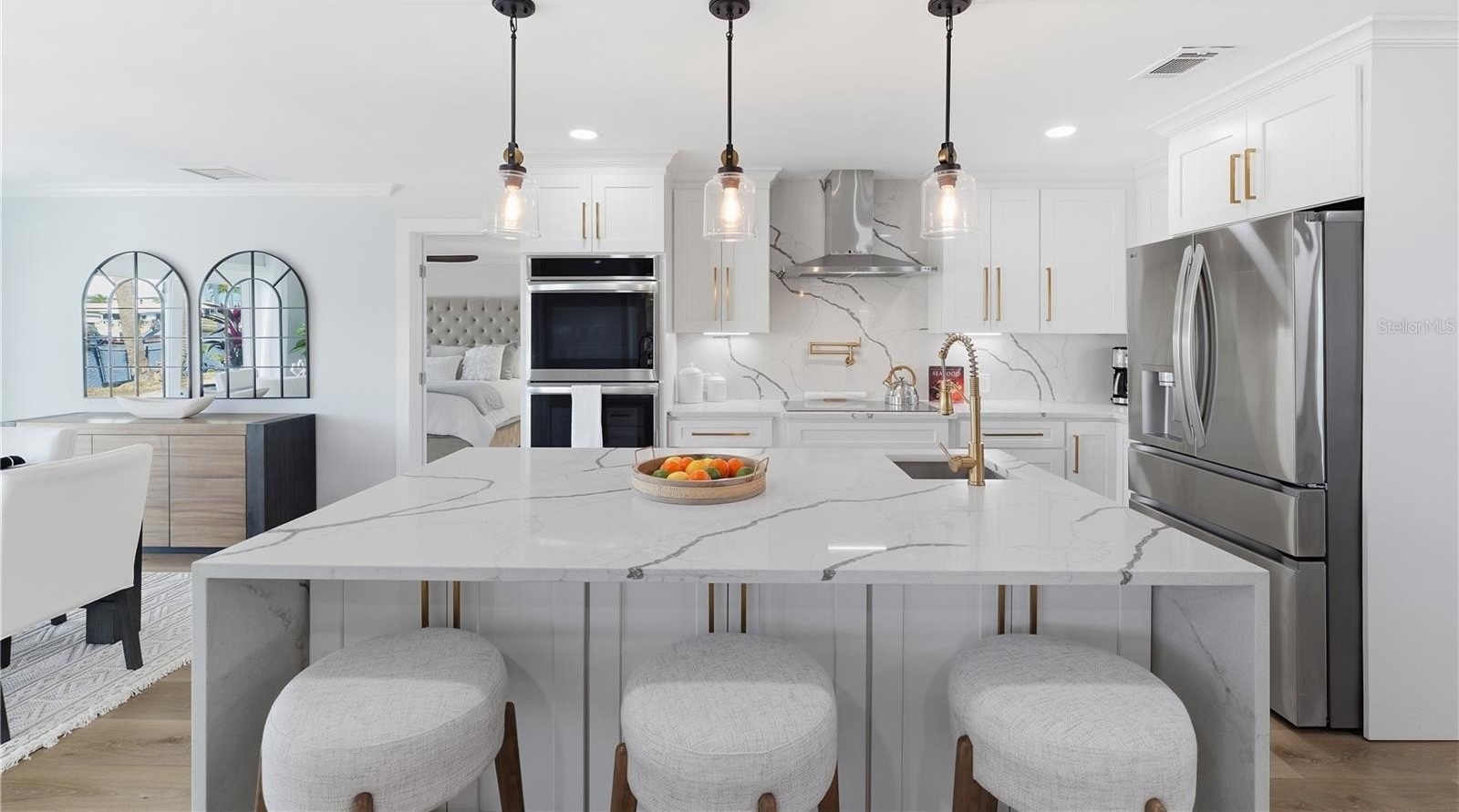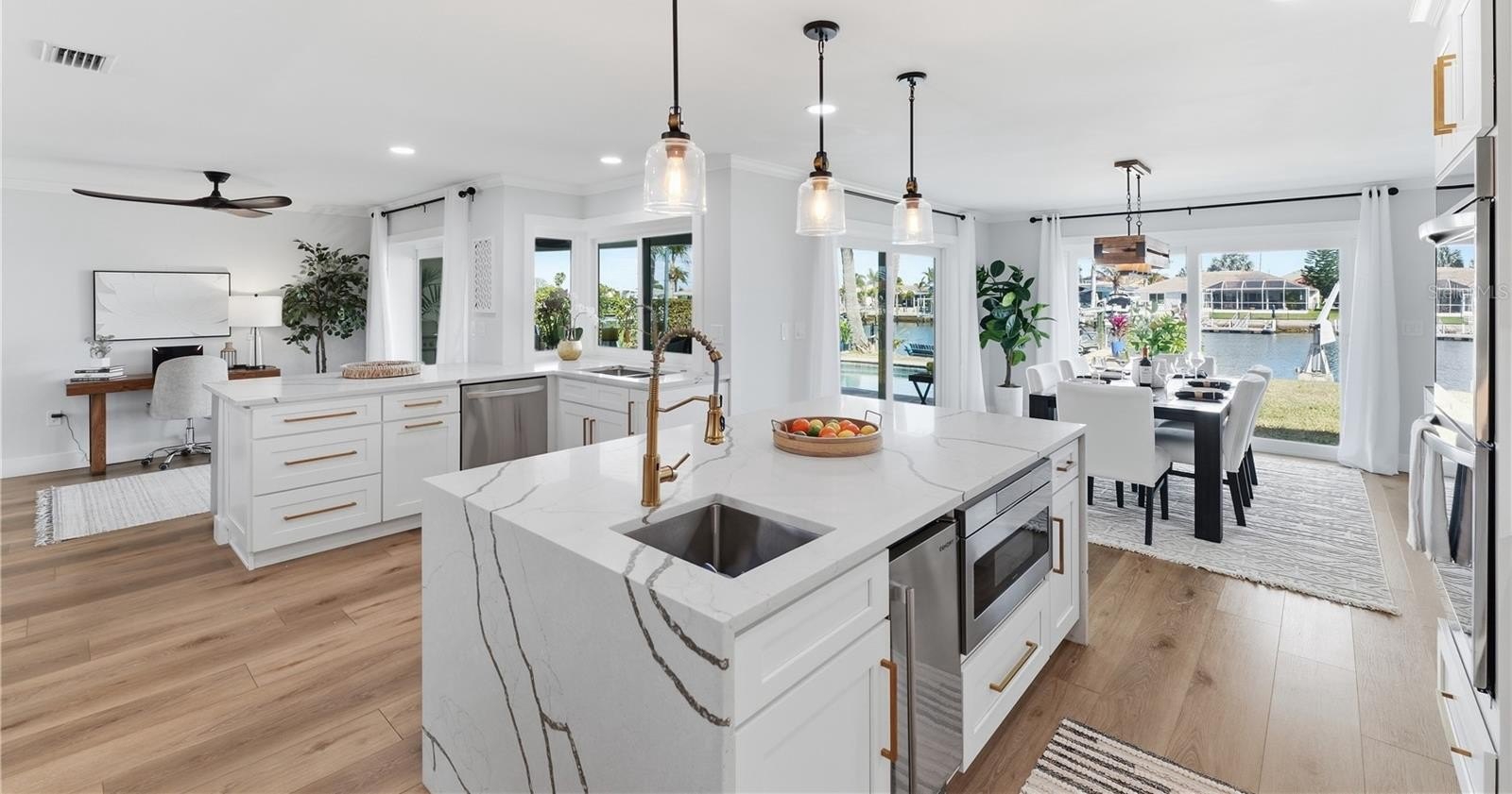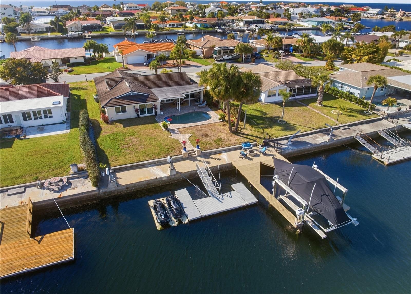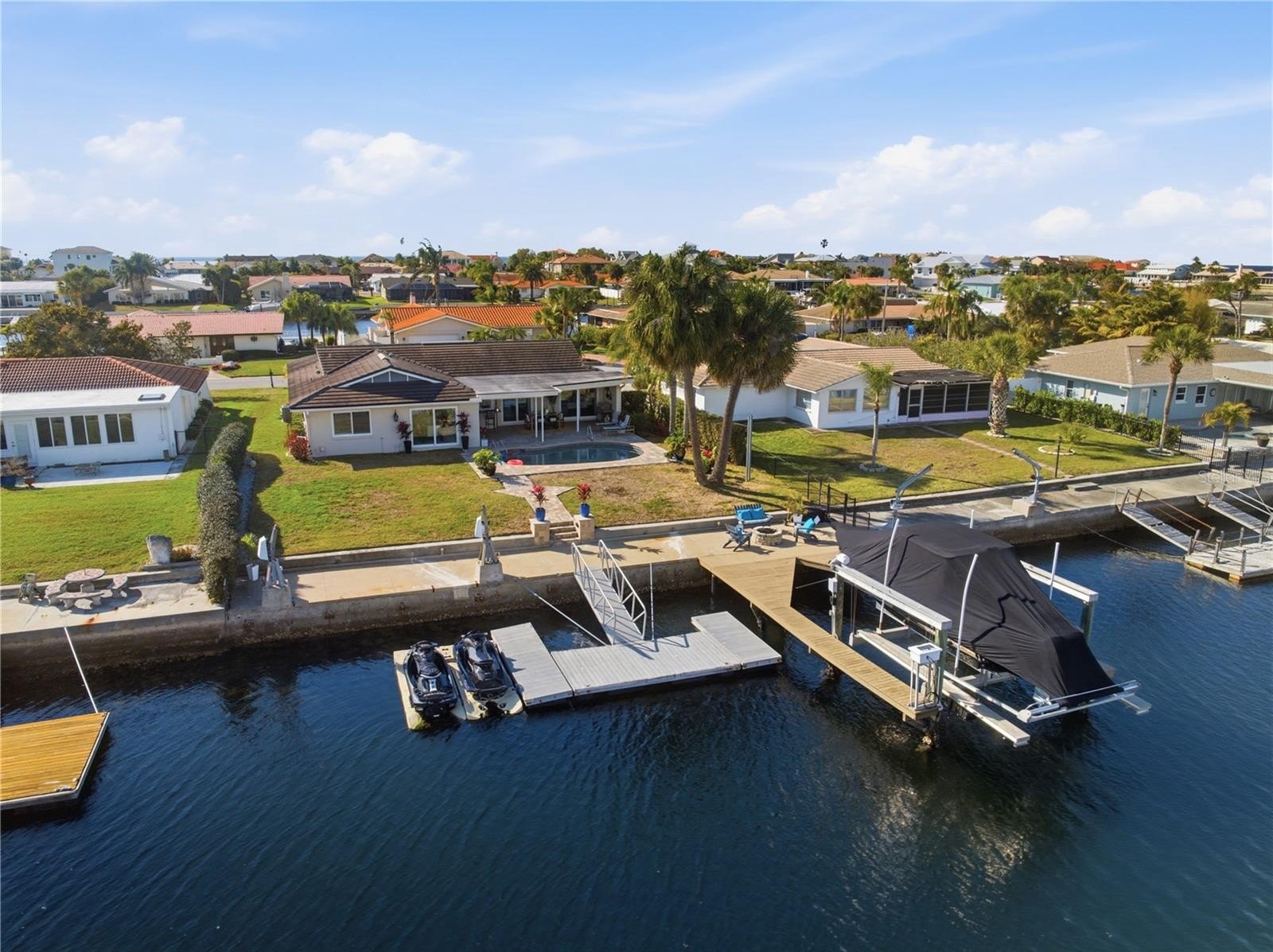 Live the Florida dream in this immaculate fully renovated gorgeous Gulf Harbors waterfront home,,, compares to brand new construction , new tile roof installed in 2017 , new A/C and water heater installed 2025,,,, this 1829 sq ft home has a beautiful open concept with 2 master suites as well as a bonus office space, the oversized 2 car garage separately air conditioned and can be easily converted to a game/ theater room or 3rd bedroom space as needed , your private backyard is a tropical oasis overlooking your beautifully refinished pool with a lifetime fiber tech finish and warranty , there is plenty of room your boat and jet skis with deep water access at all times ( no tide issues ) including a boat lift, floating jet ski docks as well as a floating dock platform,,, the kitchen is truly a chef's dream with double built in ovens , induction cooktop , ice machine, lower built in microwave and top of the line brand new appliances,,,, completely updated plumbing ( no original ) upgraded electrical in 2015 ,,, residents have access to the exclusive Gulf Harbors Beach Club for just $200 optional annual fee , all furnishings as well as linens, dishes and pots and pans can be included ,,, just bring your suitcases and start living like the rich and famous ,,, hurry as this one won't last long ,,, schedule your private showing today,,,,