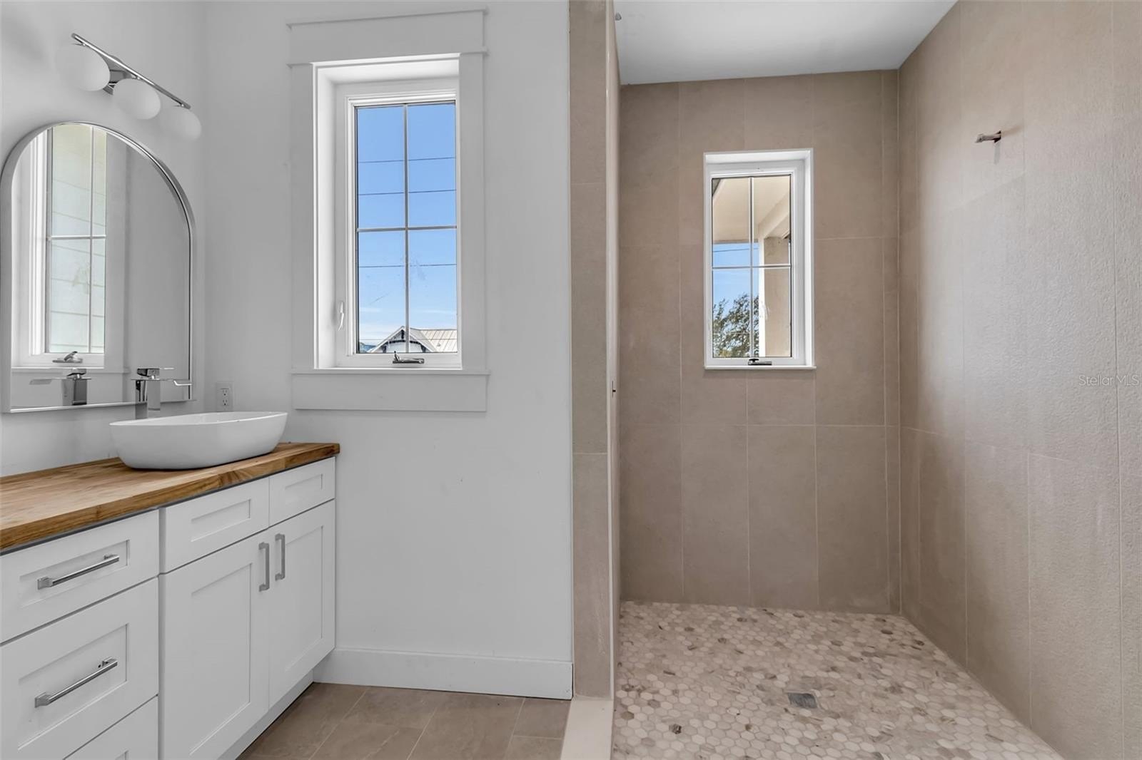 Outside, a private backyard retreat awaits, highlighted by a heated saltwater pool and spa with ample room for lounging and entertaining. It’s an ideal setting to recharge after a day on the sand or enjoy peaceful evenings under the island sky.