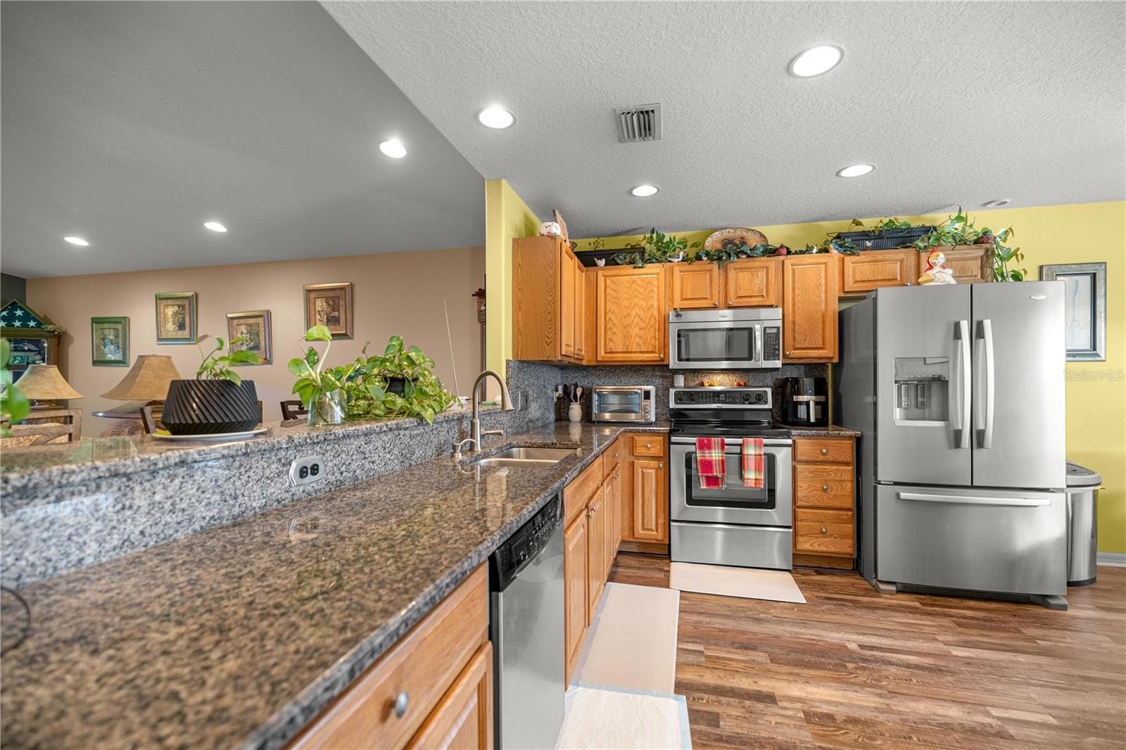 ROOF (2023)! NEWER WATER HEATER! GENERATOR! This beautifully maintained 1,558 sq ft Cottonwood model features 2 bedrooms, 2 bathrooms, and a versatile den, set on a nicely landscaped lot with a stamped concrete walkway and driveway for added curb appeal. The eat-in kitchen offers granite countertops, stainless steel appliances, a pantry, and plenty of space for casual dining. A spacious living room with vaulted ceilings creates an open, airy feel, while sliding glass doors lead to an enclosed lanai with windows and screens, perfect for enjoying the outdoors year-round. The generous primary bedroom includes a walk-in closet and private bath. Additional highlights include an inside laundry room with extra cabinetry for storage, and a garage with Shark coating floors, added storage, and a convenient screen. The HOA provides exceptional value, covering lawn care, trash service, and a guarded entrance for added peace of mind. Residents also enjoy a $30 monthly dining credit to the popular Tavern on the Glen, making it easy to dine close to home. Community amenities are extensive and include a championship golf course, resort-style pool and spa, fitness center, tennis and pickleball courts, dog park, softball field, sports and recreation fields, and a variety of additional activities designed to support an active and social lifestyle. Conveniently located close to shopping, dining, I-75, and just a short drive to the World Equestrian Center. Fridge in garage stays as well. Don't wait and make your appointment today!