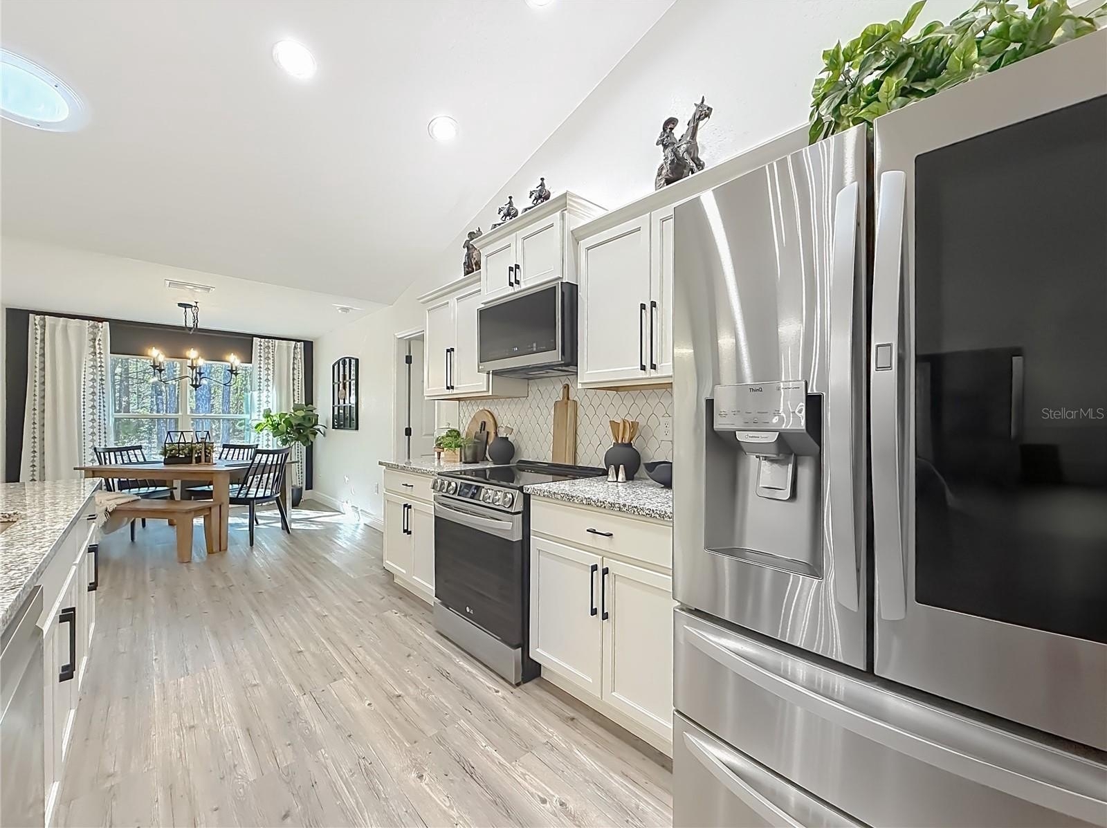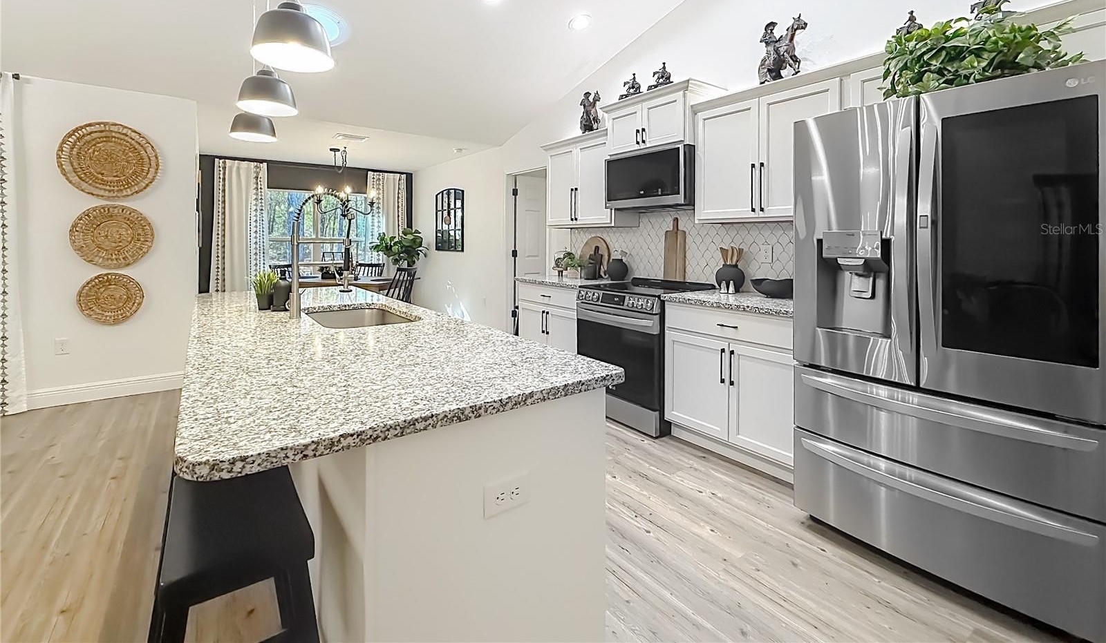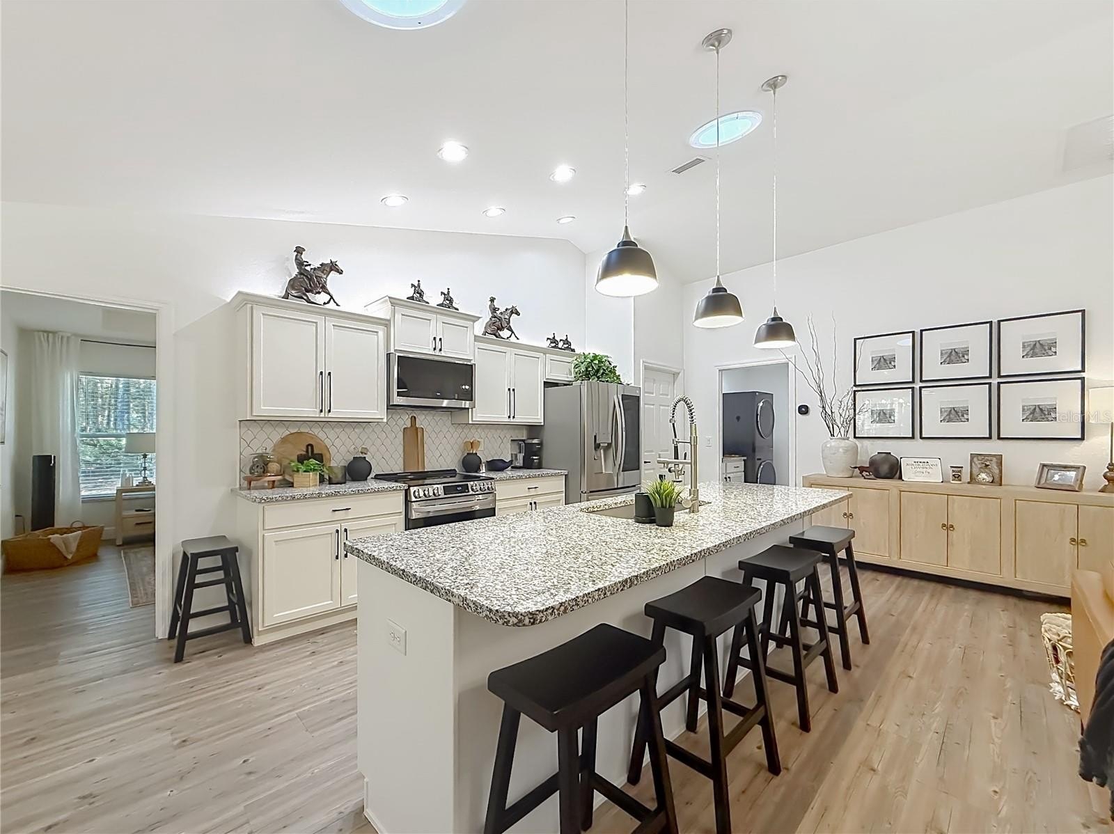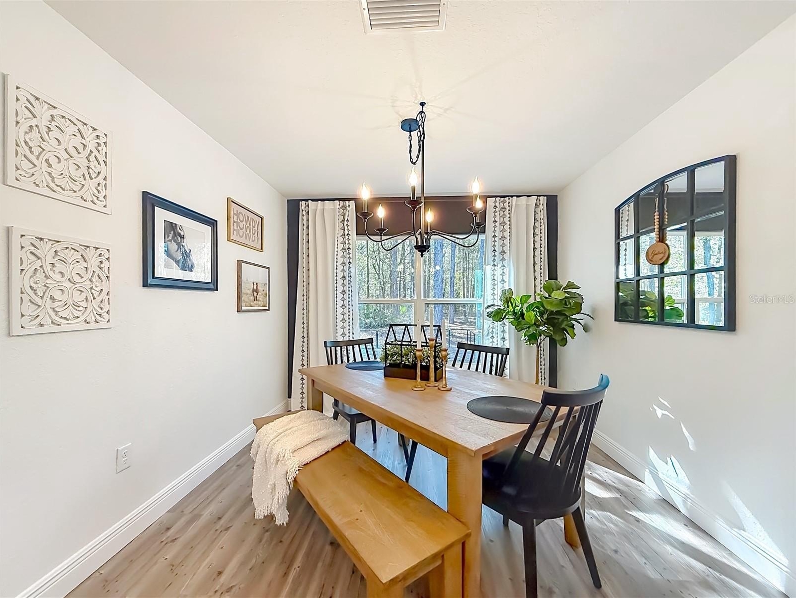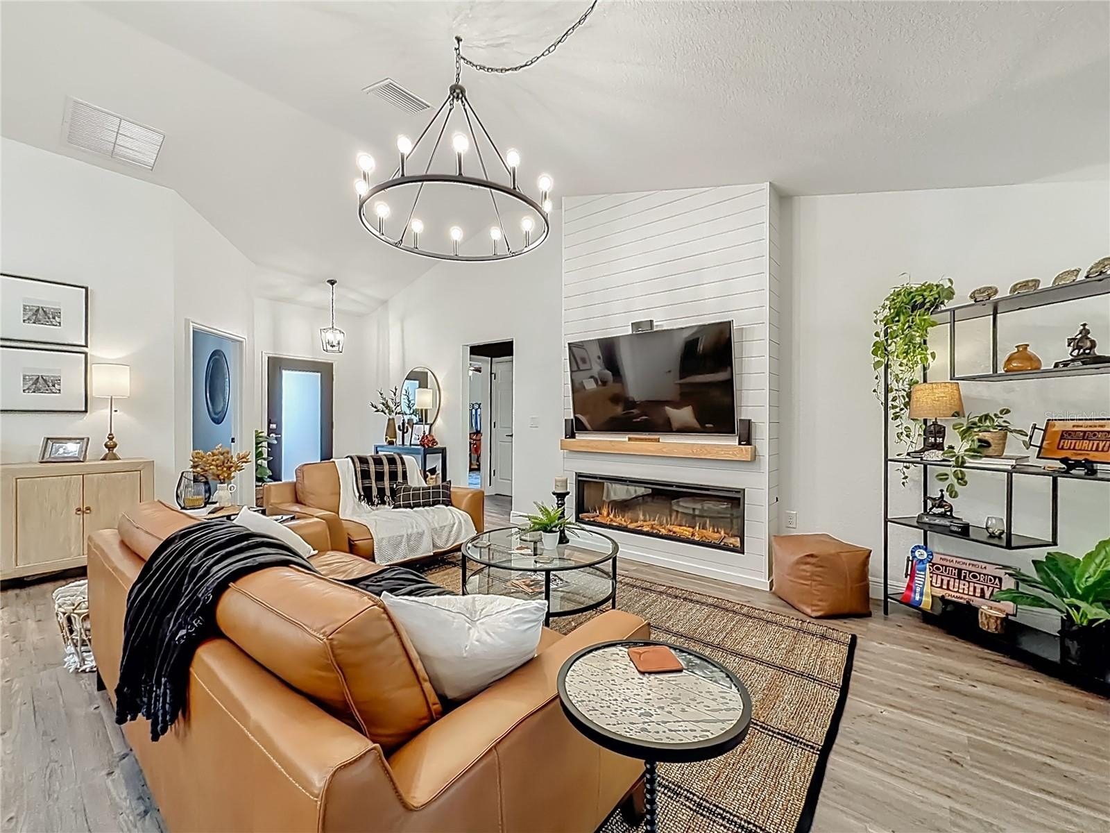 Built in 2022, this pristine home is located in the highly coveted Rolling Hills community (no HOA) - just 8 miles from the World Equestrian Center - on a 1.14-acre lot on a paved road. It has 3-bedrooms plus a dedicated office, 2-bathrooms, and a 3-car garage, equaling over 1,700 sq. ft. of living space in an open-concept layout. The home features solar tubes for an abundance of natural light, a cozy electric fireplace, and a laundry room and spacious pantry equipped with automatic lighting. Durable LVP flooring throughout and upgraded door hardware, mirrors, light fixtures, and custom blinds. A screened lanai and brick patio enable enjoyment of the wooded backyard that is secured with four-board no-climb fencing. A rear gate leads directly from your wooded backyard to a right-of-way walking path, perfect for peaceful strolls. There is a wood shed for extra storage and a dedicated RV pad with both 30 AMP and water hookups.