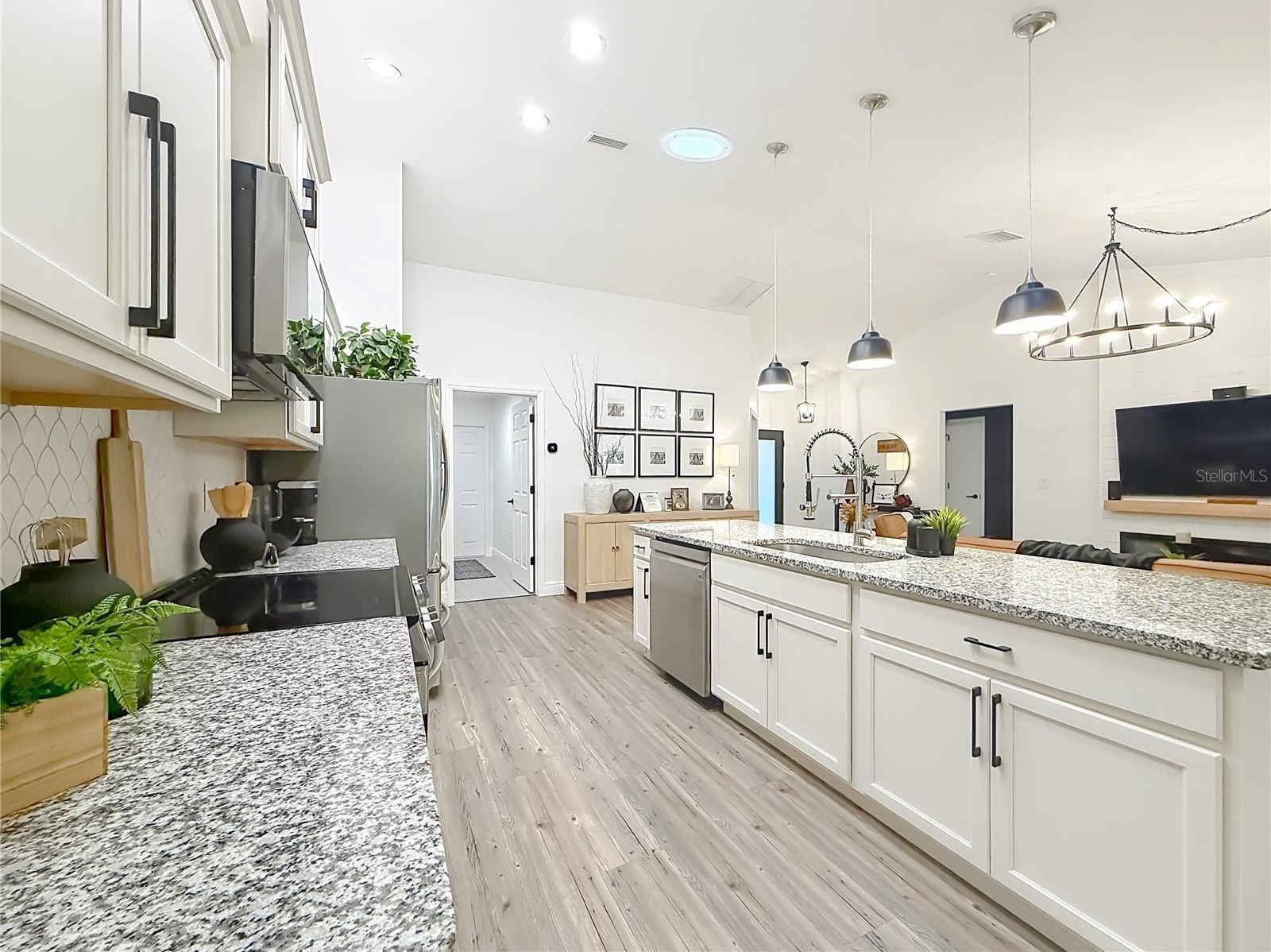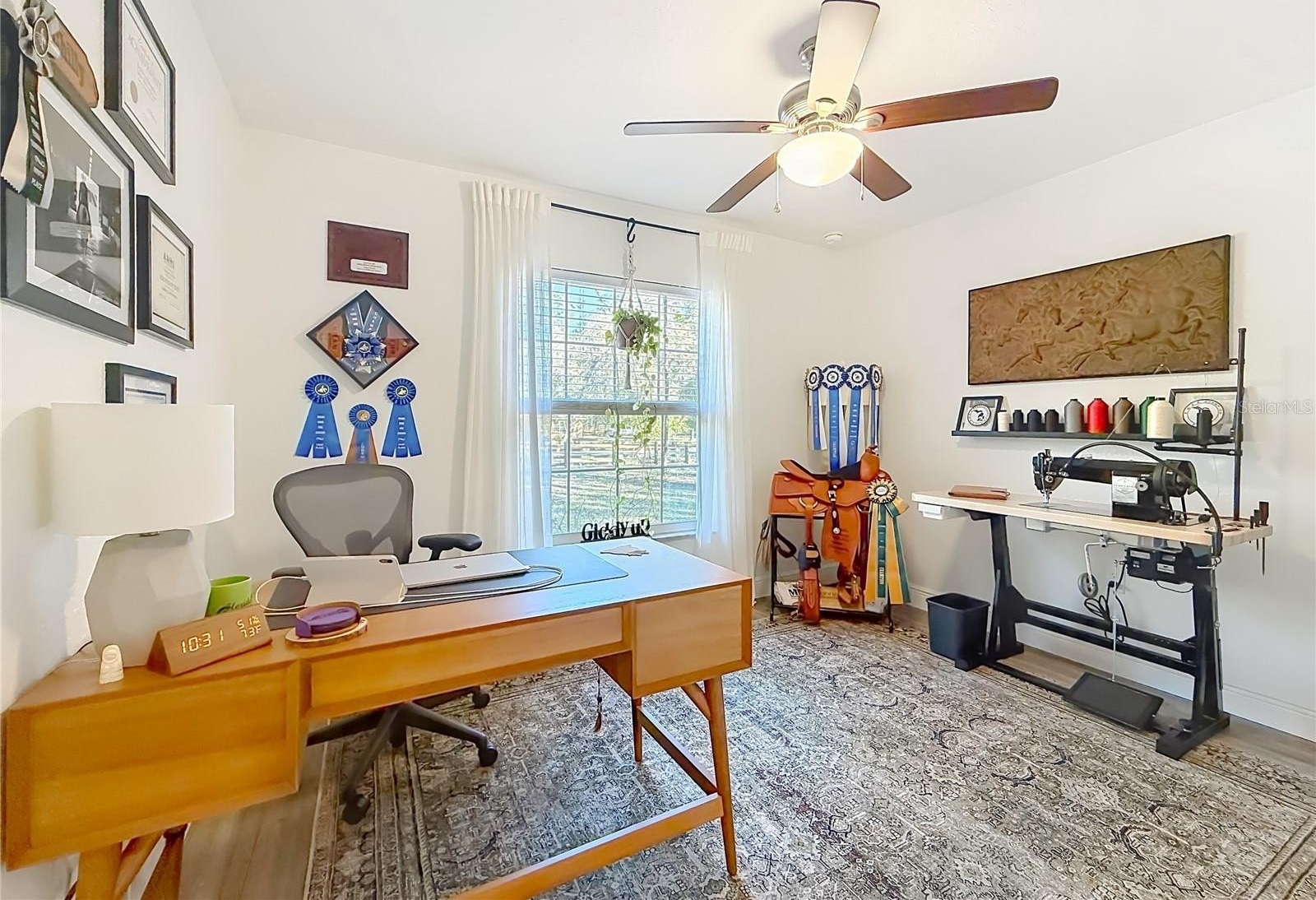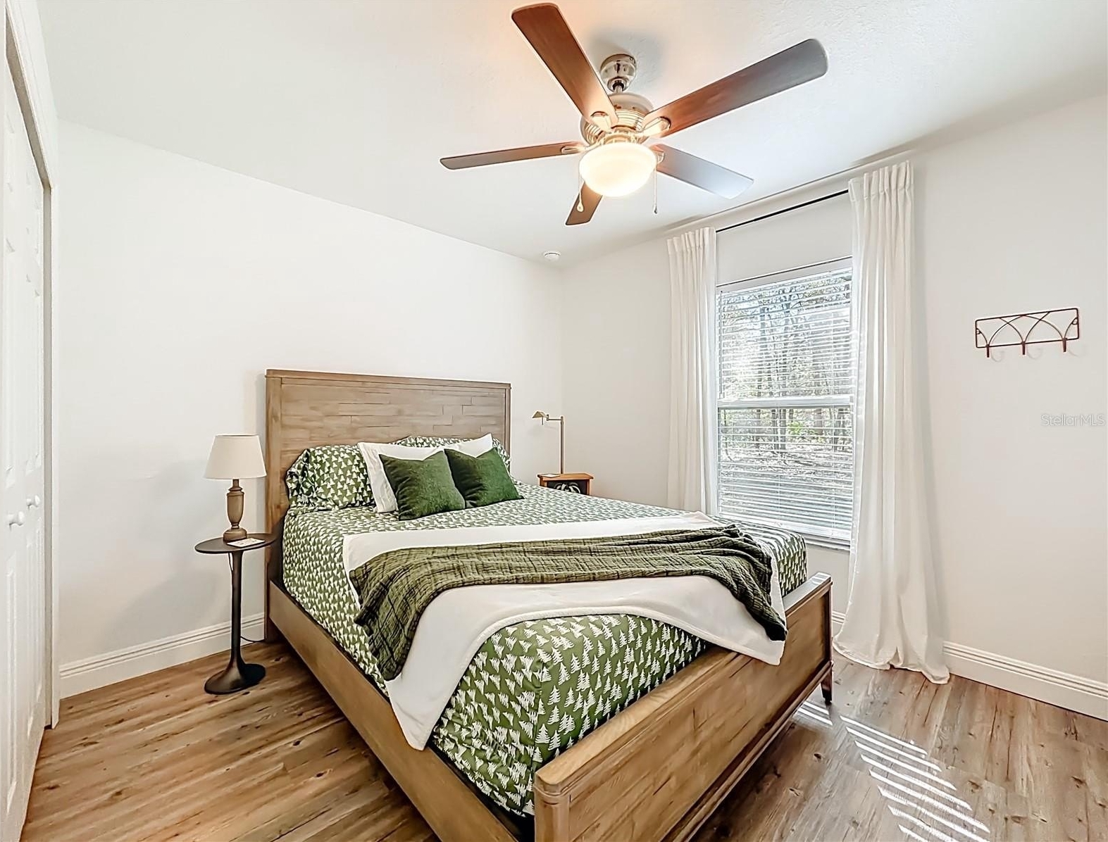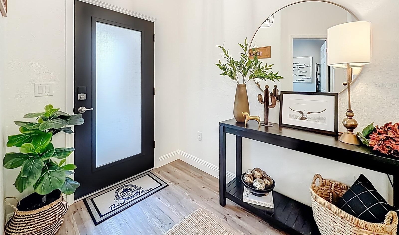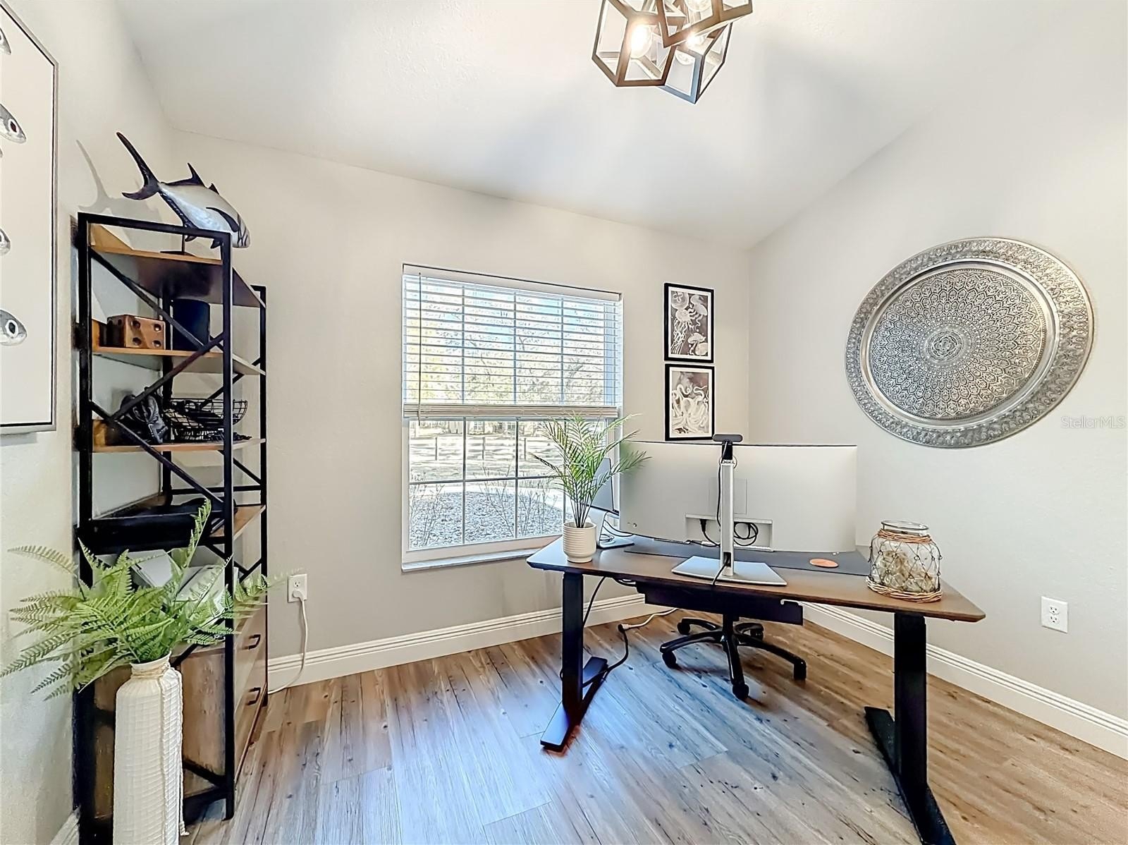 Built in 2022, this pristine home is located in the highly coveted Rolling Hills community (no HOA) - just 8 miles from the World Equestrian Center - on a 1.14-acre lot on a paved road. It has 3-bedrooms plus a dedicated office, 2-bathrooms, and a 3-car garage, equaling over 1,700 sq. ft. of living space in an open-concept layout. The home features solar tubes for an abundance of natural light, a cozy electric fireplace, and a laundry room and spacious pantry equipped with automatic lighting. Durable LVP flooring throughout and upgraded door hardware, mirrors, light fixtures, and custom blinds. A screened lanai and brick patio enable enjoyment of the wooded backyard that is secured with four-board no-climb fencing. A rear gate leads directly from your wooded backyard to a right-of-way walking path, perfect for peaceful strolls. There is a wood shed for extra storage and a dedicated RV pad with both 30 AMP and water hookups.
