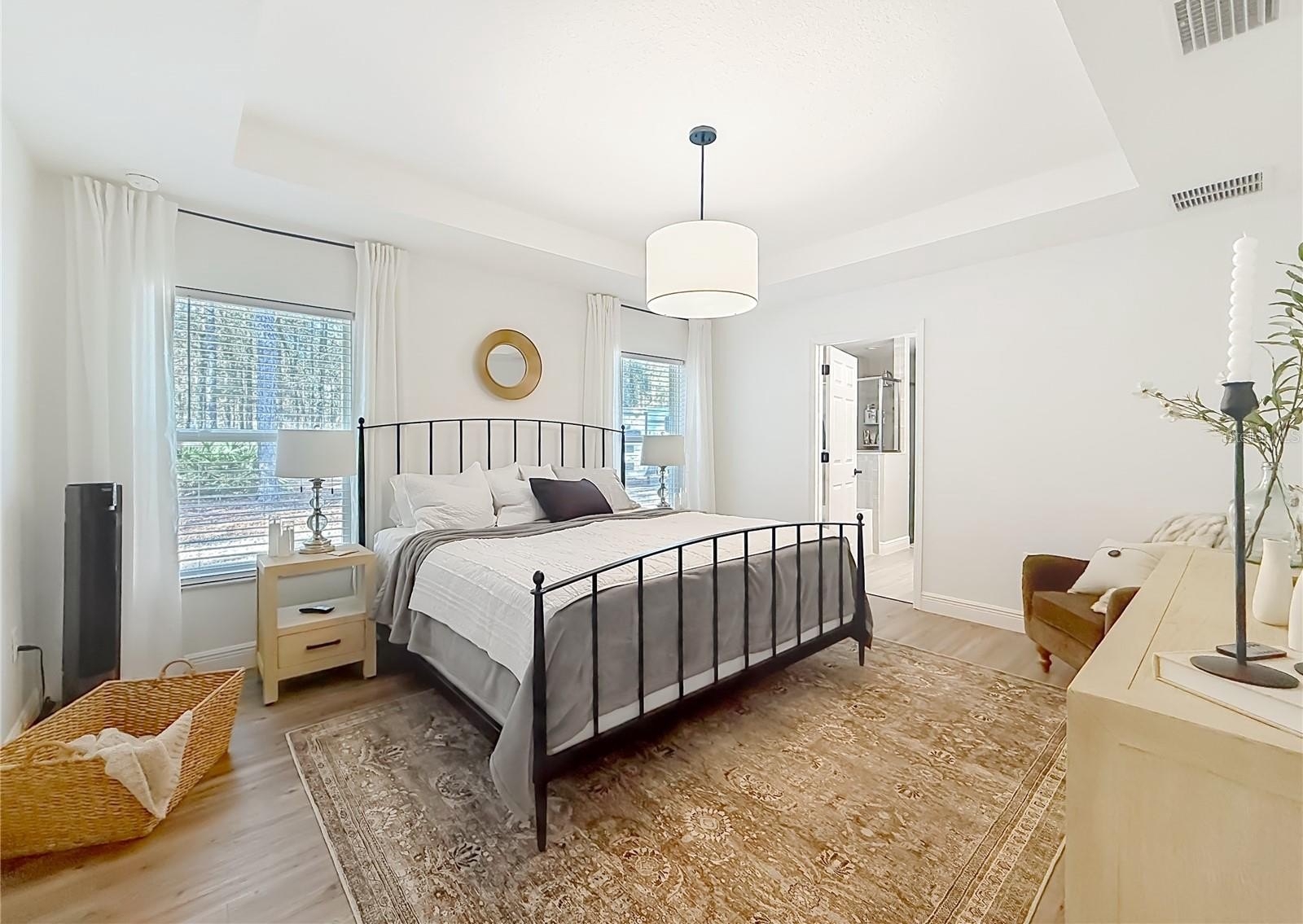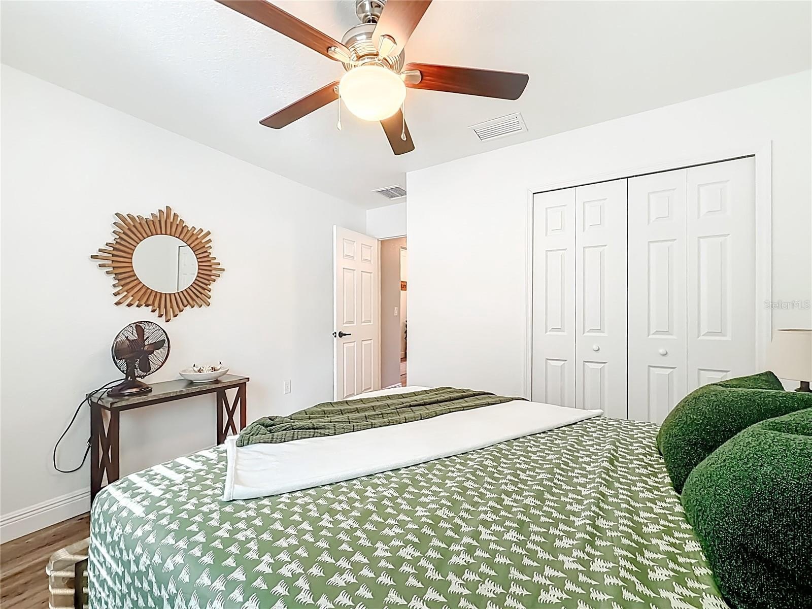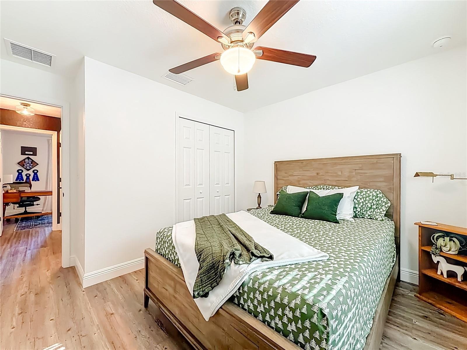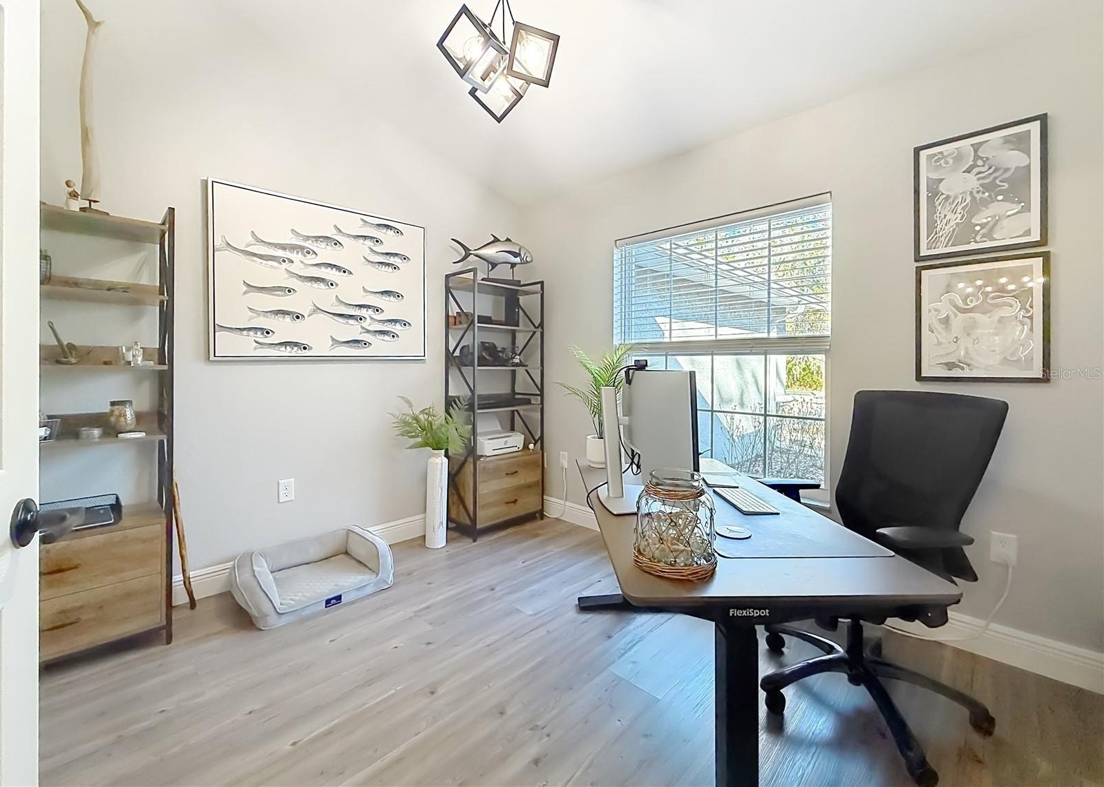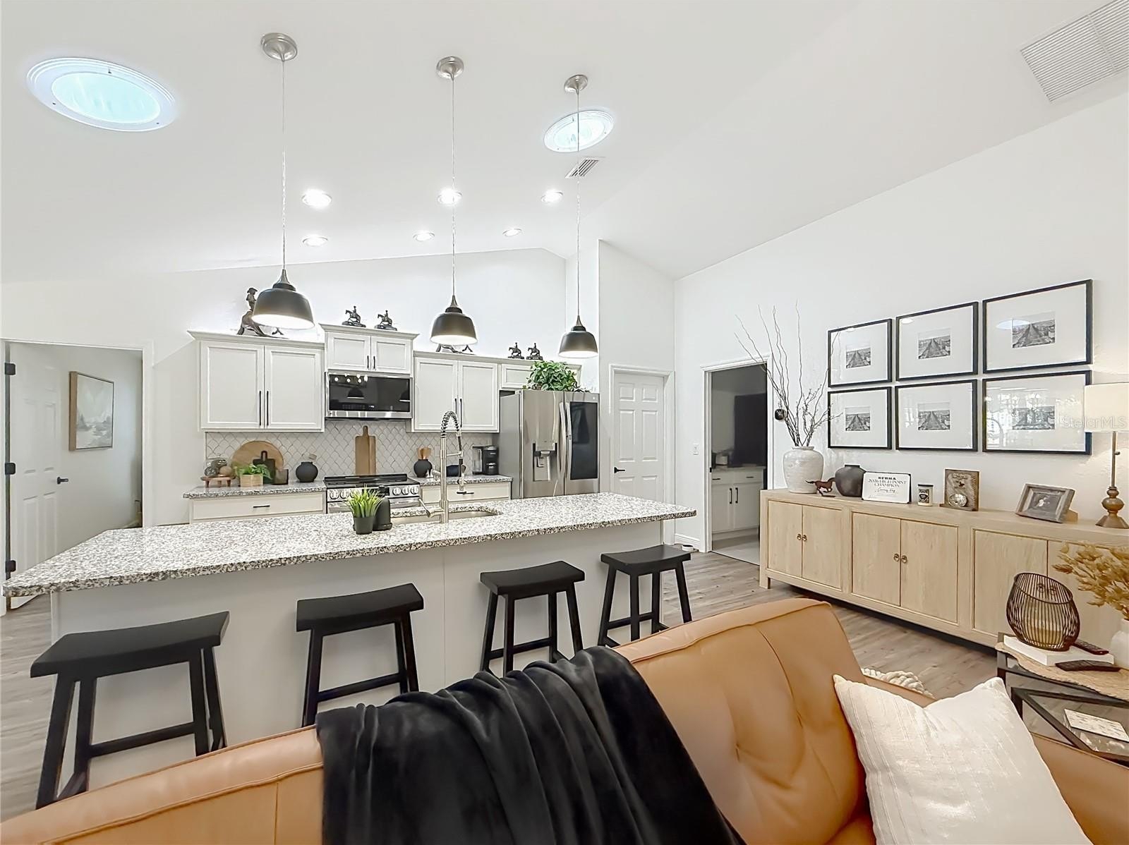 Built in 2022, this pristine home is located in the highly coveted Rolling Hills community (no HOA) - just 8 miles from the World Equestrian Center - on a 1.14-acre lot on a paved road. It has 3-bedrooms plus a dedicated office, 2-bathrooms, and a 3-car garage, equaling over 1,700 sq. ft. of living space in an open-concept layout. The home features solar tubes for an abundance of natural light, a cozy electric fireplace, and a laundry room and spacious pantry equipped with automatic lighting. Durable LVP flooring throughout and upgraded door hardware, mirrors, light fixtures, and custom blinds. A screened lanai and brick patio enable enjoyment of the wooded backyard that is secured with four-board no-climb fencing. A rear gate leads directly from your wooded backyard to a right-of-way walking path, perfect for peaceful strolls. There is a wood shed for extra storage and a dedicated RV pad with both 30 AMP and water hookups.