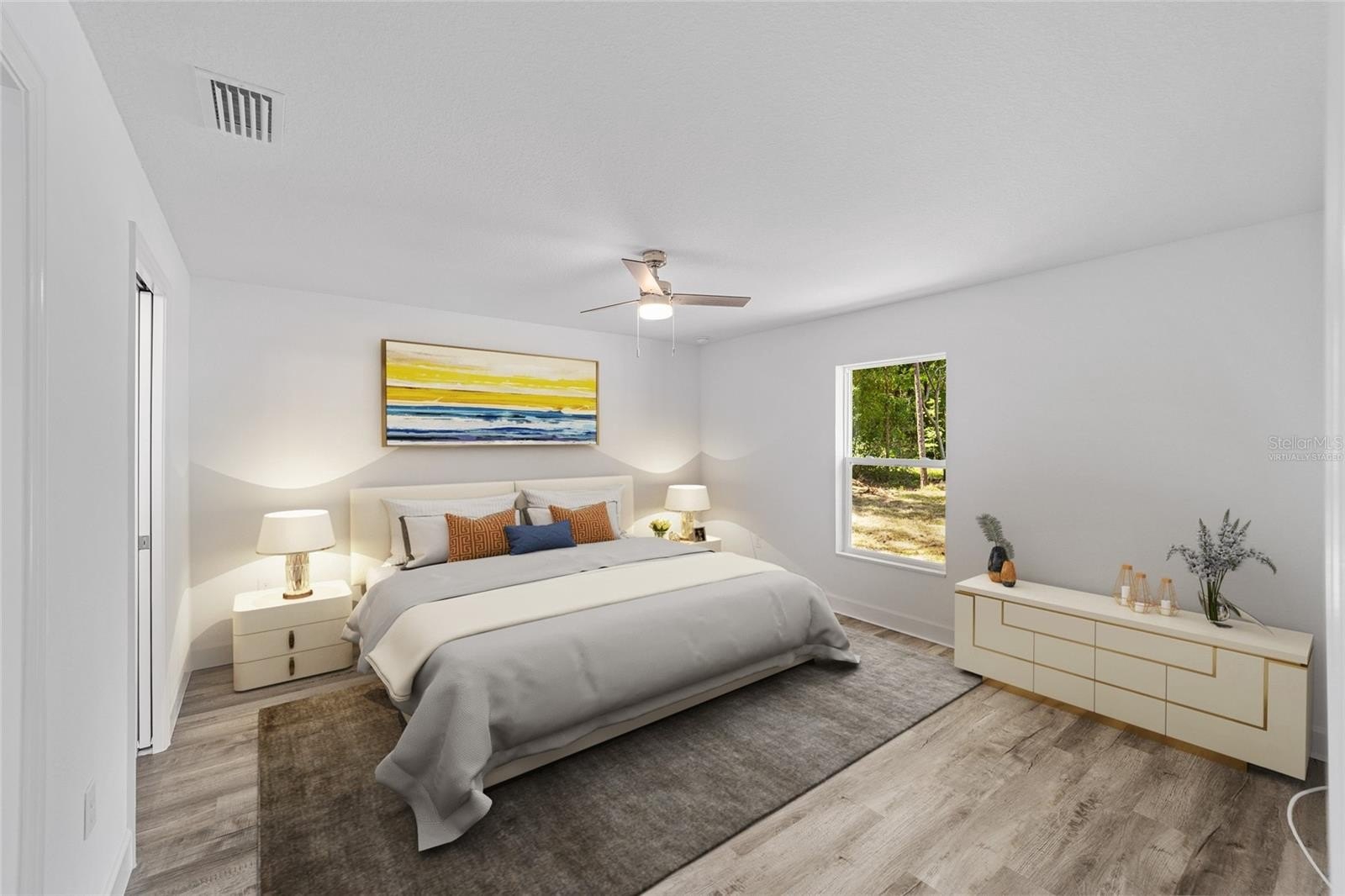 One or more photo(s) has been virtually staged. Under Construction. NOW AVAILABLE in NW Ocala Horse Country, only 5 minutes to WEC! You won’t want to miss this brand-new construction home situated on an oversized lot in the popular neighborhood of Ocala Park Estates (NO HOA). This light and bright home offers 3 bedrooms and 2 full baths, a laundry room, 2-car garage and a covered lanai for outdoor living. Showcasing a modern ranch-style aesthetic with neutral finishes, featuring an open kitchen, shaker-style cabinetry, sleek quartz countertops, large island and a suite of stainless appliances. The open-concept floor plan presents kitchen, dining and great room under a vaulted ceiling offering comfort and style, while the split-plan living ensures privacy. The primary suite features a walk-in closet and a primary bath with double sinks, linen closet and a beautifully tiled walk-in shower. This home checks all the boxes and is ready for a new owner. *Pictures are of a model home, floor plan may be reverse, colors/materials may vary
