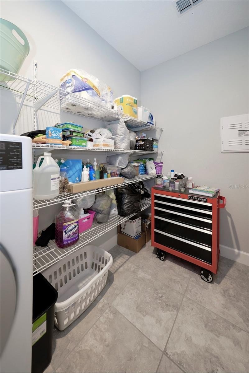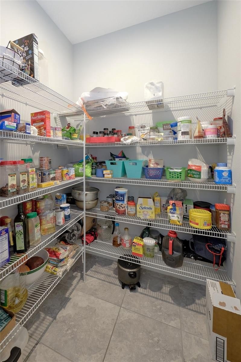 The gourmet kitchen showcases quartz countertops, a separate butler’s pantry, and all appliances included. Tile flooring flows throughout the entire home. Enjoy energy efficiency with fully paid-off solar panels and a whole-house water filtration system. Additional features include a spacious laundry room with storage shelving and a utility sink in the garage.