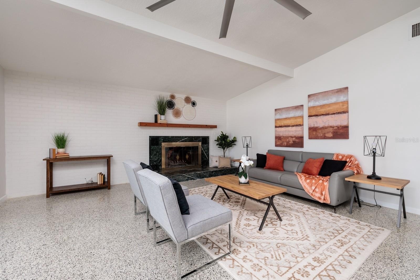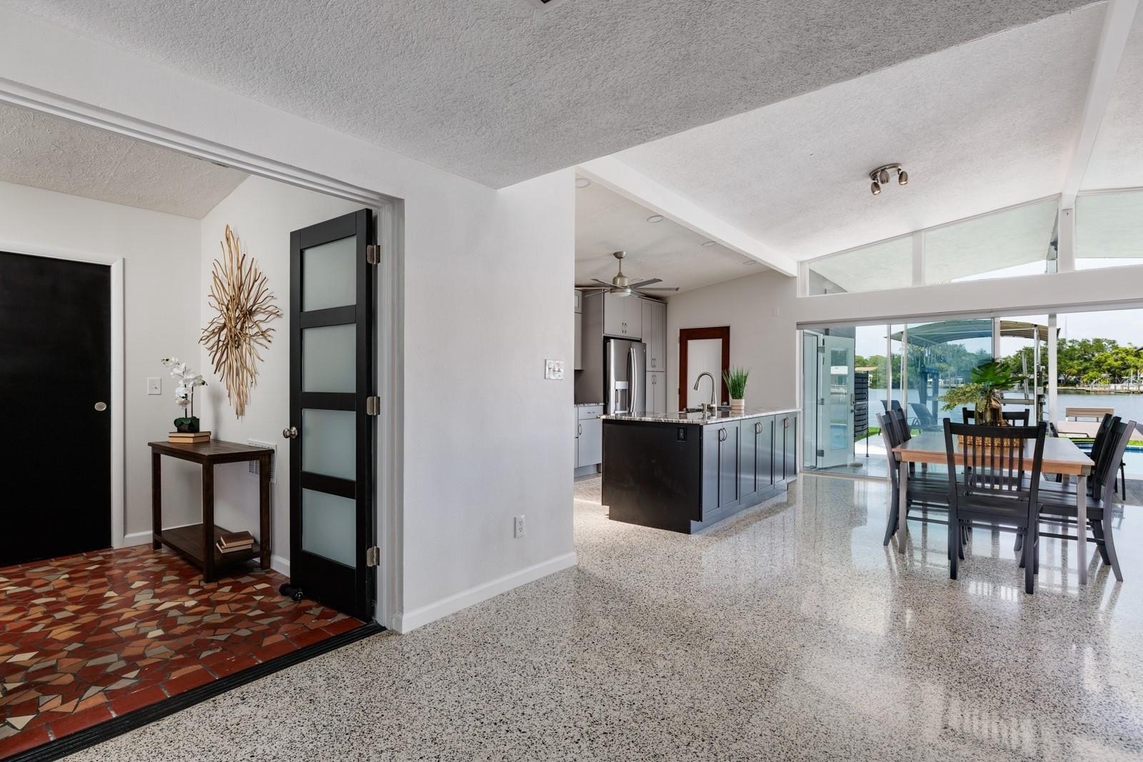Waterfront perfection in the undisputed, world’s best neighborhood, Riviera Bay. Take a breath… because this one is special. From the moment you step through the french doors, your eyes are immediately drawn through the home to the shimmering waters of Sun Lit Cove. Situated on an expansive 11,000+ square foot lot—larger than most in the neighborhood—this mid-century modern beauty blends timeless architecture with thoughtful, high-end updates. With over 2,000 square feet of living space, three spacious bedrooms and two bathrooms. The extra long, one-car garage provides excellent storage and functionality. Inside, gleaming terrazzo floors and vaulted ceilings create light and volume. A full wall of sliding glass doors seamlessly connects indoor and outdoor living, filling the home with natural light while framing spectacular waterfront views.