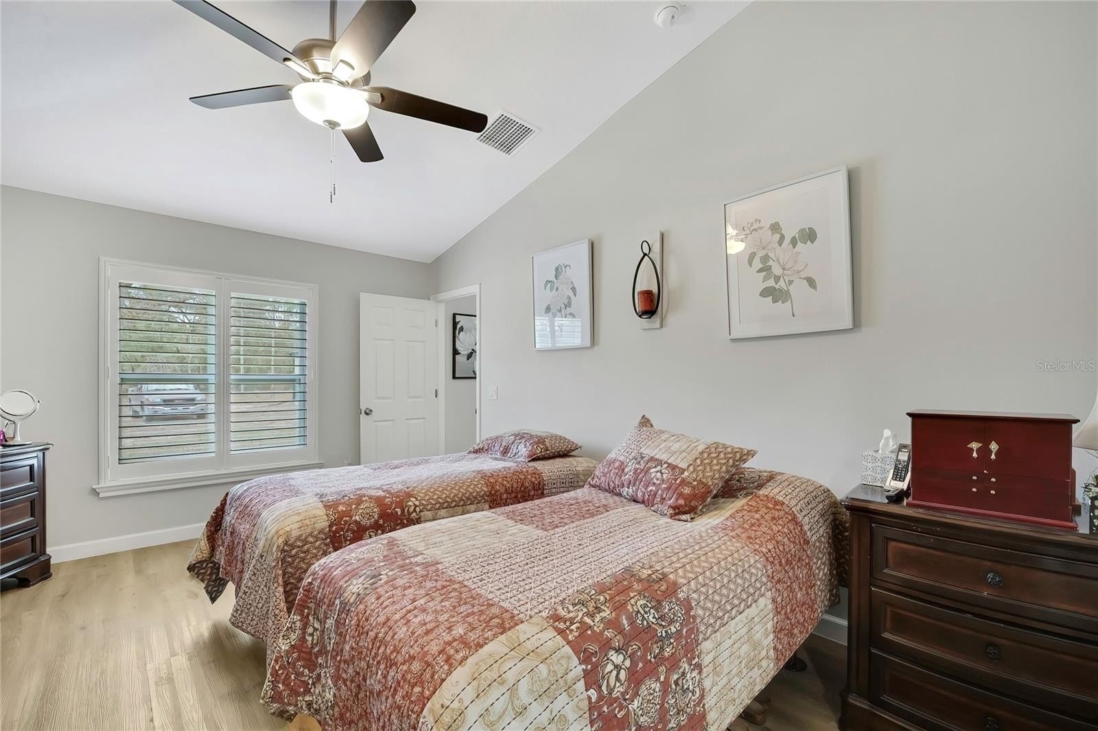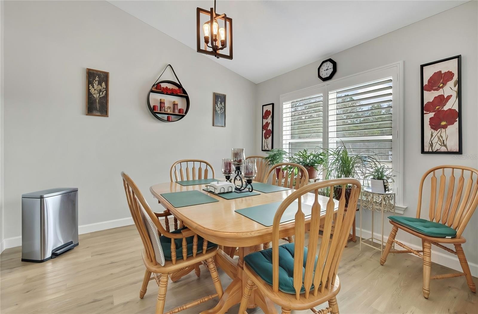 You’ll appreciate the many upgrades throughout, including a screened-in garage, sprinkler system, brand-new flooring, and elegant plantation shutters throught that add both charm and privacy.