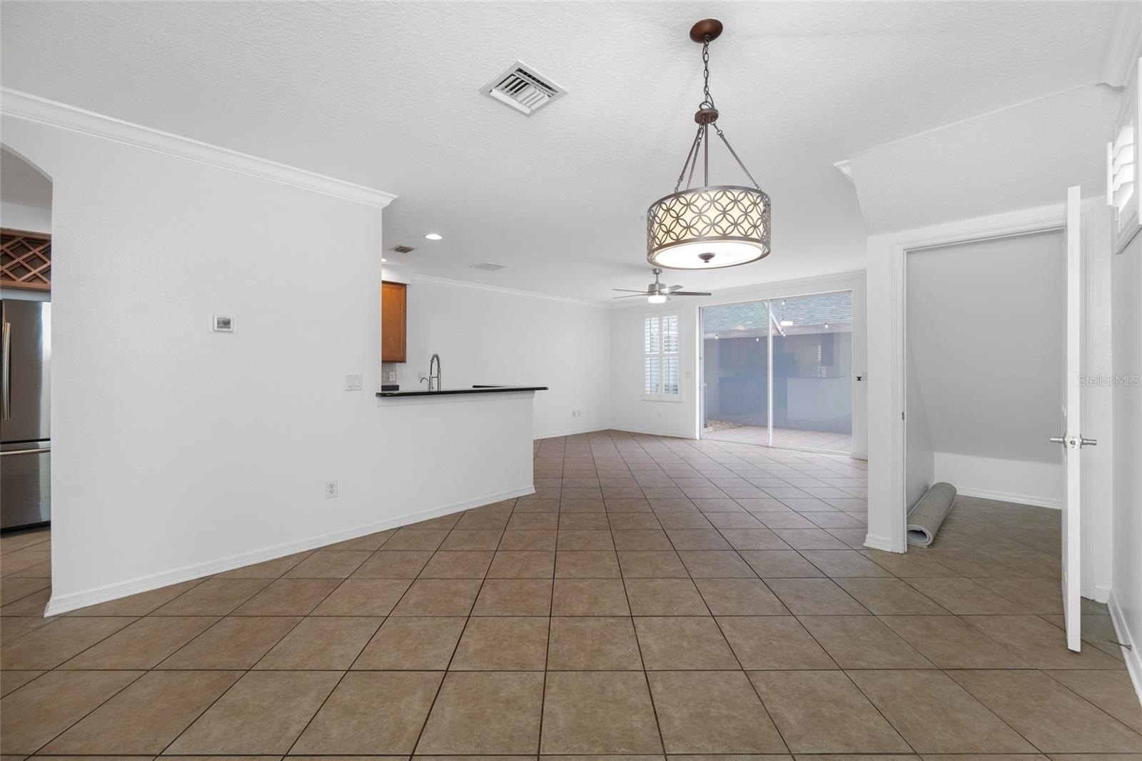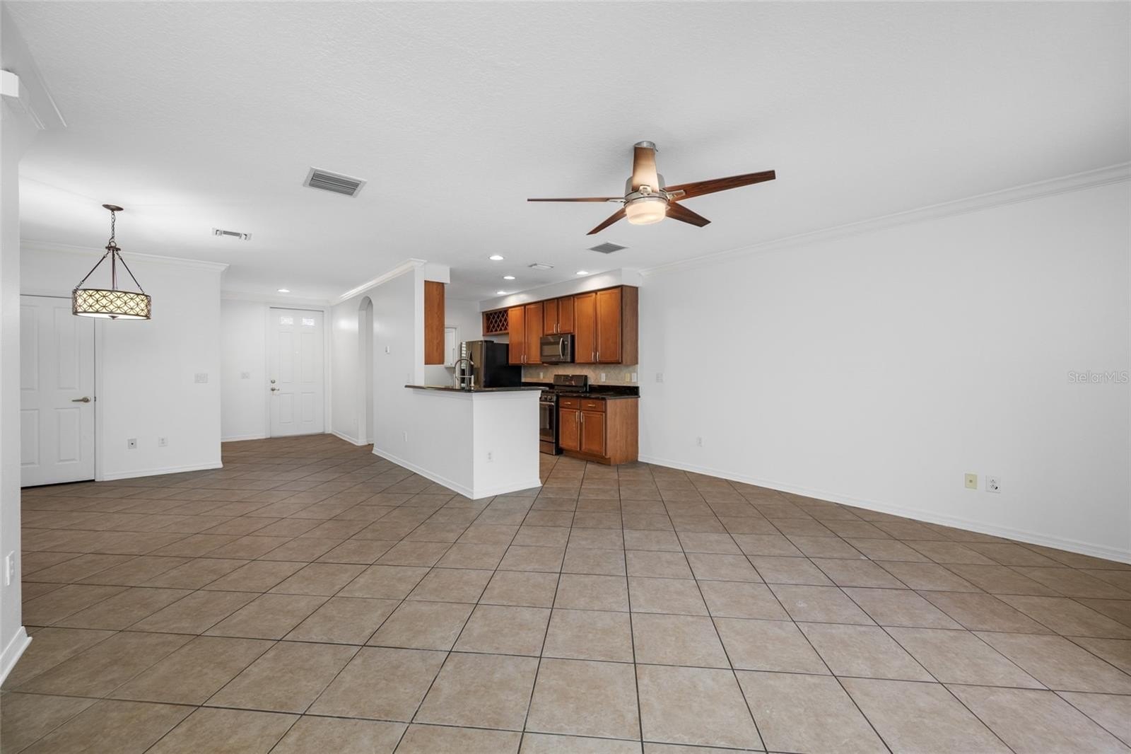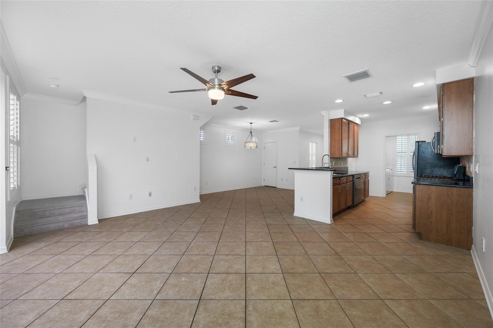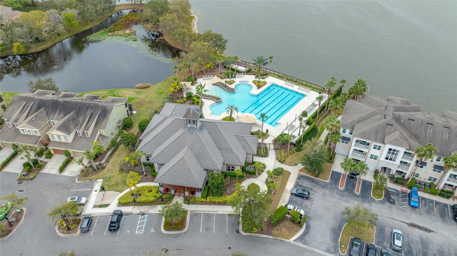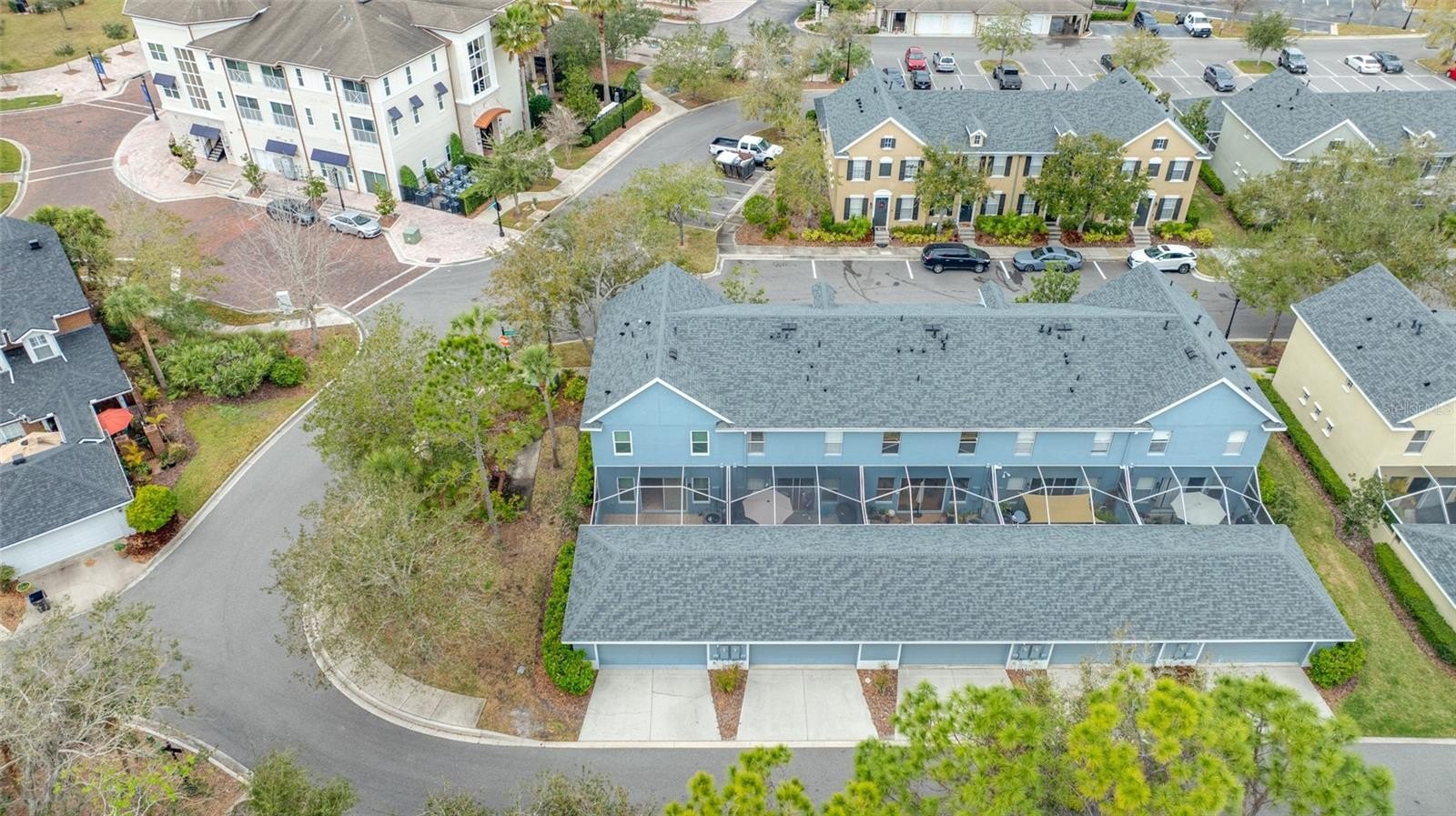 One or more photo(s) has been virtually staged. Welcome home to the Highland Park Neighborhood in Westchase. This lovely townhome has an open floor plan with an open kitchen, dining area and living room plus a half bath and laundry room. The downstairs living space has sliding doors open to a tiled and screen enclosed patio that brings in a ton of light. This is an end unit so there are additional windows for additional sunshine. Many of the windows were recently replaced with impact windows (some of the small accent windows are not impact). Window coverings include blinds and plantation shutters. The 2 car garage in the rear is accessible through the porch or rear access from the driveway. This home was recently painted throughout, has crown molding downstairs. The kitchen features newer Stainless Steel appliances, granite counter tops, a lot of cabinet space and a pantry is in the adjoining dining area. The Laundry room has storage cabinets, a desk and a pocket door. The upstairs has brand new neutral carpet, master has an ensuite bath with dual sinks and a walk in shower. The community is just amazing. Parks, playground, Lakehouse (clubhouse) has a gorgeous pool, fitness room and is located on a large lake, pizza restaurant, wine bar and a hair salon within walking distance. There is a mix of estate homes, townhouses and apartments. Close by is the Bakas Equesttian Park, walking trails and grocery shopping is a short drive away. There is a lot going on here but it is also very peaceful. Come check it out today.