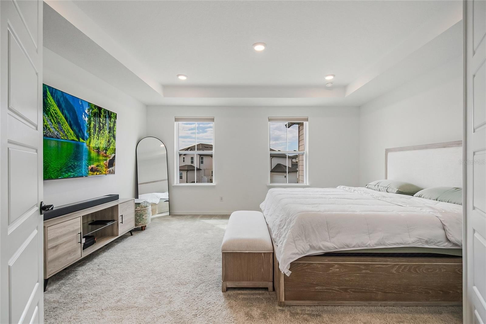 Additional upgrades include R-30 attic insulation, lightning protection, whole-home surge protector, Google Nest thermostats, and a paid-off saltless triple whole-home water filtration system (carbon, softener, UV). Certain furnishings and electronics convey, including dining set, sectional sofa, office furniture, Tempur-Pedic adjustable bed frames, and two wall-mounted Sony TVs (77” OLED and 85” QLED) are included in the sale.