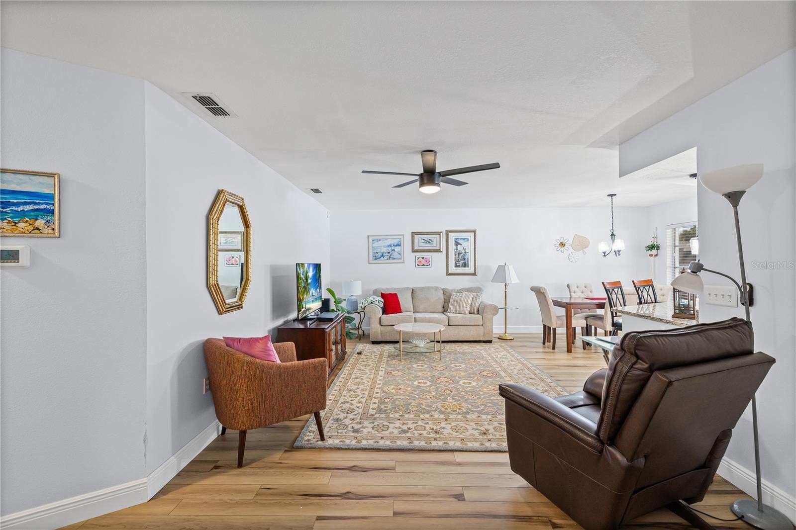 Welcome to this beautifully maintained, completely upgraded home in Park Lake Estates! As you enter the home, you can see the updated floors and baseboards with luxury vinyl plank throughout, natural lighting, upgraded light fixtures/fan and much, much more! The kitchen/dining room combo boasts elegance, as the kitchen has been completely remodeled with newer appliances, cabinets, granite counter tops, and a double oven! The 2 bedroom, 2 bathroom home is a split floor plan with the master including an en-suite bathroom. Both bathrooms have been completely remodeled as well! There is a spacious screened in porch that leads to an oversized back yard that is fenced in for your privacy and pets needs! This home has no HOA, and is NOT in a flood zone, making the opportunities endless for you while also being very affordable! It is also right outside the Trinity area, near restaurants, shopping options, Trinity hospital and an easy route to the Tampa International Airport. Schedule your showing today!!