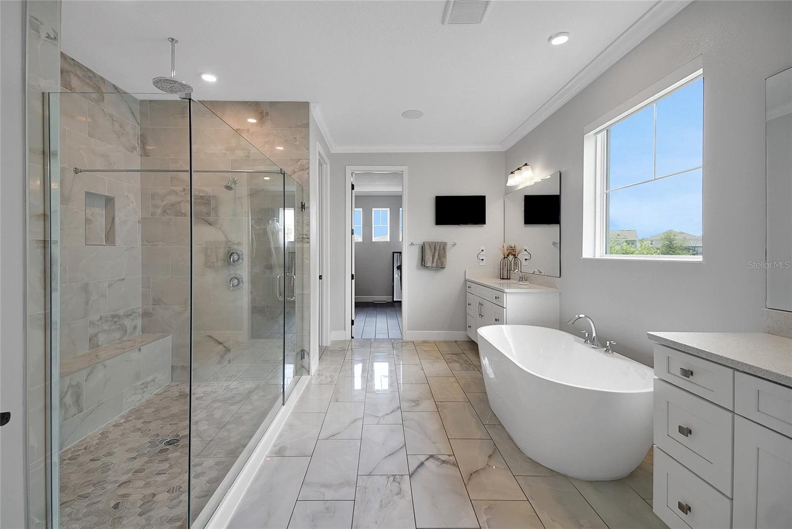 Welcome to this 5-bedroom, 4.5-bath home offering 4,030 sq ft of living space in the gated community of Tilden Place. Upon entry, you’re greeted by views of a grotto waterfall (2025) that conceals a private spa, creating a true backyard retreat. The open layout features granite countertops, a large waterfall-edge island, and glass backsplash in the kitchen, perfect for entertaining. The main floor includes the primary suite and a secondary bedroom with private en suite. Upstairs offers a spacious bonus room and three additional bedrooms, all with walk-in closets, including one with its own en suite. The garage is equipped with an electric EV charger for added convenience. Enjoy a resort-style pool with waterslide, mini lazy river, outdoor kitchen, and pool half bath, all enclosed within a panoramic lanai. With no rear neighbors and conservation views, this home offers added privacy while being conveniently located near Winter Garden shopping, SR 429, and Disney attractions. Schedule your showing today.