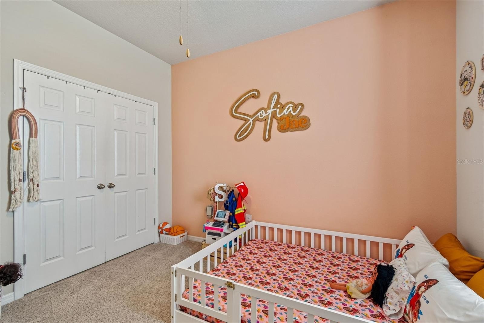 Upon entry, you’re greeted by beautiful wood-look flooring throughout the main living areas, including the office/den with elegant glass-pane French doors. To the left of the foyer are two secondary bedrooms and a full bath, perfect for family or guests.