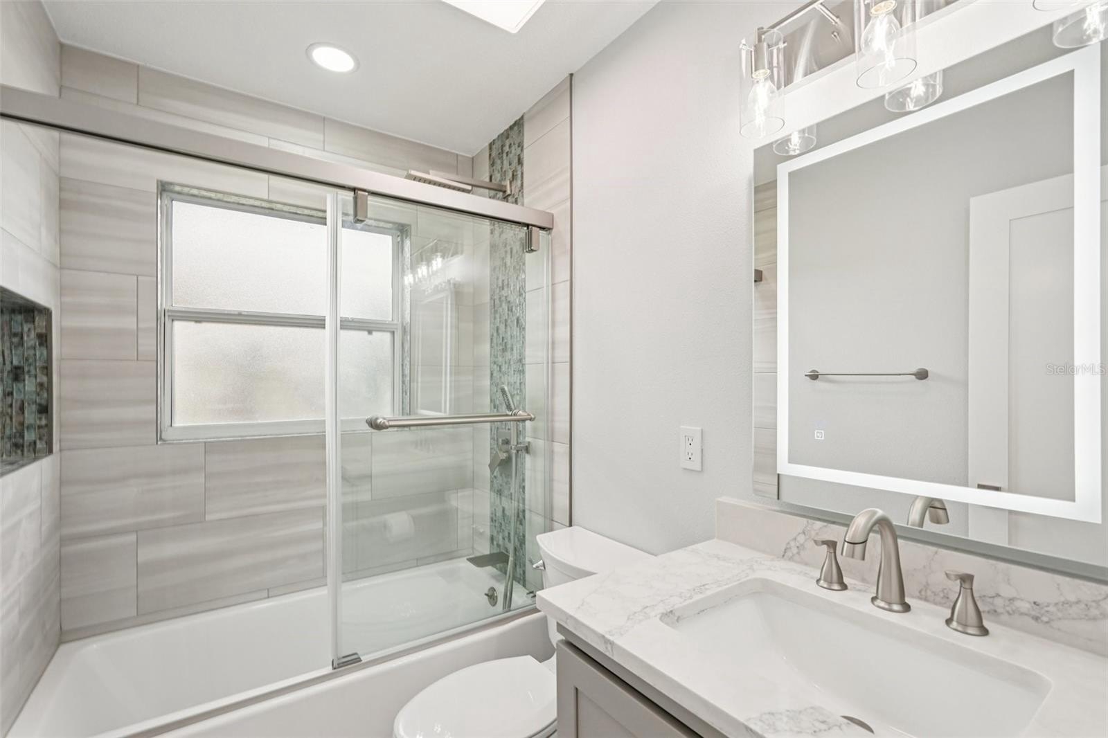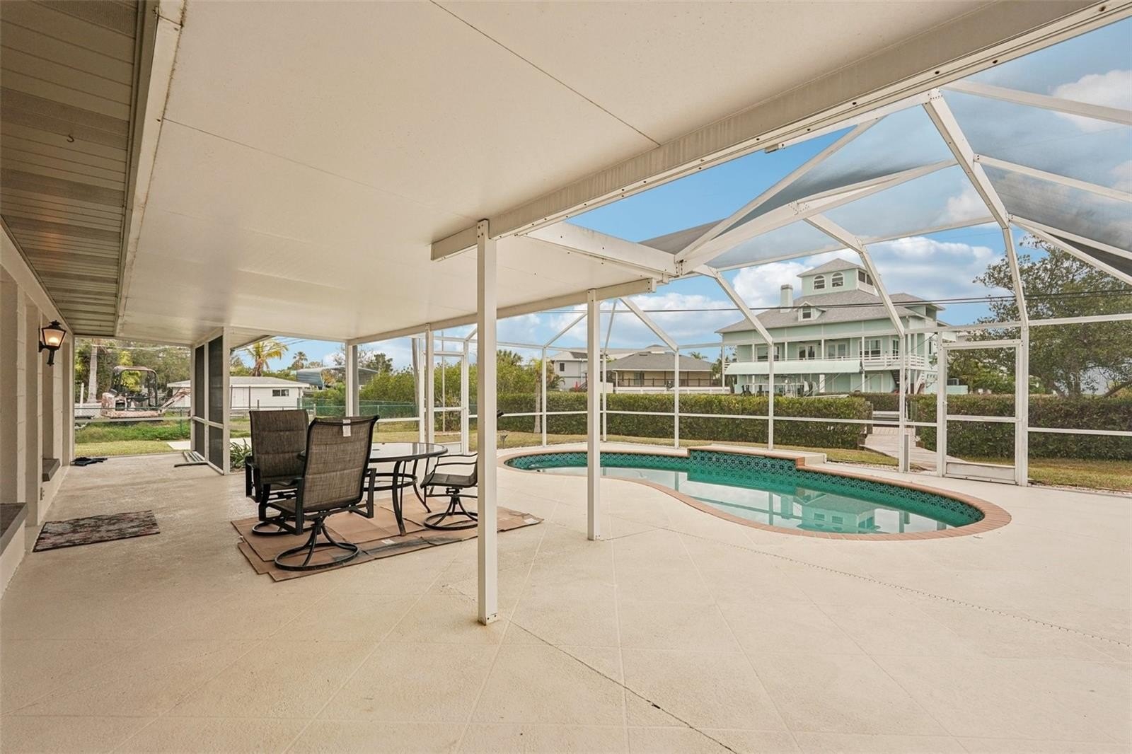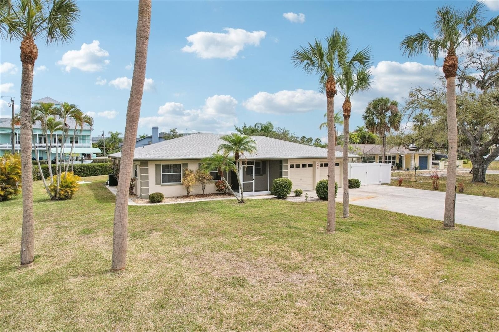 One or more photo(s) has been virtually staged. Experience elevated WATERFRONT living at 342 Shore Drive in Ellenton. This beautifully renovated 3 bedroom, 2 bath residence offers .38 acre, 1,525 square feet of living space, a private dock, a screened heated pool, and seamless indoor-outdoor flow. Inside, the home has been completely updated with premium finishes throughout. The redesigned primary suite features an expanded spa-style bath with a custom walk-in rain shower and improved closet flow. Both bathrooms showcase new vanities, designer illuminated mirrors, modern fixtures, Bluetooth-enabled exhaust fans, and fully rebuilt showers. Luxury LifeProof flooring, PVC baseboards, new interior doors and hardware, updated lighting, switches, and locks enhance the home’s polished aesthetic. The chef-inspired kitchen has been fully transformed with custom cabinetry, new countertops, stainless steel appliances, and an oversized island. Opening the kitchen to the living area creates a bright, open-concept layout accented by recessed lighting, dimmer controls, and an oversized 72-inch ceiling fan. The outdoor living area is exceptional, featuring a fully serviced heated pool with a waterfall, updated equipment, a new pump, chlorinator, and filtration system, all within a new professionally rescreened enclosure. Pool deck pavers and walkways have been professionally cleaned, and exterior upgrades include multiple water spigots, dock water access, a new front entry door, a brand-new water heater, and a serviced HVAC system. A rare opportunity to own a move-in-ready waterfront retreat where modern design meets relaxed coastal living. It's just a short drive to I-75, Ellenton Outlet Mall, UTC, Siesta Key, and Anna Maria Island. Make your appoointment today.