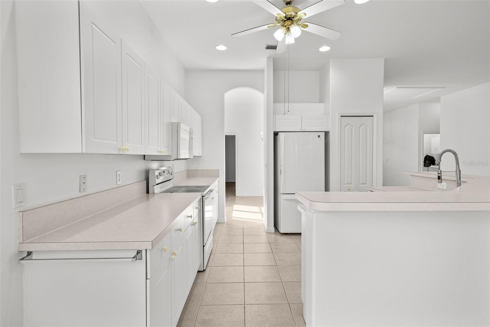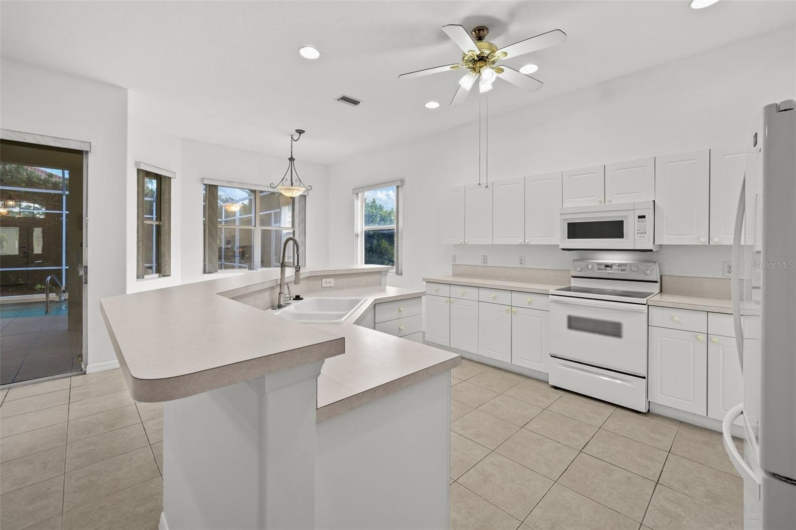 Inside, high ceilings and freshly painted interiors create a bright, open feel, while the functional layout is perfectly suited for comfortable living and future customization. The great room and breakfast nook overlook the pool, offering seamless indoor-outdoor flow, and the formal dining room provides flexibility for entertaining, a home office, or a creative reimagining. The home has been thoughtfully cared for, including a newer AC installed in October 2024, giving buyers confidence as they make the space their own.
