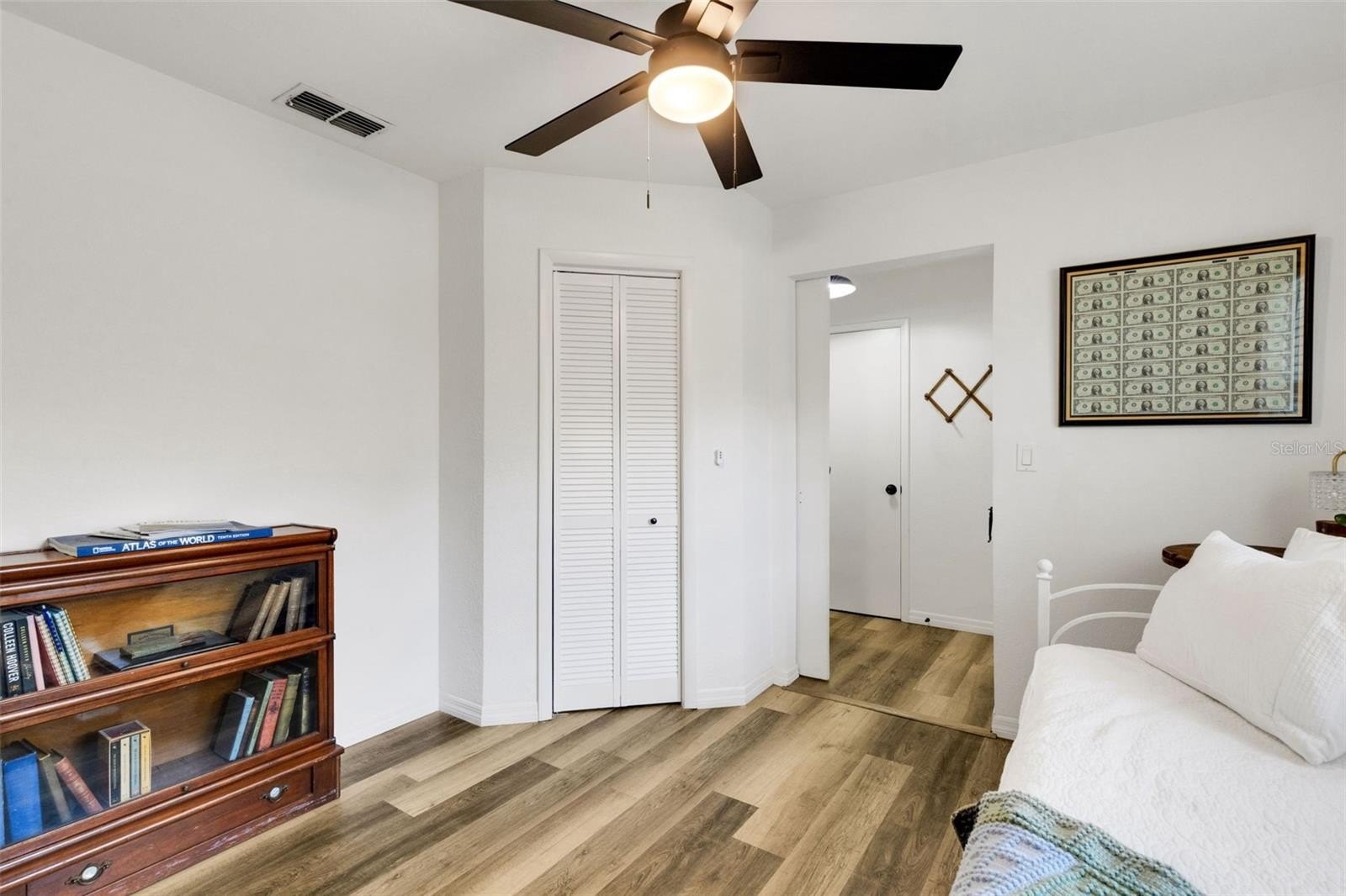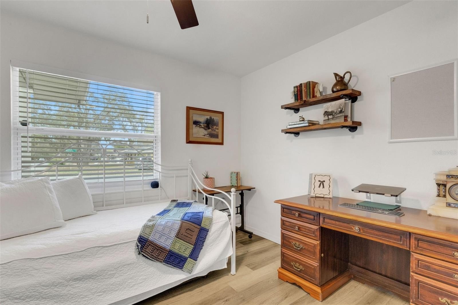 The 12 x 9 laundry room is finished with A/C and cabinet storage and is conveniently located off the garage. The oversized garage offers a dedicated workshop area, shelving, and epoxy-finished flooring, with epoxy also applied to the front porch for a clean, durable finish.