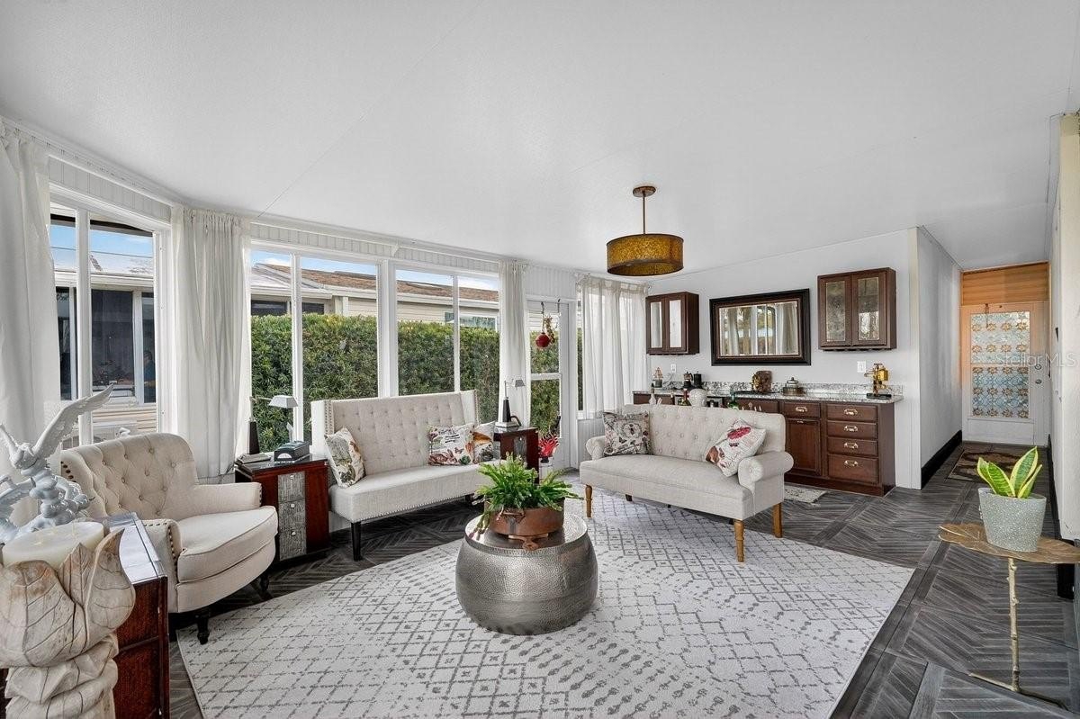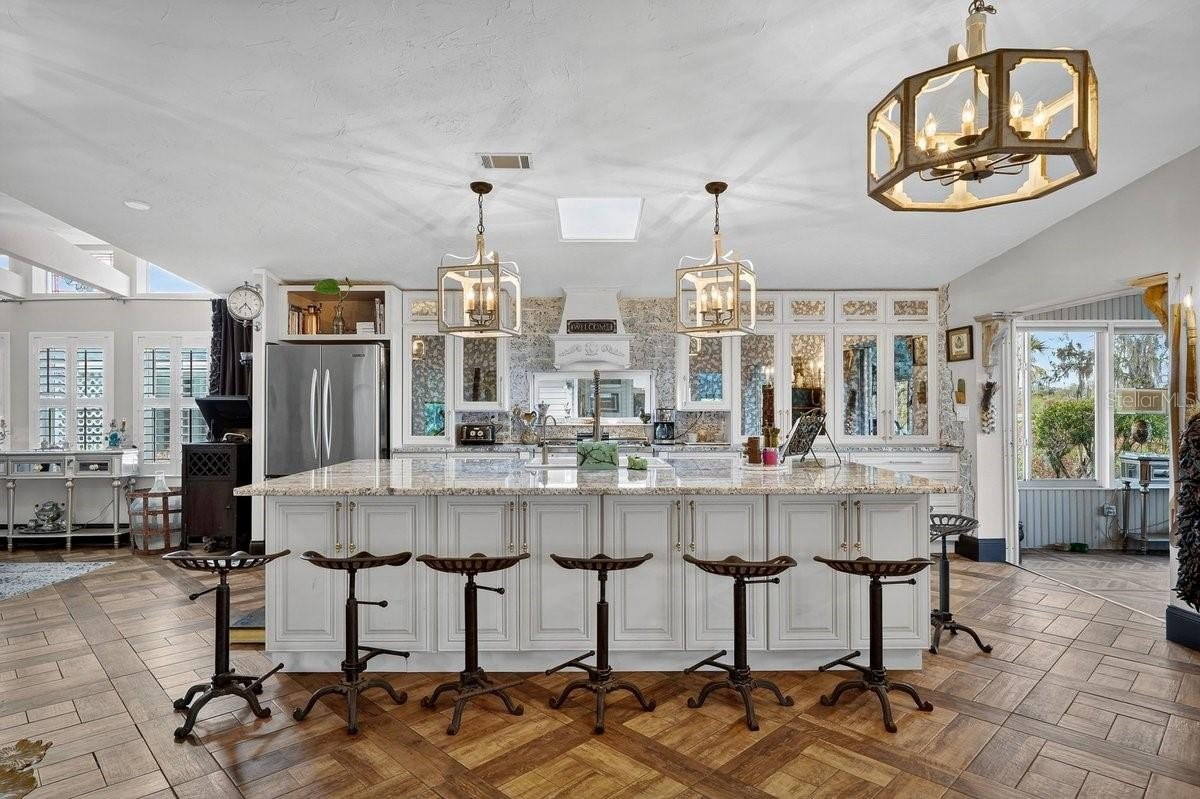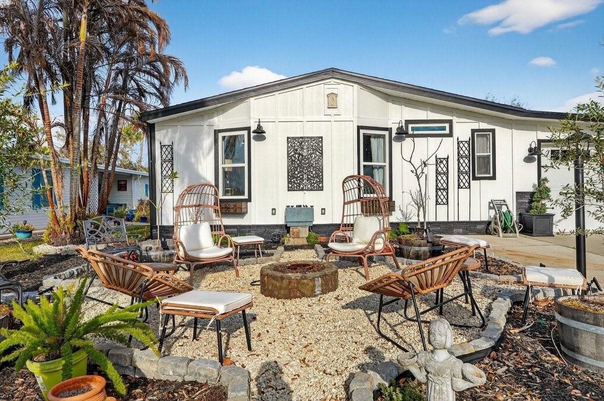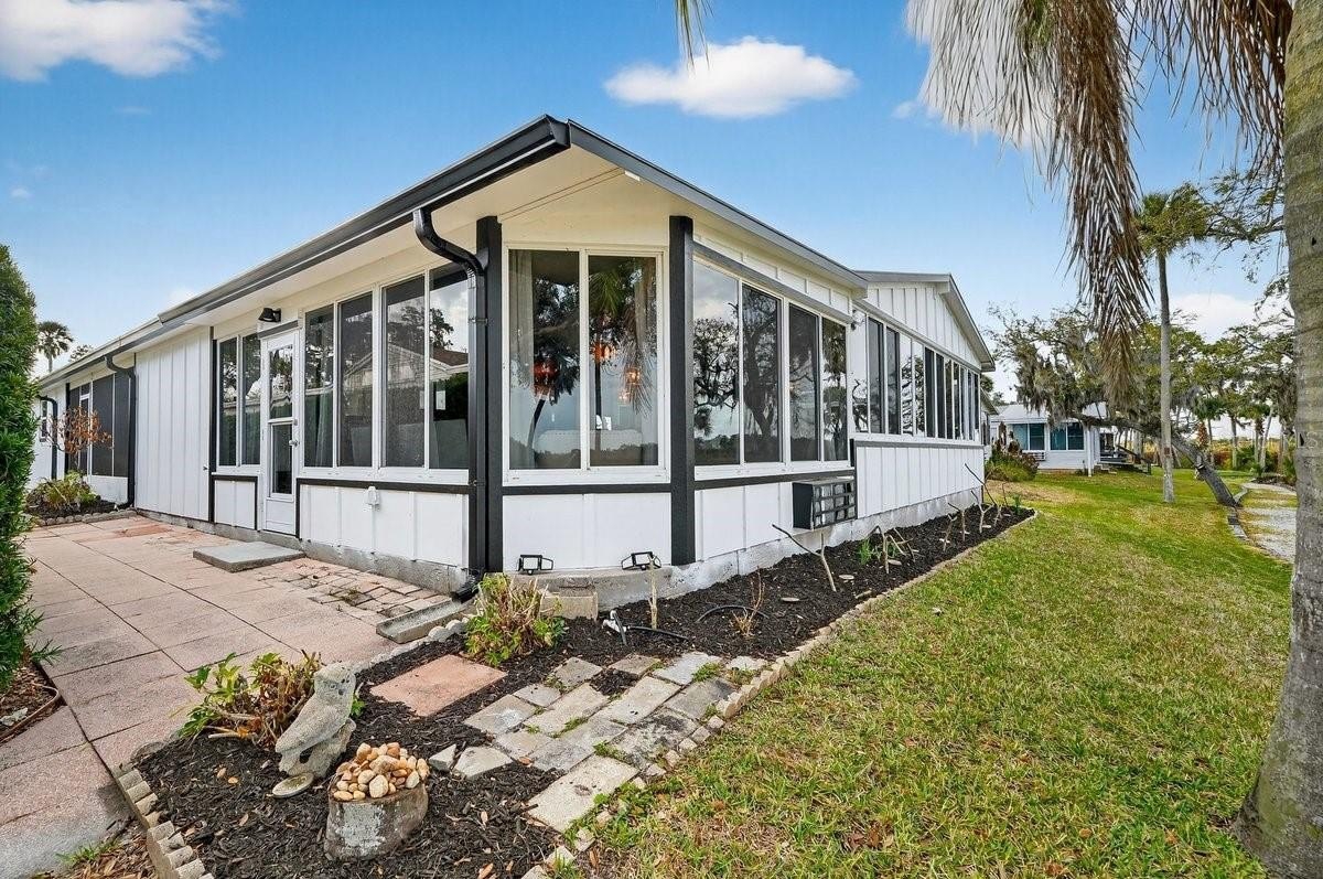 Perfectly positioned along 65 feet of direct Intracoastal Waterway frontage within the highly sought-after, guard-gated community of Edgewater Landing, this extraordinary 3BR/2BA/1-car garage residence redefines what manufactured home living can be. Known as the “condo alternative,” Edgewater Landing is an award-winning active 55+ community in Edgewater, Florida—voted one of the 50 Best Communities to Retire to—with a nearly $5M recreation center (currently under construction) recognized as #1 in America by the National Home Builders Association. This one-of-a-kind home has been completely transformed inside and out with elevated finishes rarely found at this price point, beginning with its striking board-and-batten Hardie-board exterior and fresh paint. Set along the riverfront walking path, the charming front garden and seating area invite friendly conversations with neighbors strolling by, while a screened lanai breezeway connects the garage, storage room, and main entry. Step inside and sweeping river views immediately command attention, showcased from nearly every room. The open living room features a fireplace and flows into a dining room with transom windows and beamed ceiling, leading to a showstopping chef’s kitchen with solid wood cabinetry, granite counters, full-height backsplash, stainless refrigerator and dishwasher, and an impressive $8,000 six-burner Italian gas range with custom hood that complements the cabinetry. A massive island with sink and abundant storage anchors the space, while two wide openings lead to an expansive, nearly 40-foot air-conditioned Florida room complete with wet bar, wood cabinets, granite counters, and wine cooler—perfect for entertaining as yachts glide past. Down the hall are two guest bedrooms, a well-appointed hall bath, and a spacious indoor laundry room with exterior access, while the gracious primary suite offers double closets and distinctive barn doors—collected from world travels—opening to a spa-like bath with clawfoot tub, separate shower, enclosed water closet, and dual vanities. Throughout the home, intricate tile flooring, designer lighting, and abundant natural light elevate the ambiance. Beyond the home, residents enjoy 24-hour security, clubhouse, heated pool, fitness center, dance floor, catering kitchen, outdoor BBQ and picnic areas, bocce ball, shuffleboard, tennis and pickleball courts, miles of scenic walking trails, two fishing docks, private boat ramp, canoe and kayak racks, plus RV and boat storage—an unparalleled waterfront lifestyle that truly embodies the Florida dream. ALL INFORMATION IS ASSUMED ACCURATE BUT NOT GUARANTEED. ALL MEASUREMENTS ARE APPROXIMATE. BUYERS AND THEIR AGENTS SHALL VERIFY ANY INFORMATION DEEMED IMPORTANT TO THEM.