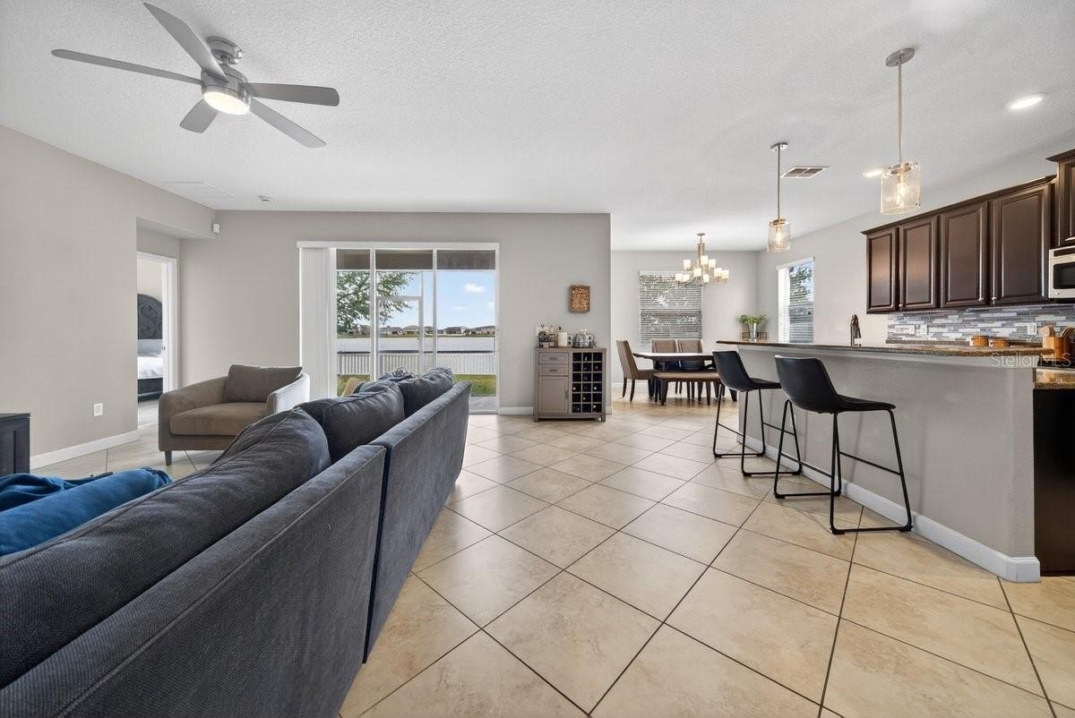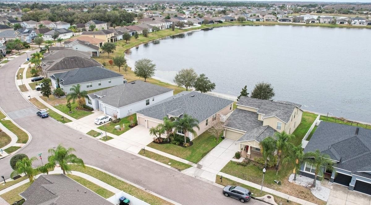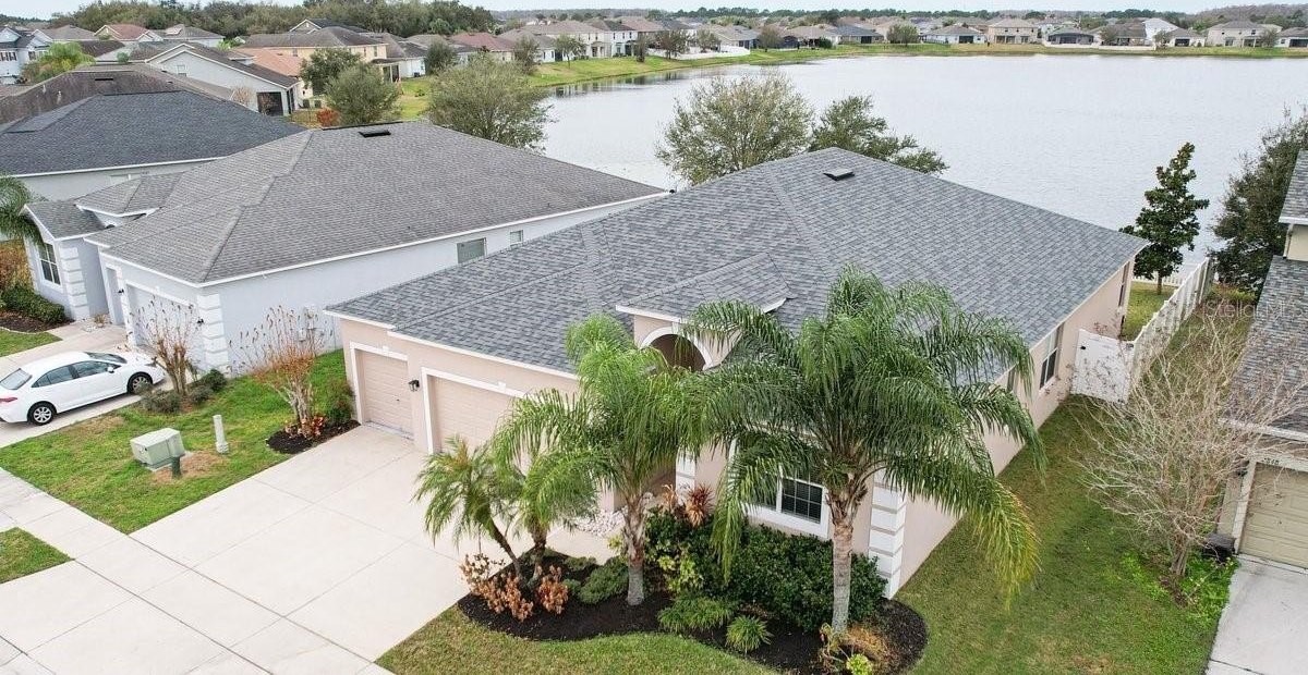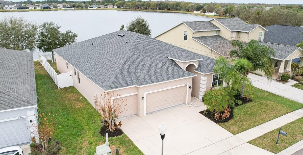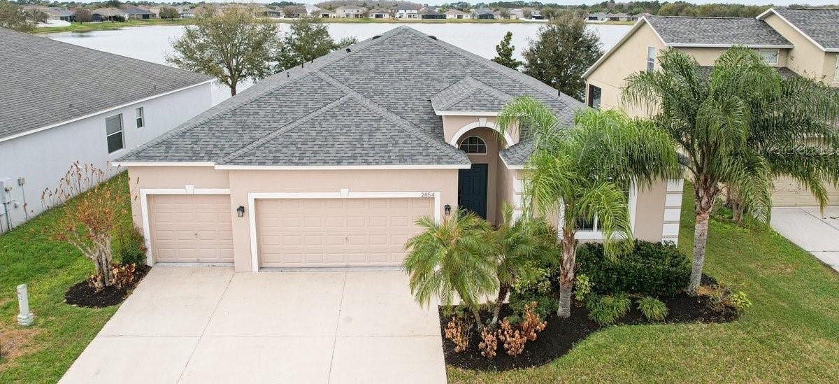 Set on a peaceful street, this expansive 4-bedroom, 3-bathroom home covers over 2,600 square feet and includes a rare 3-car garage. Recent upgrades, such as a new roof (2024) and vinyl privacy fence, ensure peace of mind and security. With luxury vinyl plank (LVP) flooring in each bedroom, the home is completely carpet-free, adding to its modern appeal. The open floor plan is crafted to highlight stunning lake views from numerous points, particularly the primary suite, which provides a serene escape with its private en-suite bathroom. Outdoor enthusiasts will appreciate the screened-in back porch that offers picturesque views of the water and a generous fenced yard. The interior features a kitchen ideal for entertaining, while also having additional living spaces to cater to many walks of life. Situated community with resort-style amenities like a clubhouse, pool, and tennis courts, alongside the convenience of cable TV and high-speed internet included in the HOA fee. Ideally located near Lake Nona’s Medical City, Orlando International Airport, and SR 417, this home is zoned for top-rated schools.