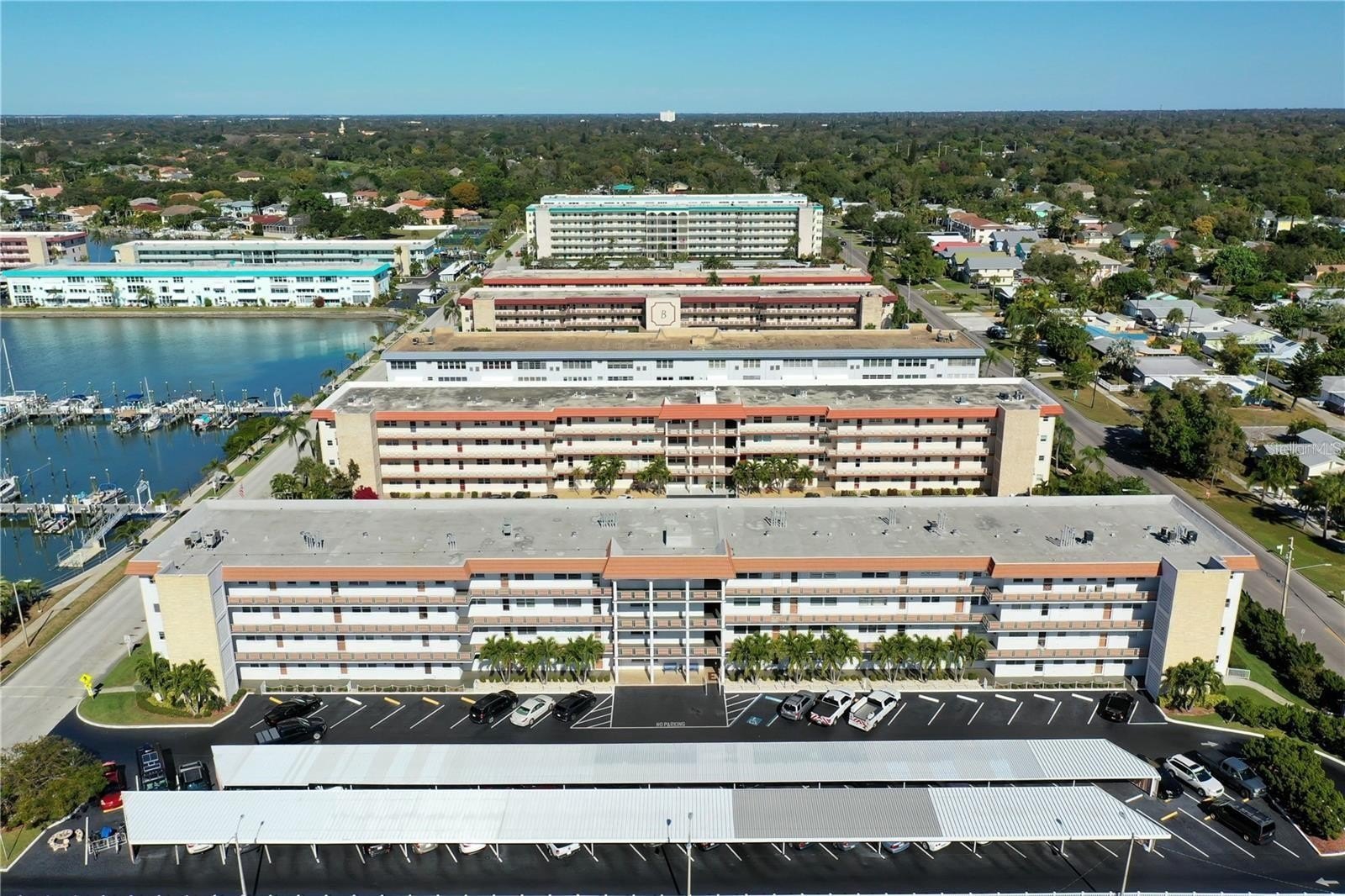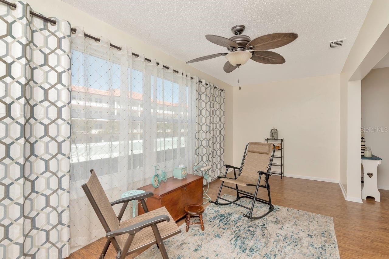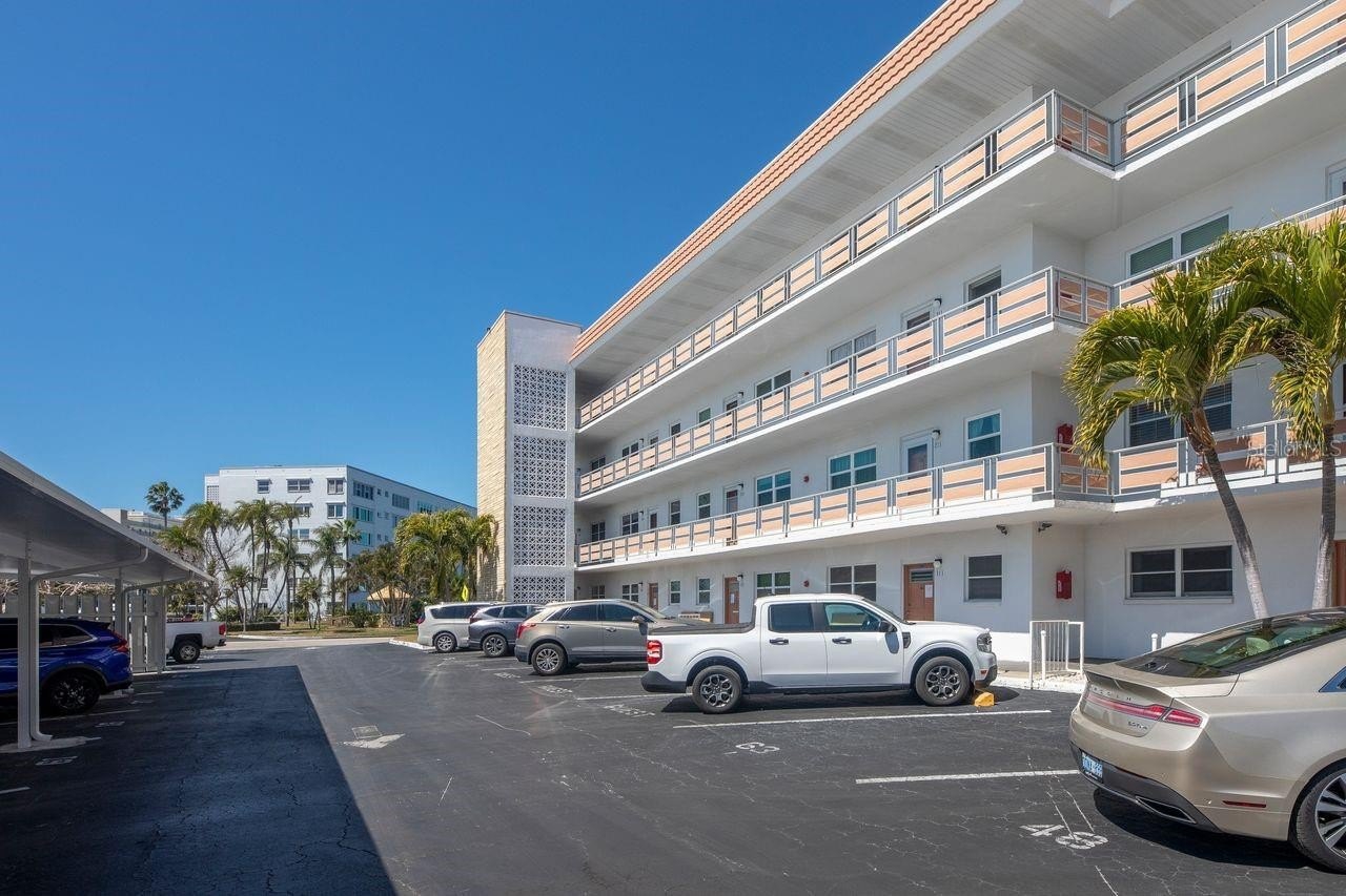 Paradise awaits in this fabulous 2nd Floor unit in the wonderful 55+ community of Town Shores of Gulfport. This 1/1 Deluxe unit with new carport, is spacious and has been beautifully updated with newer impact windows, storm door, updated HVAC, updated kitchen and bath, and it shows beautifully! The Florida room is bright and sunny, with a view of Town Shores Docks and Boca Ciega Bay. Town Shores is a great community and offers 4 swimming pools, boat docks, pickle ball/tennis, shuffleboard, kayak storage, BBQ grills, fitness room, clubhouse with a library, pool tables, and lots of fun weekly activities. The Eton building is well-cared for, and has completed the Milestone Inspection and SIRS, and is steps away from great restaurants, entertainment and all the things Gulfport.This unit is move-in ready, just pack up your belongings, and set out to enjoy the Historic Waterfront District.