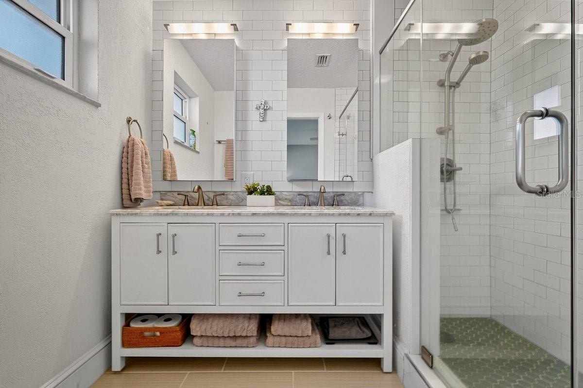 Fabulous John Anderson offering...this 4 bedroom home with nearly 3200 sq ft sits on an oversized corner lot with intracoastal views just two blocks to the beach. Look at everything else offered in this beloved neighborhood and save this one for last as nothing compares in this price range. This home offers outstanding value due to the recent high-quality renovation where no detail was overlooked. Enter the home to find a bright, open floor plan where the dining area, living room, and kitchen subtly come together in an atmosphere ideal for entertaining or relaxing. The new kitchen, featuring quartz tops over custom wood cabinetry is outfitted with top-of-the-line appliances centered around the sprawling island workspace. An adjacent dining room measures 13x10 and takes in river views from a gracious picture window. From the great room you have the option to open the sliding glass door and step out onto the lovely screened lanai with stunning original slate floor. This covered lanai serves the owners as an outdoor living room that welcomes the soft morning sun and enjoys complete privacy with views of the expansive lawn. Four sizable bedrooms, including the owner's suite with a walk-in closet and a lovely coastal contemporary bath. Large indoor utility room with a half bath, laundry facility and large mudroom. The photos are lovely, however this property must be viewed in person to experience the warm synergy along with the quality of the fixtures and appointments. The sturdy block home has received a long list of major renovations in recent years, including a new roof, a complete electrical re-wire, new impact windows and doors, new HVAC system including ducts and insulation, and complete replumbing. This is a fully automated smart home with sophisticated conveniences designed for efficiency. The property shows in immaculate condition both inside and out.