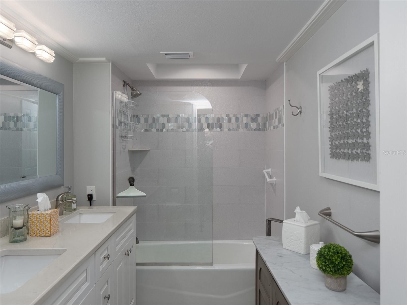 This Turnkey Furnished newly renovated two-bedroom, two-bath ground-floor condominium offers a thoughtfully designed open-concept layout with a desirable split-bedroom floor plan, ensuring privacy and comfort for both owners and guests. The spacious primary suite features dual oversized closets, a tastefully updated en-suite bath, and private sliding glass doors that open to the expansive screened lanai.