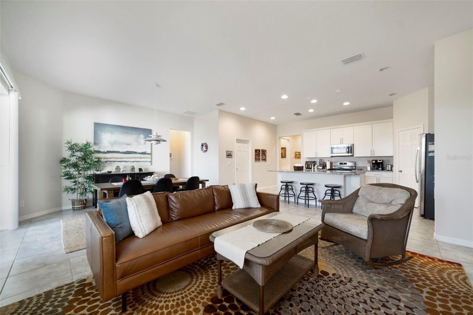 Welcome to REFINED FLORIDA LIVING in the desirable Hilltop Reserve community of Apopka! This immaculate 4-bedroom, 3-full-bath single-story home offers approximately 2,000 SQUARE FEET of beautifully finished living space and FEELS JUST LIKE NEW — built only six years ago and METICULOUSLY MAINTAINED. From the moment you arrive, you’ll appreciate the pride of ownership and thoughtful upgrades, including rain gutters ADDED IN 2021. Step inside to a bright, OPEN-CONCEPT LAYOUT where the Kitchen, Dining, and Living areas flow seamlessly together, creating the perfect setting for both everyday living and entertaining. CERAMIC TILE FLOORING throughout the main living areas adds durability and elegance, while natural light fills the space. At the heart of the home is the STUNNING Kitchen, designed to impress with crisp white cabinetry, GRANITE COUNTERTOPS, a spacious closet pantry, stainless steel appliances, and a gas stove. The LARGE CENTER ISLAND with breakfast bar provides ample prep space and casual seating, making it the ideal gathering spot for family and guests alike. Sliding glass doors lead to the covered rear porch, NEWLY SCREENED (2025), creating a comfortable outdoor retreat that overlooks an EXPANSIVE BACKYARD with plenty of room to play, garden, or design your own backyard oasis. All 4 Bedrooms are comfortably carpeted, offering warmth and privacy. The spacious Primary Suite serves as a relaxing escape, complete with a SPACIOUS WALK-IN CLOSET and a well-appointed EN SUITE BATH featuring dual sinks, a glass-enclosed step-in shower, linen closet, and private water closet. Three additional generous bedrooms provide flexible living options. One bedroom enjoys its own PRIVATE EN SUITE BATH — perfect for guests or multigenerational living — while the remaining two bedrooms share a third full bathroom. A DEDICATED LAUNDRY ROOM adds convenience and functionality to complete the home. Hilltop Reserve offers a LOW HOA and inviting community amenities including a SPARKLING POOL, park, playground, and open green spaces perfect for evening strolls. The location is exceptional — JUST MINUTES FROM Wekiwa Springs State Park, Kelly Park/Rock Springs, Northwest Recreation Complex, and numerous golf courses. Enjoy shopping and dining in NEARBY Apopka, Mount Dora, and Lake Mary. Commuters will appreciate CONVENIENT ACCESS to SR-429 (Western Beltway), US-441, and the Florida Turnpike, providing smooth connections to Orlando, downtown attractions, and area beaches. This MOVE-IN READY home has it all— modern finishes, thoughtful design, and an unbeatable location, offering the perfect combination of comfort, style, and convenience. Schedule your showing today!