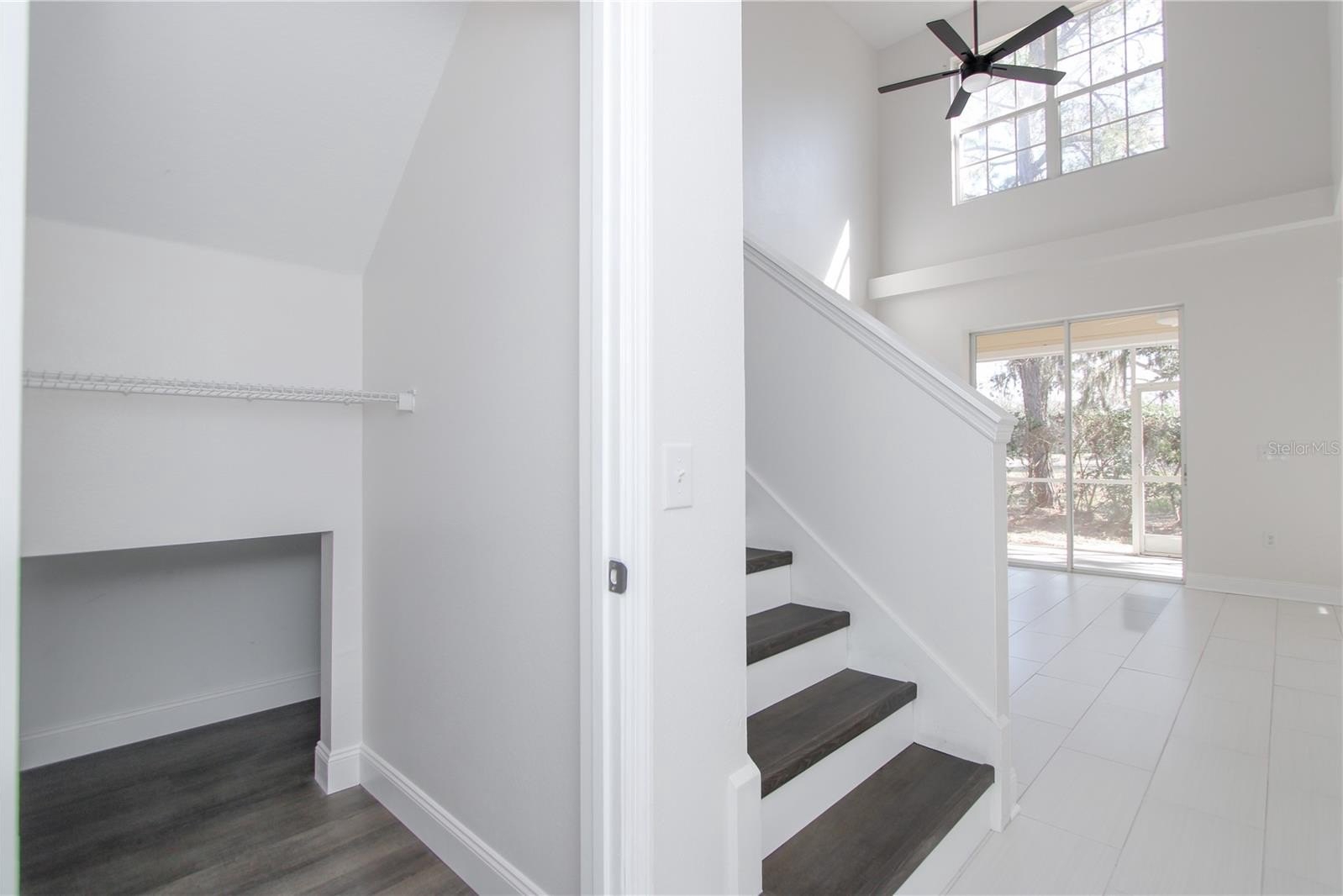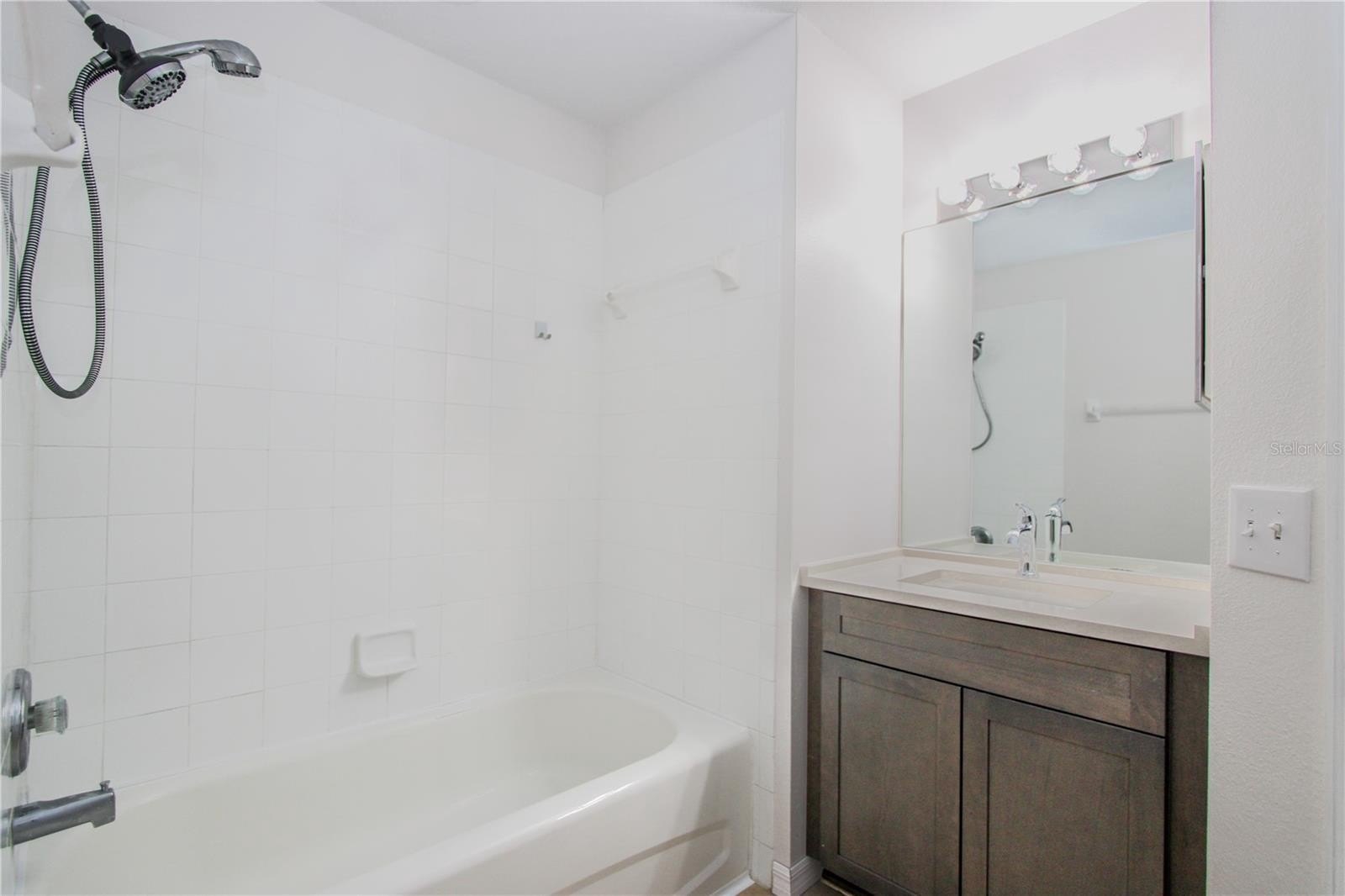 One or more photo(s) has been virtually staged. This ideally situated 3 bed, 2.5 bath, 2 car condo with a townhouse feel is a true commuters dream...located just three miles from I-75 and four miles from Lakewood Ranch's thriving Main Street, you just can't beat the value! Step inside to experience the many statement worthy features and updates - including new flooring throughout, sleek black light fixtures downstairs, upgraded quartz vanities in every bathroom, and sky high two story living room just to name a few! The real show stopper is the kitchen, where a modern flare collides with timeless classics, bringing you 42" shaker cabinetry with crown molding in a stunning shade of navy, which is offset by white quarts countertops with contrasting black fixtures and matching stainless appliances. At the top of the stairs you'll first find the secondary bedroom and enclosed loft, creating bedroom three, followed by the primary suite at the end of the hall, featuring a walk-in closet, vaulted ceilings, and large en-suite bath with garden tub, step-in shower, and water closet. The laundry closet is also located upstairs, so no dreadful trips lugging full hampers up and down the stairs! It won't take long to start daydreaming of the peaceful mornings and relaxing evenings you'll be spending on your private, screened-in rear porch with no neighbors in site. Don't just take our word for it - come see this breathtaking beauty for yourself...you're not going to want this one slipping through your fingers!