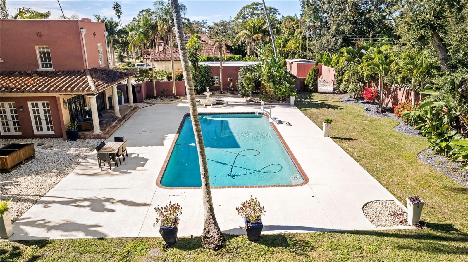 Situated on an expansive 28,000-square-foot lot in the highly desirable Palma Sola Park neighborhood, the property is surrounded by mature landscaping that enhances its sense of privacy. A large mango tree anchors the yard while a well-fed irrigation system installed approximately six years ago helps keep the grounds vibrant and green. Outdoor living is equally inviting with a covered back porch, generous pool deck for entertaining, and a mosquito misting system that allows you to enjoy the outdoor areas more comfortably year-round. A backyard storage shed offers additional space for tools, lawn equipment, or even the potential for a small workshop. Recent improvements add further value, including a new roof installed over the mother-in-law suite, along with the newly added pool heater. Located in one of the area's most charming historic neighborhoods, this property is believed to be among the earliest homes built in Palma Sola Park, offering a rare chance to own a piece of local history while enjoying generous indoor living space and a private outdoor retreat.