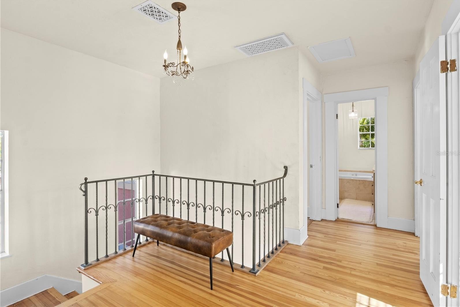 A 1927 charmer, this Spanish Mediterranean home blends historic character with comfortable, functional living. Rich with original charm, the residence features beautifully restored wood flooring that showcases the craftsmanship of the era while creating warmth throughout the home. The main level offers multiple gathering spaces including a formal living room, formal dining room, and an inviting family room, making the layout ideal for both entertaining and everyday living. Upstairs you’ll find three bedrooms and two full bathrooms arranged in a thoughtful split configuration. On the west side of the home, one bedroom enjoys abundant natural light and a built-in closet, with a nearby full bathroom featuring tile flooring, a single vanity, and a walk-in shower. Two additional bedrooms sit on the east side of the upper level and share a spacious full bath highlighted by a jetted garden tub, perfect for relaxing at the end of the day.