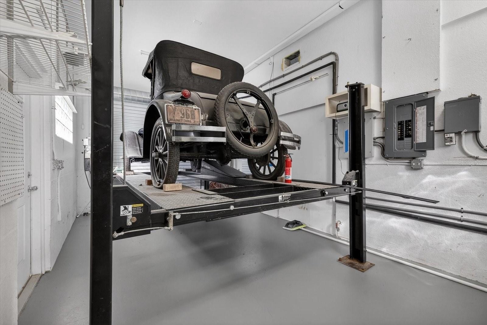 Car enthusiasts will appreciate the dream garage — outfitted with commercial-grade garage doors and a built-in car lift, offering both functionality and showpiece appeal.nAdditional features include hurricane shutters, awnings, and thoughtful upgrades at every turn.