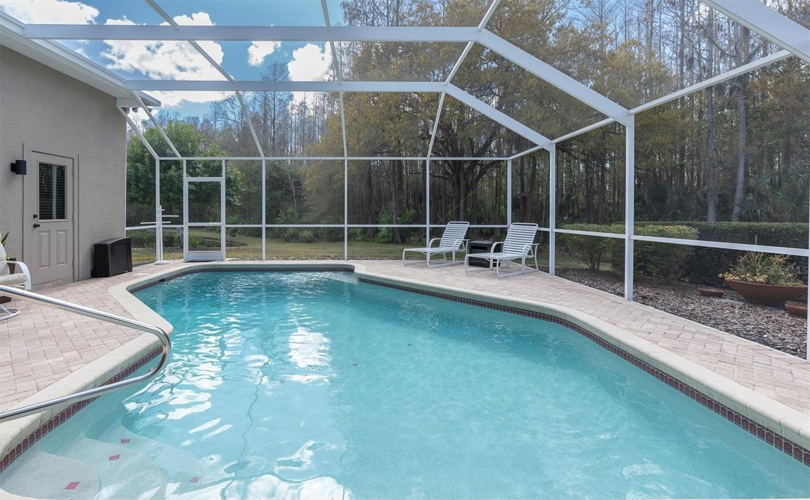 FLORIDA LIVING AT IT'S FINEST - PRIVACY - CONSERVATION LOT - POOL HOME. Located in the highly sought after Trinity Oaks community, one of the most highly sought after communities in Trinity this home offers privacy and tranquility. Sitting on a .28 acre PRIVATE LOT, you will not want to miss seeing this move in ready, well maintained upgraded pride of ownership home. Fall in love as you step inside the set of double hurricane rated front doors to the inviting foyer that features vista views of the sparkling pool and conservation. This highly sought after tri-split floor plan built by Samuelsen Builders features 4 bedrooms, 3 baths, 3 car garage, 2419 square feet with a formal living, dining room and family room with sliding glass doors that open to the SPARKLING SOLAR HEATED POOL, SPACIOUS COVERED LANAI AND OUTDOOR LIVING SPACE. The formal living spaces are in the front of the home and flow nicely into the kitchen and family room perfect for entertaining family and friends. The gourmet kitchen is the heart of the home and features corian countertops, stainless steel appliances, tile backsplash, closet pantry, lots of cabinet space, built-in desk, ceramic tile floors, breakfast bar and separate kitchen nook. The owner's suite is spacious and features 2 walk-in closets, sliding glass doors to the pool and a private bath with dual corian countertop vanities, 2 large mirrored medicine cabinets, garden jetted tub, remodeled walk-in shower with frameless glass finish and built-in niche. Just off the family room are 2 secondary bedrooms and a bath that can be privatized with a conveniently located pocket door. The 4th bedroom and pool bath are located at the back of the home and can also be sectioned off by a pocket door. Additional features of the home included plantation shutters, transom windows, high ceilings, newer roof (2023), water heater (2019), HVAC (2018), hurricane rated windows and hurricane shutters, spacious laundry room including washer and dryer and laundry sink, water softener, spacious paver pool deck, newer pool pump, gutters, added outdoor patio slab with privacy fence for grilling, privacy screen on 3rd bay garage and water softener. LOW ANNUAL HOA DUES, NO CDD FEES in this community. This HIGHLY SOUGHT AFTER TRINITY OAKS COMMUNITY HAS A PLAYGROUND & WALKABILITY to TOP RATED SCHOOLS. It is near golf courses, Starkey/Suncoast/Pinellas Trails, JW GILLS YMCA, shopping, restaurants, medical facilities, the TRINITY COMMUNITY PARK WITH DOG PARKS and PICKLEBALL COURTS and a NICE WALKING TRAIL AROUND A BEAUTIFUL POND all with easy access to Tampa International Airport, St. Pete/Clearwater International Airport, cultural centers, beaches and so much more.