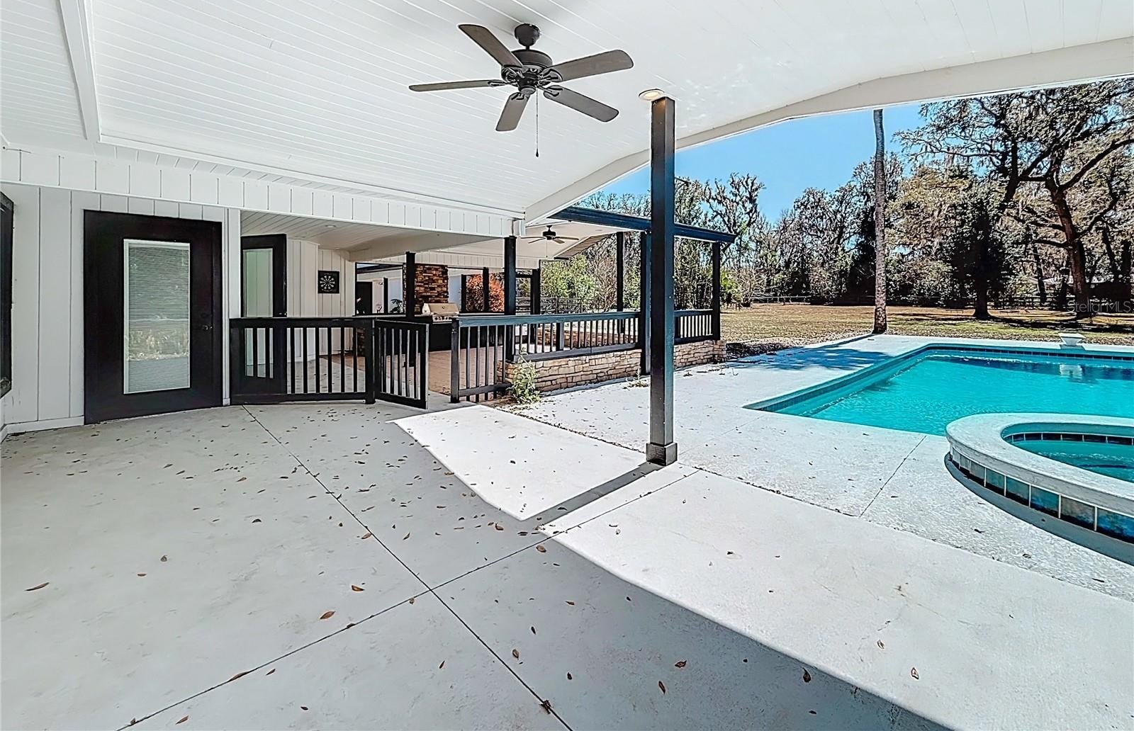 The outdoor space stands out with a large pool, spa, covered patio, fire pit pad, and a spacious yard ideal for gatherings or future additions. Mature landscaping frames the property and provides a private estate feel.