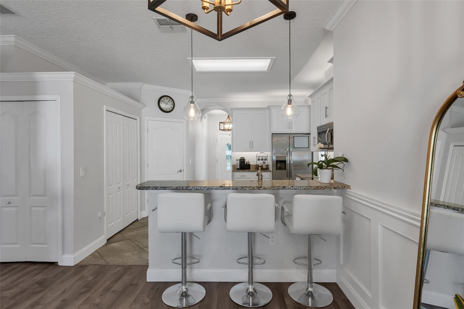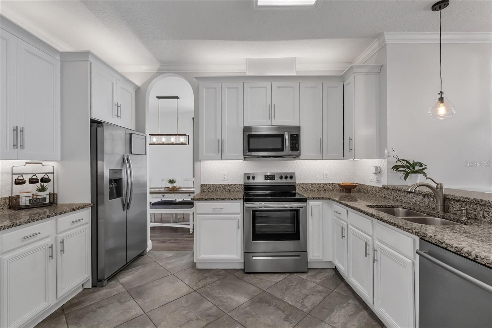 Just beyond, the kitchen is thoughtfully positioned at the heart of the home, making it easy to stay connected while cooking or hosting. Here you’ll find generous counter space and cabinetry, along with newer appliances, including a refrigerator (2023) and oven range (2024) that keep the space feeling current and functional. Nearby, a one-year-old washer and dryer add everyday convenience in the laundry area so you can truly move right in and start living.