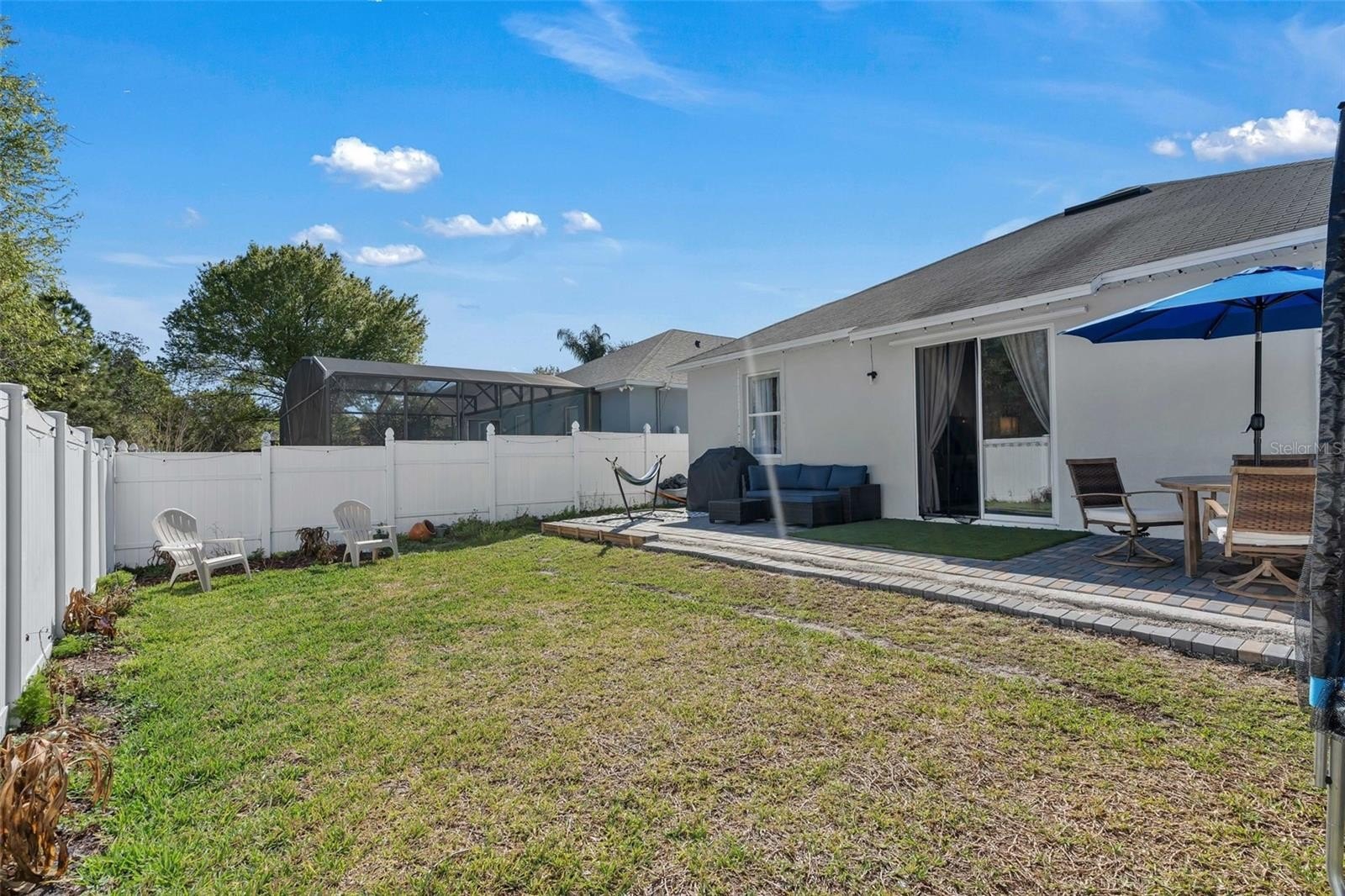 Step through the sliding doors and you’ll discover one of the home’s standout features: a large, fully fenced backyard that has been recently fenced in and enhanced with an expansive paver patio extension, creating an outdoor living area perfect for barbecues, gatherings, pets, and play. With fresh exterior paint and the secure fencing already in place, the outdoor space feels like a private retreat ready for your personal touches.
