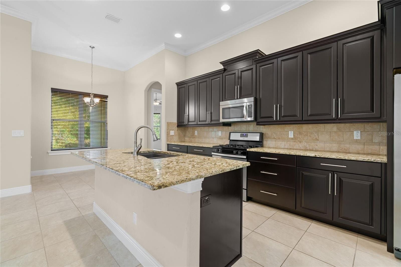 Additional highlights include a pantry, dedicated laundry and utility space, and an oversized garage with ample storage.